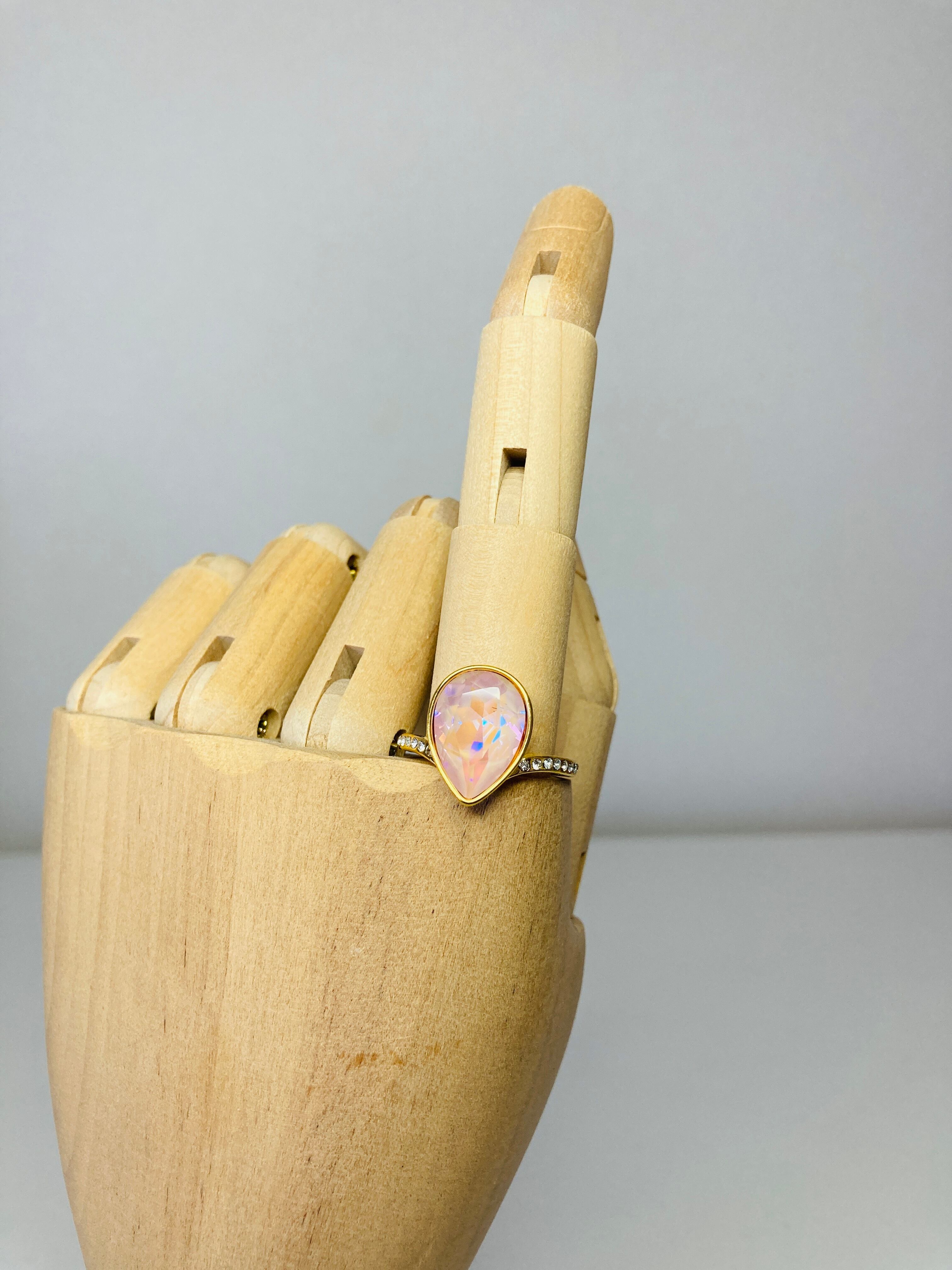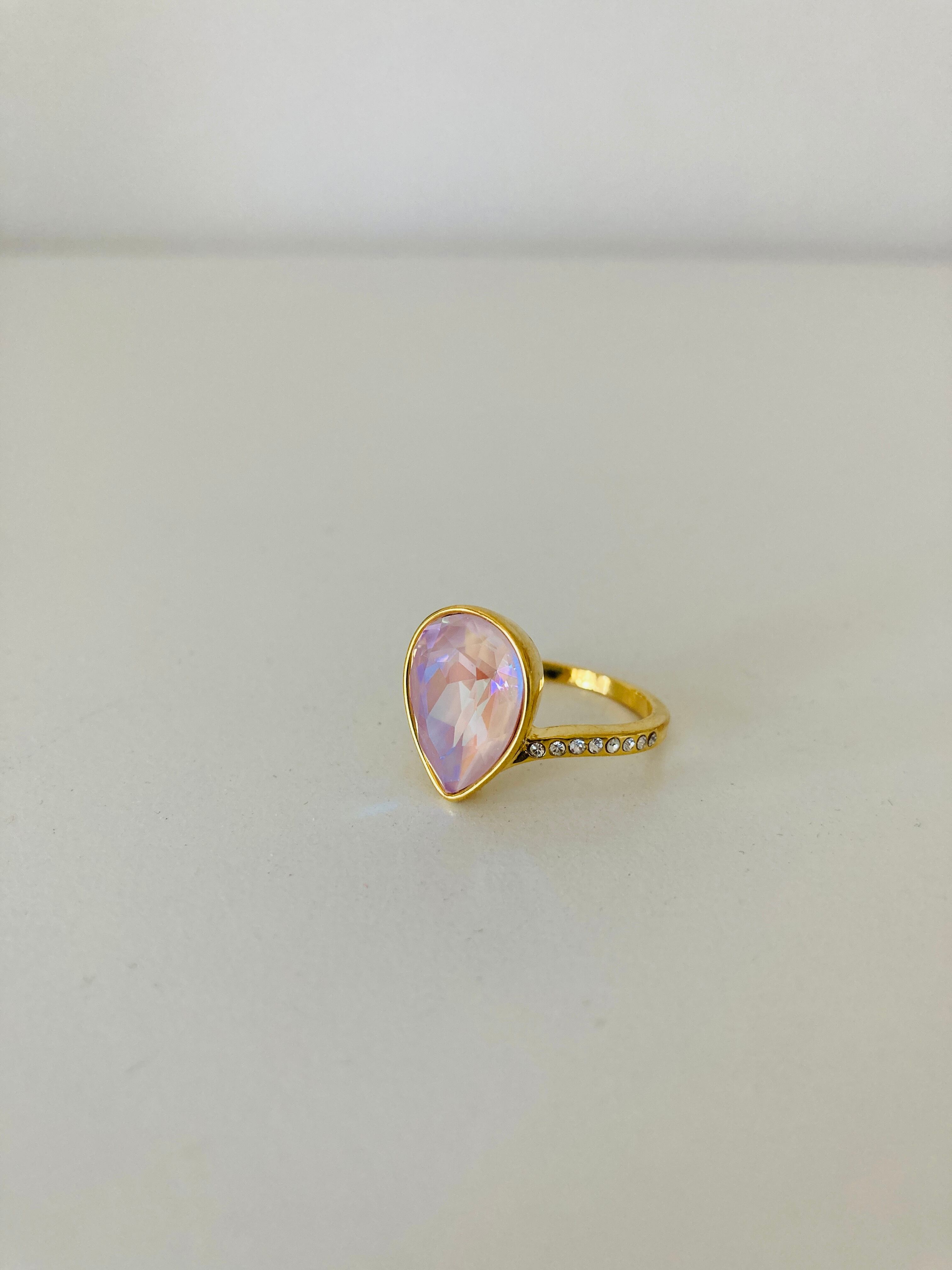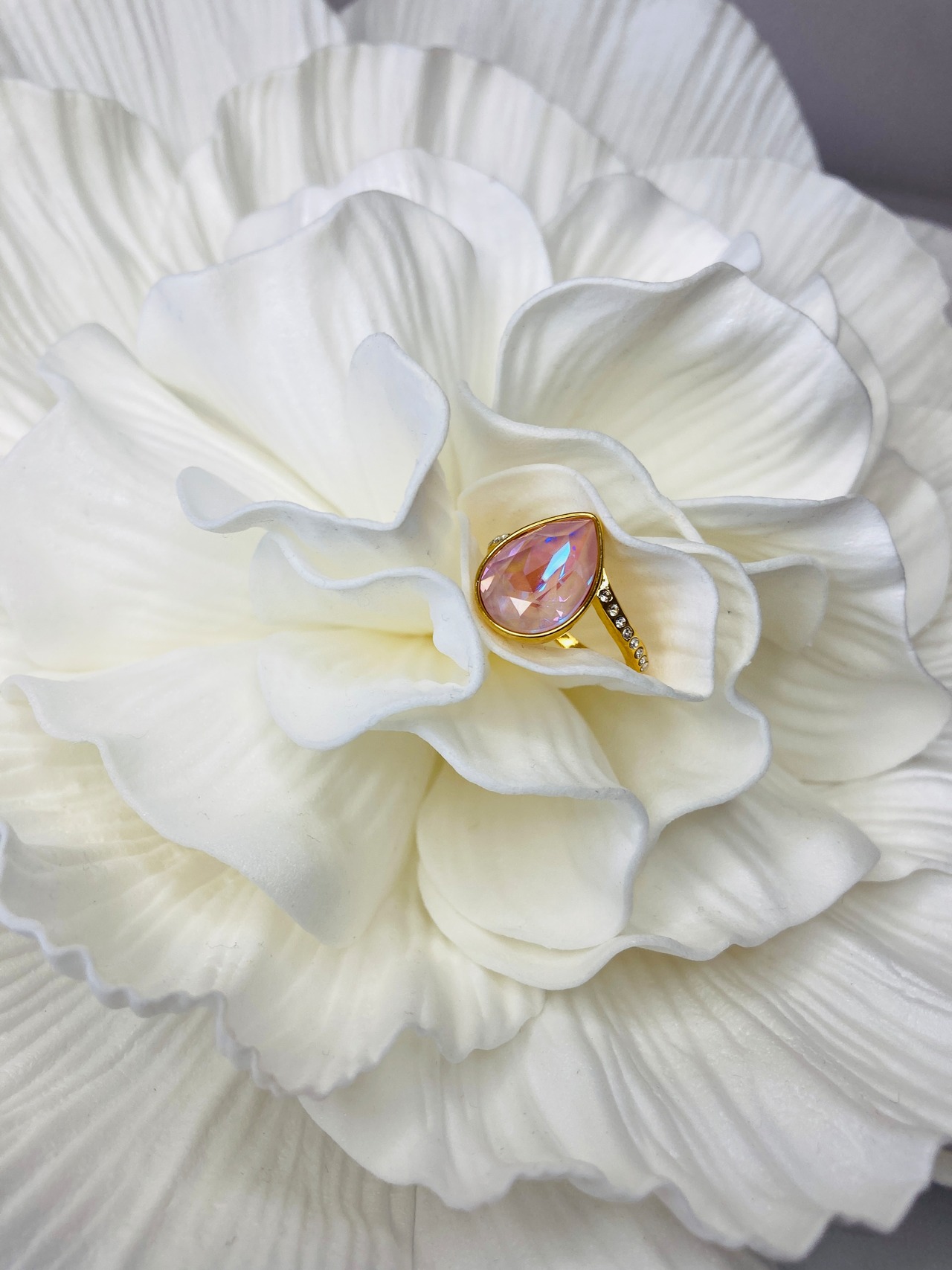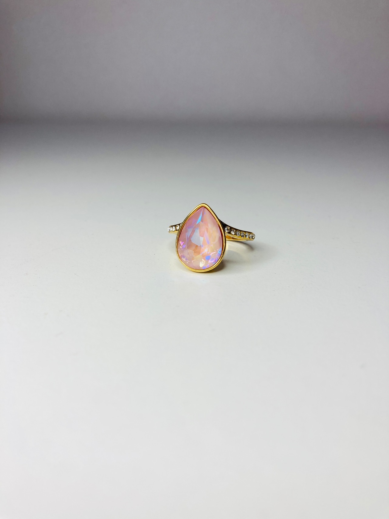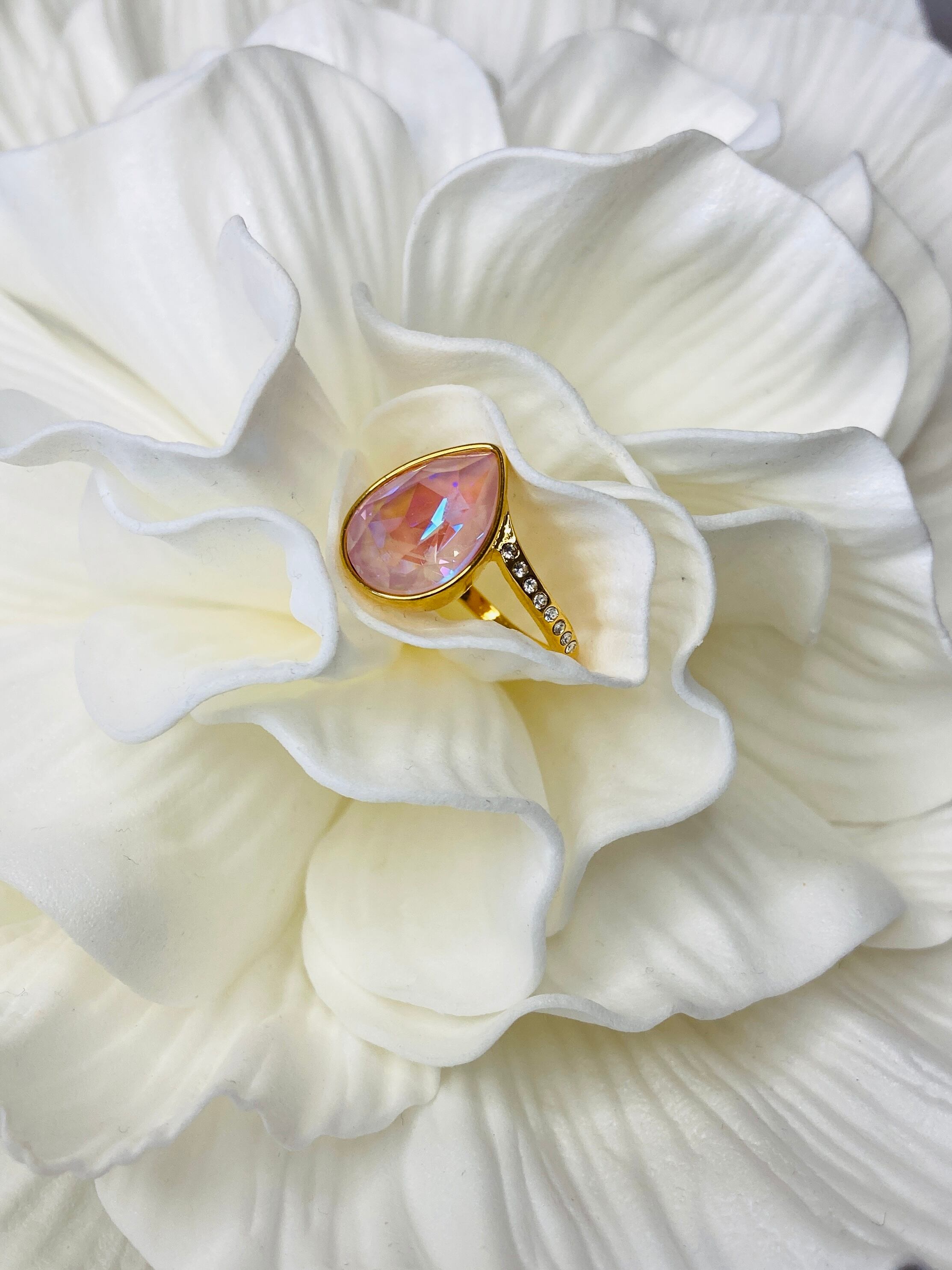 大ぶり ティアドロップ ドロップ クリスタル ビジュー リング ゴージャス ボリューム ボリューミー 大ぶり 春 夏 秋 冬 お出かけ カジュアル フォーマル パーティー プチギフト バースデー 記念日 バースデーギフト クリスマス クリスマスギフト 母の日 ピンク