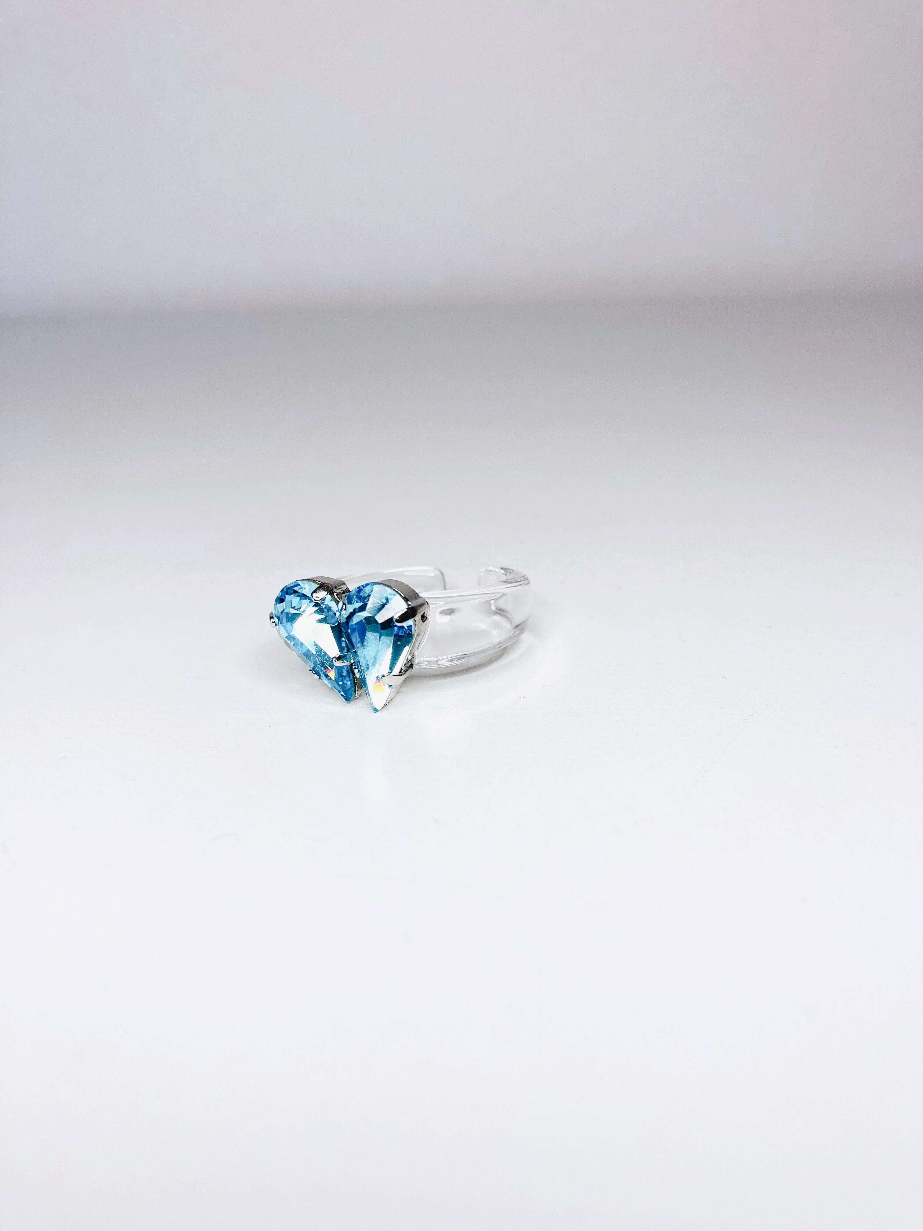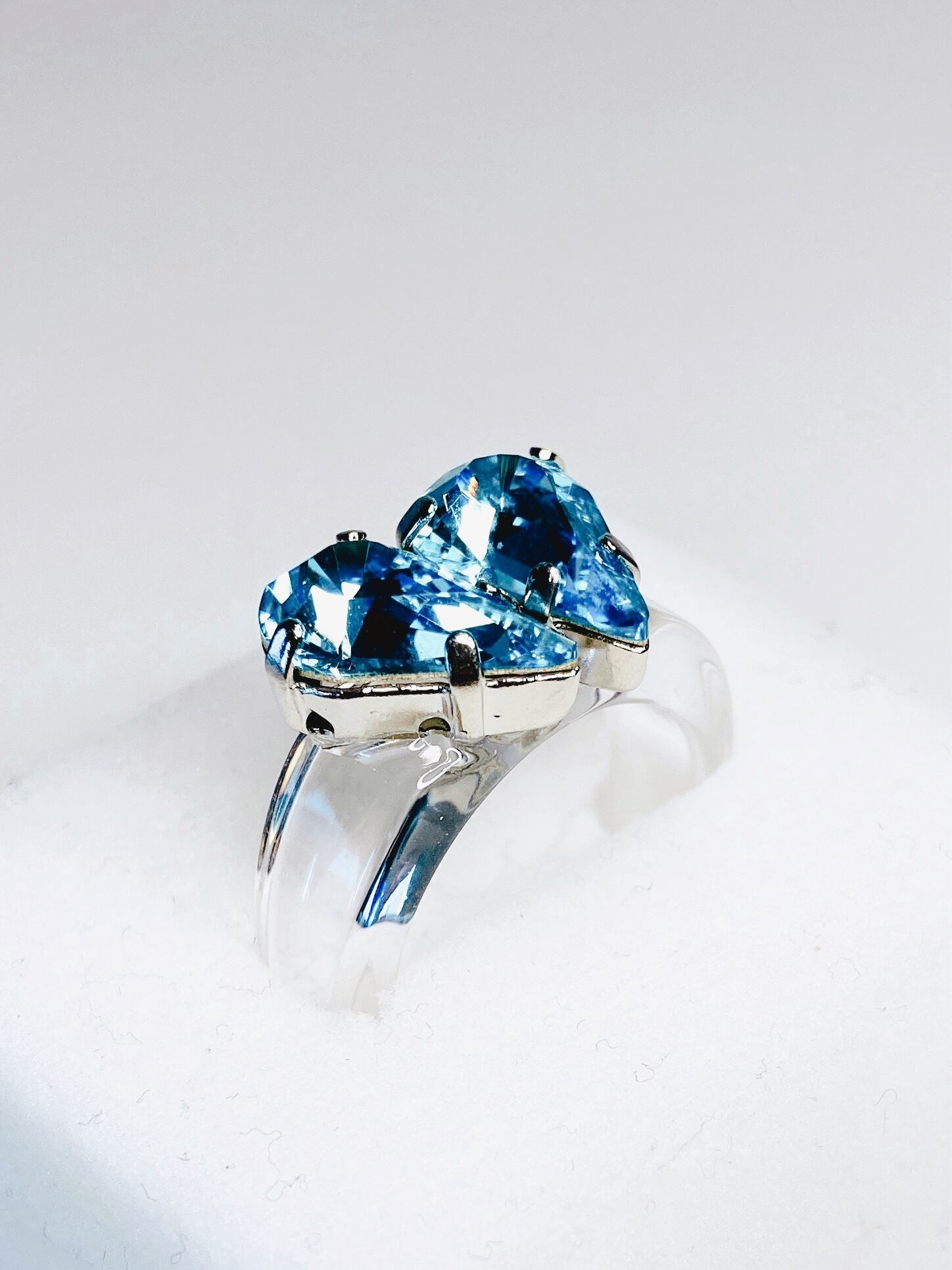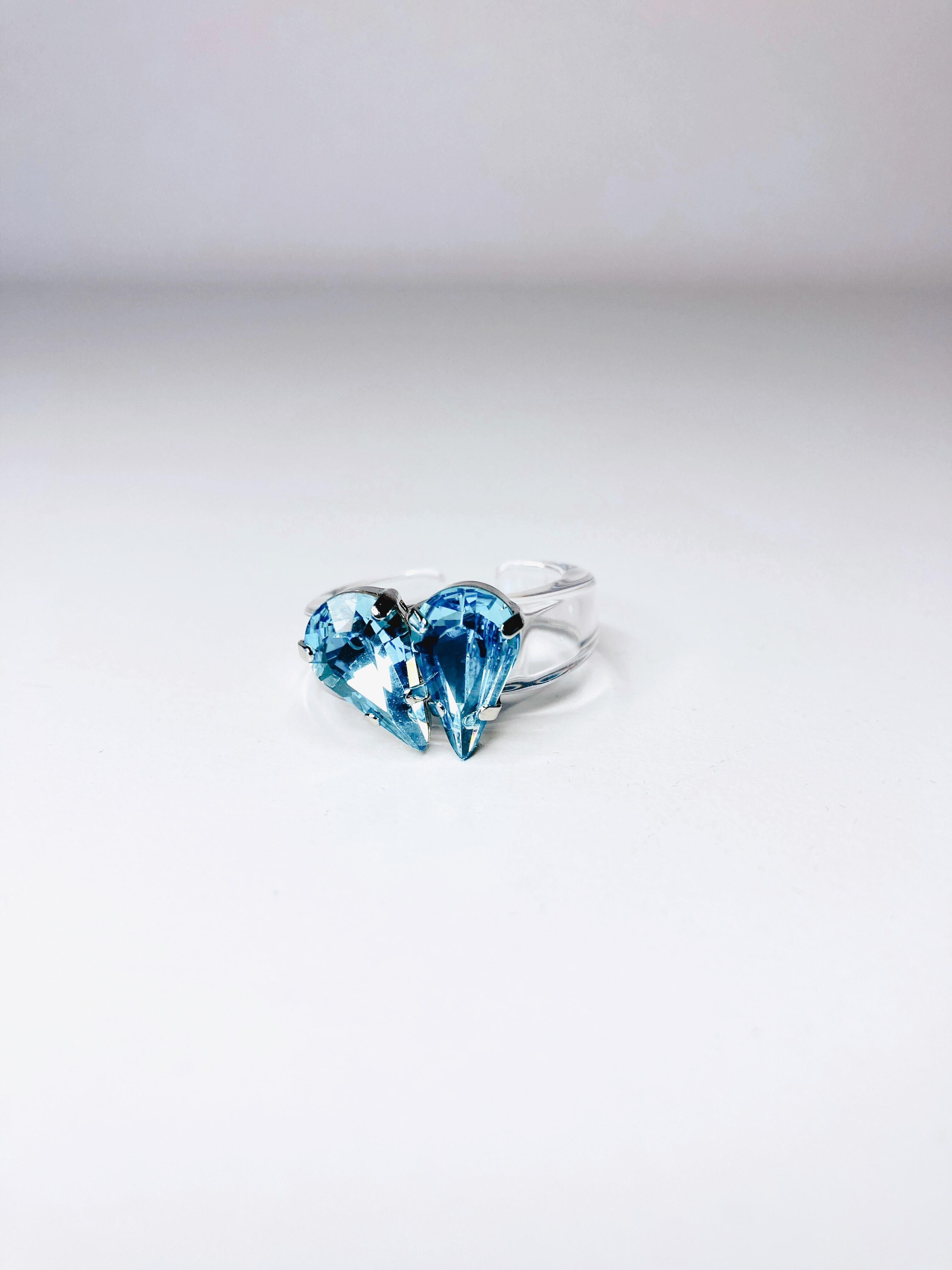 大ぶり クリスタル ビジュー リング キュート ゴージャス ボリューム ボリューミー 春 夏 秋 冬 お出かけ カジュアル フォーマル パーティー パースデープレゼント プチギフト パースデー バースデープレゼント ハート クリスマス クリスマスギフト ホリデーシーズン クリスマスプレゼント 金属アレルギー ハートビジュー ブルー