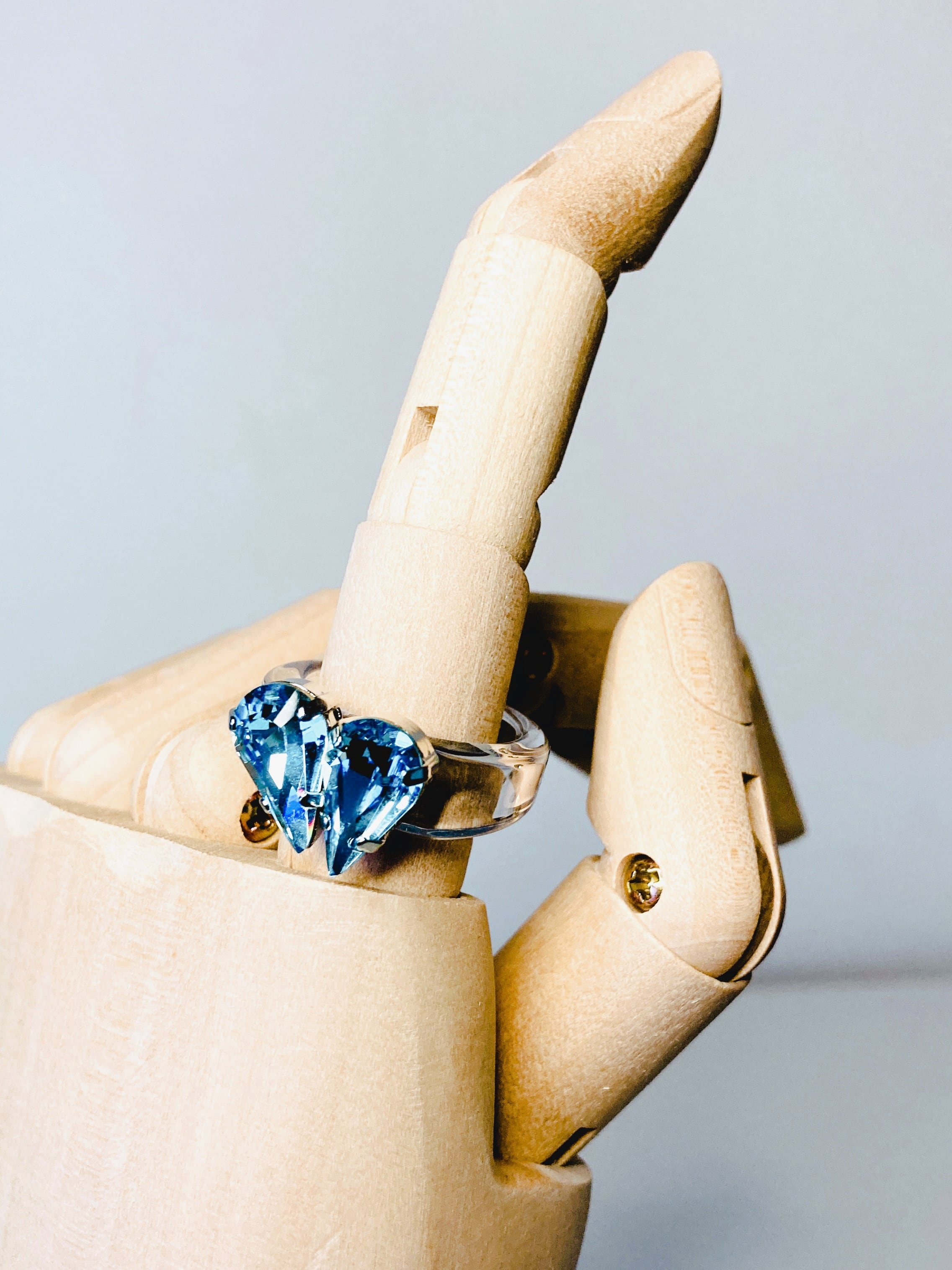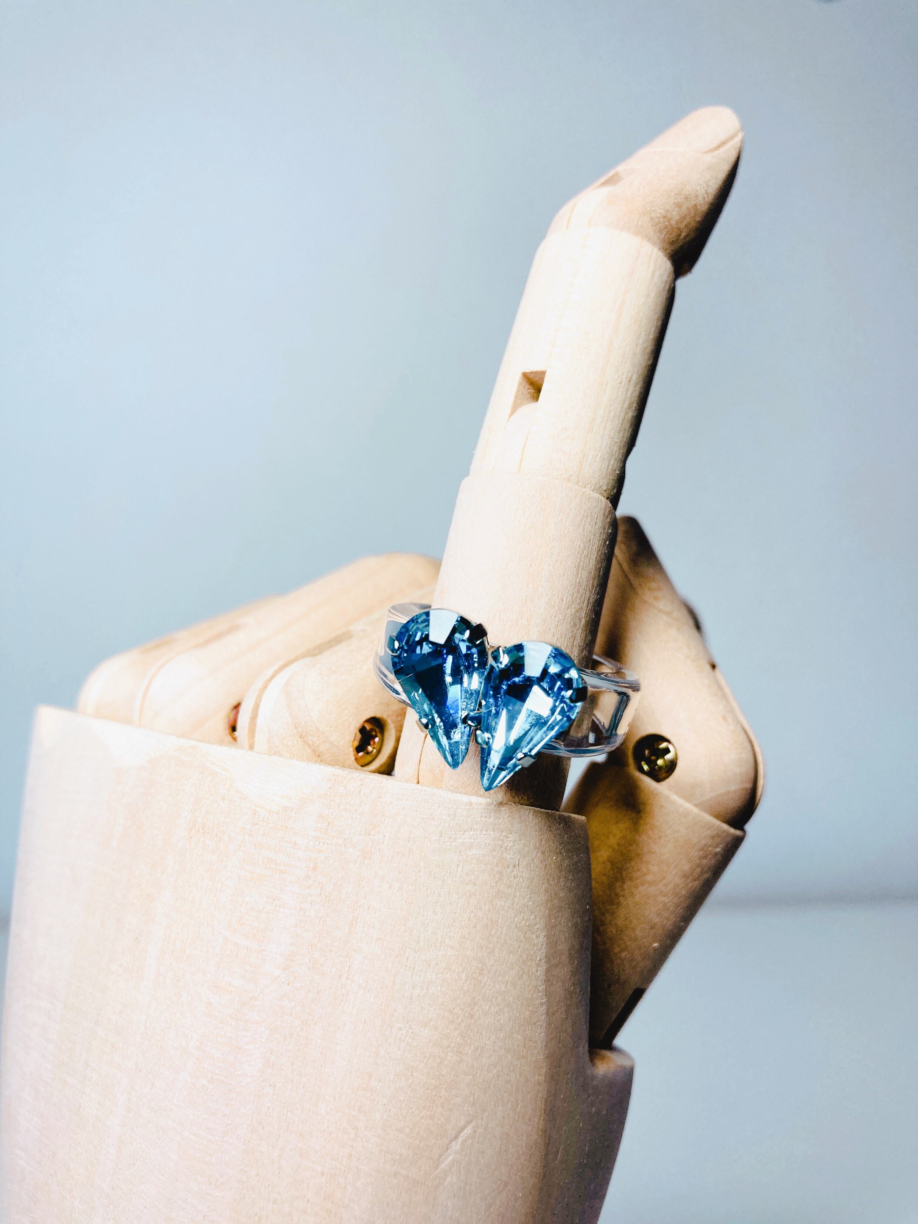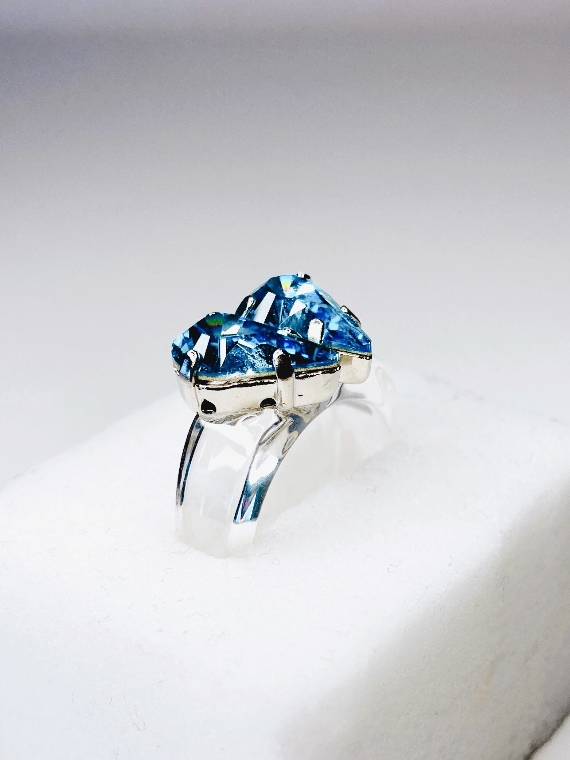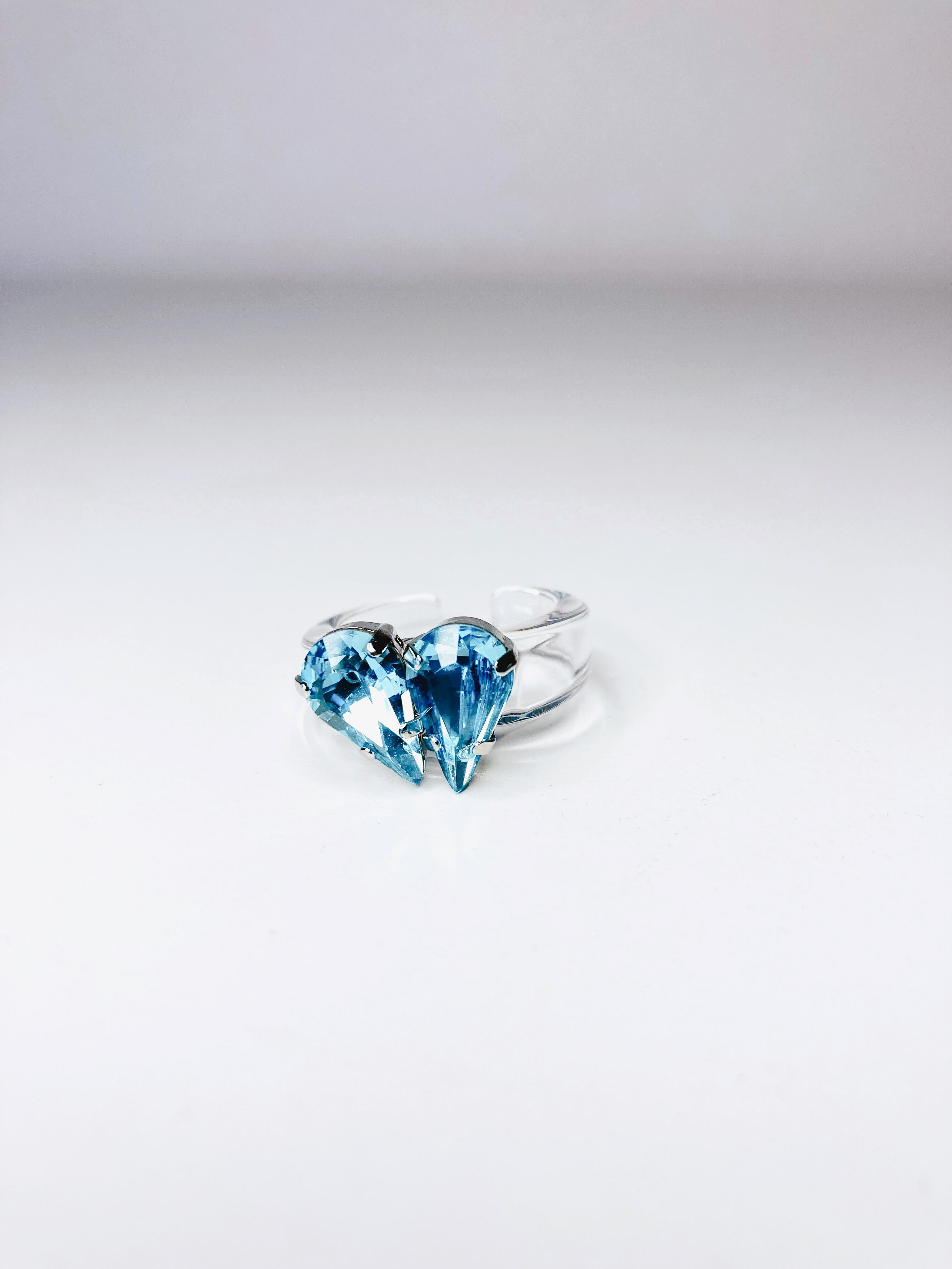 大ぶり クリスタル ビジュー リング キュート ゴージャス ボリューム ボリューミー 春 夏 秋 冬 お出かけ カジュアル フォーマル パーティー パースデープレゼント プチギフト パースデー バースデープレゼント ハート クリスマス クリスマスギフト ホリデーシーズン クリスマスプレゼント 金属アレルギー ハートビジュー ブルー