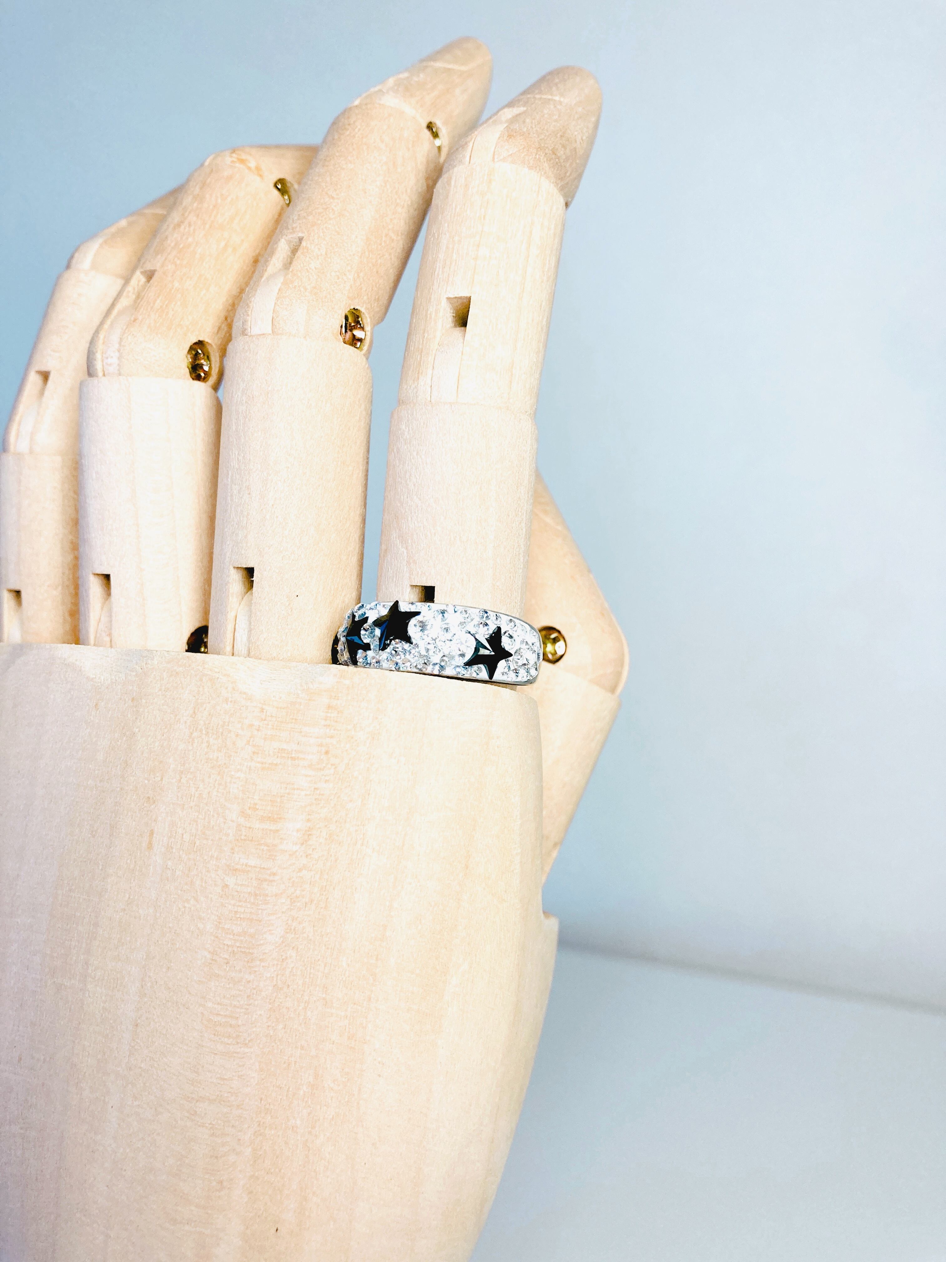 5㎜の星を3粒とその周囲にはクリアのクリスタルをふんだんに散りばめました。