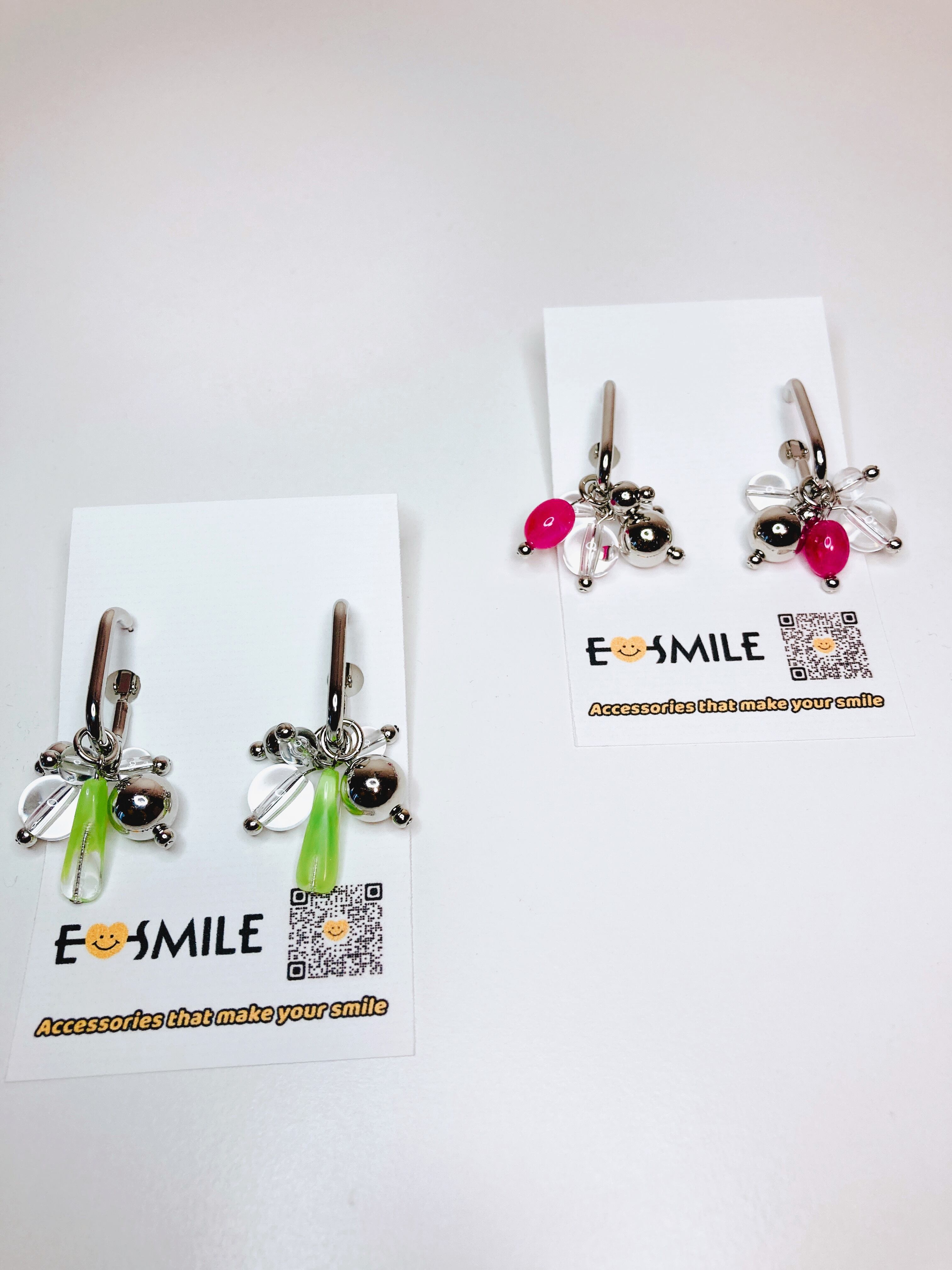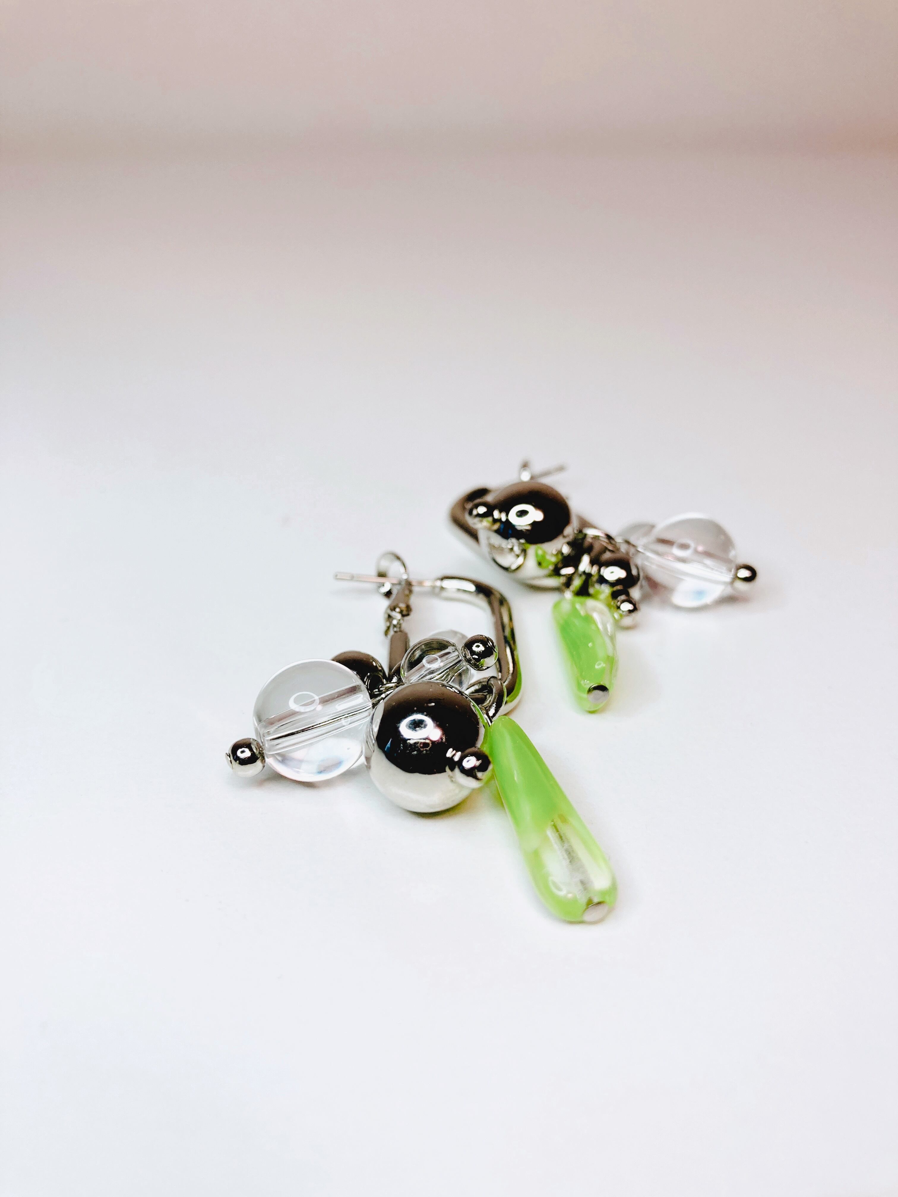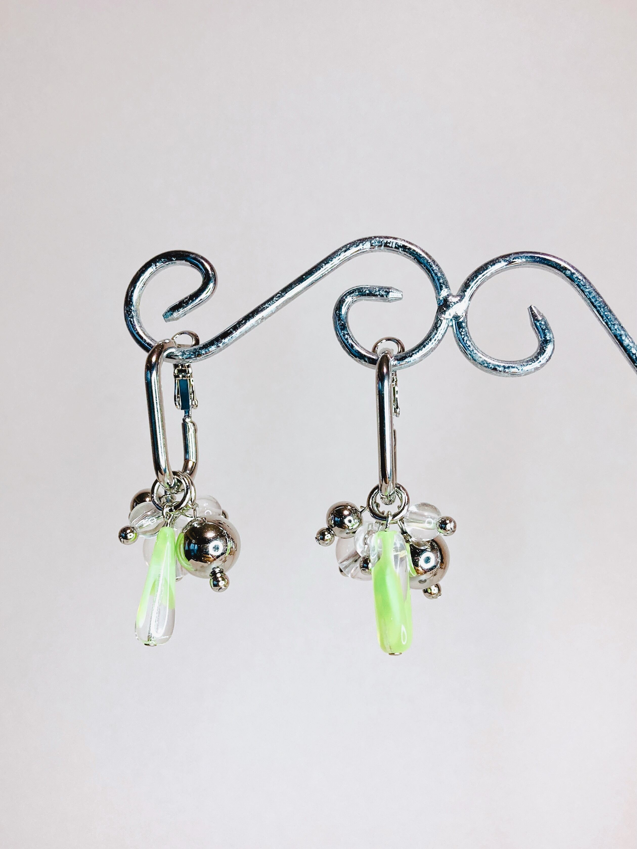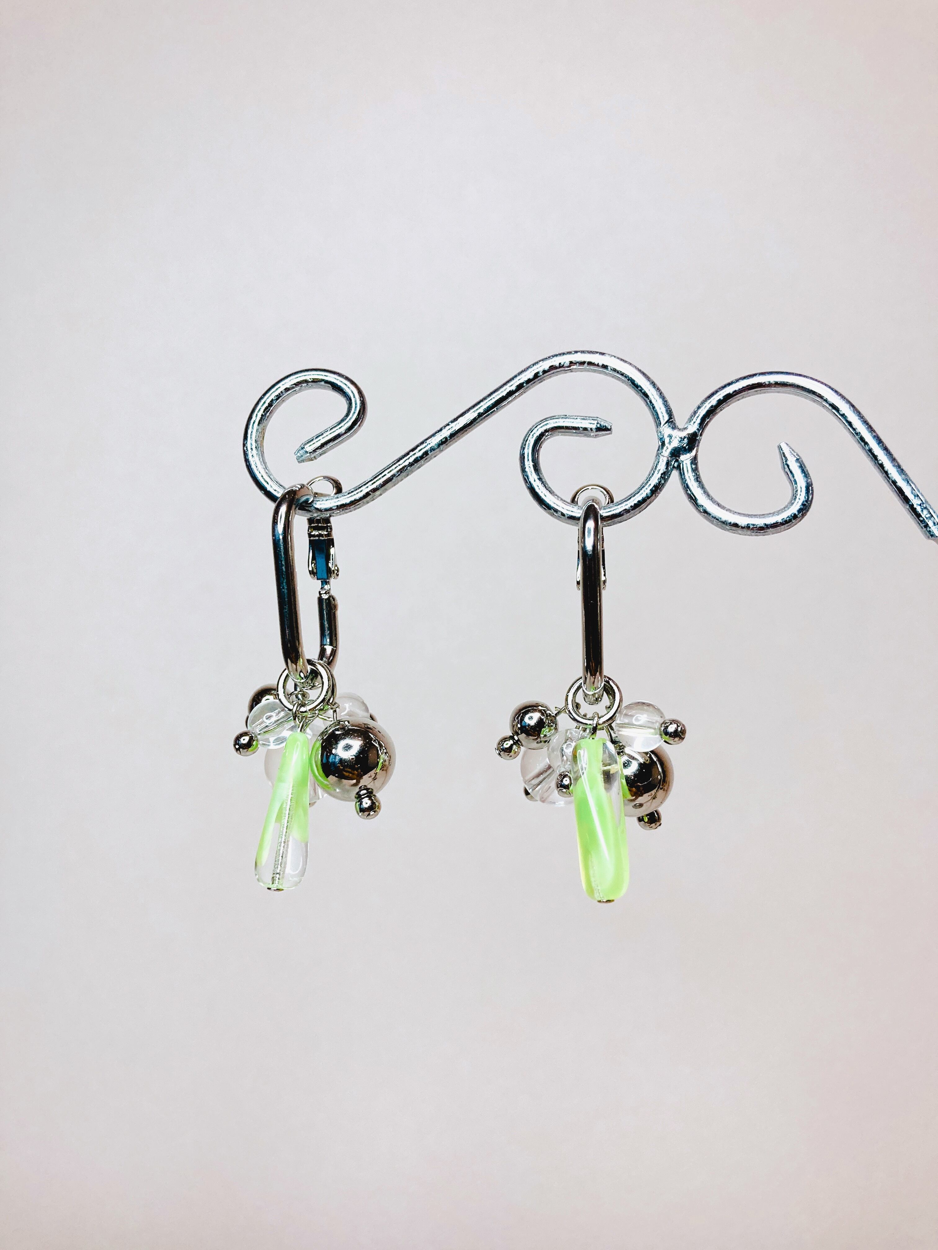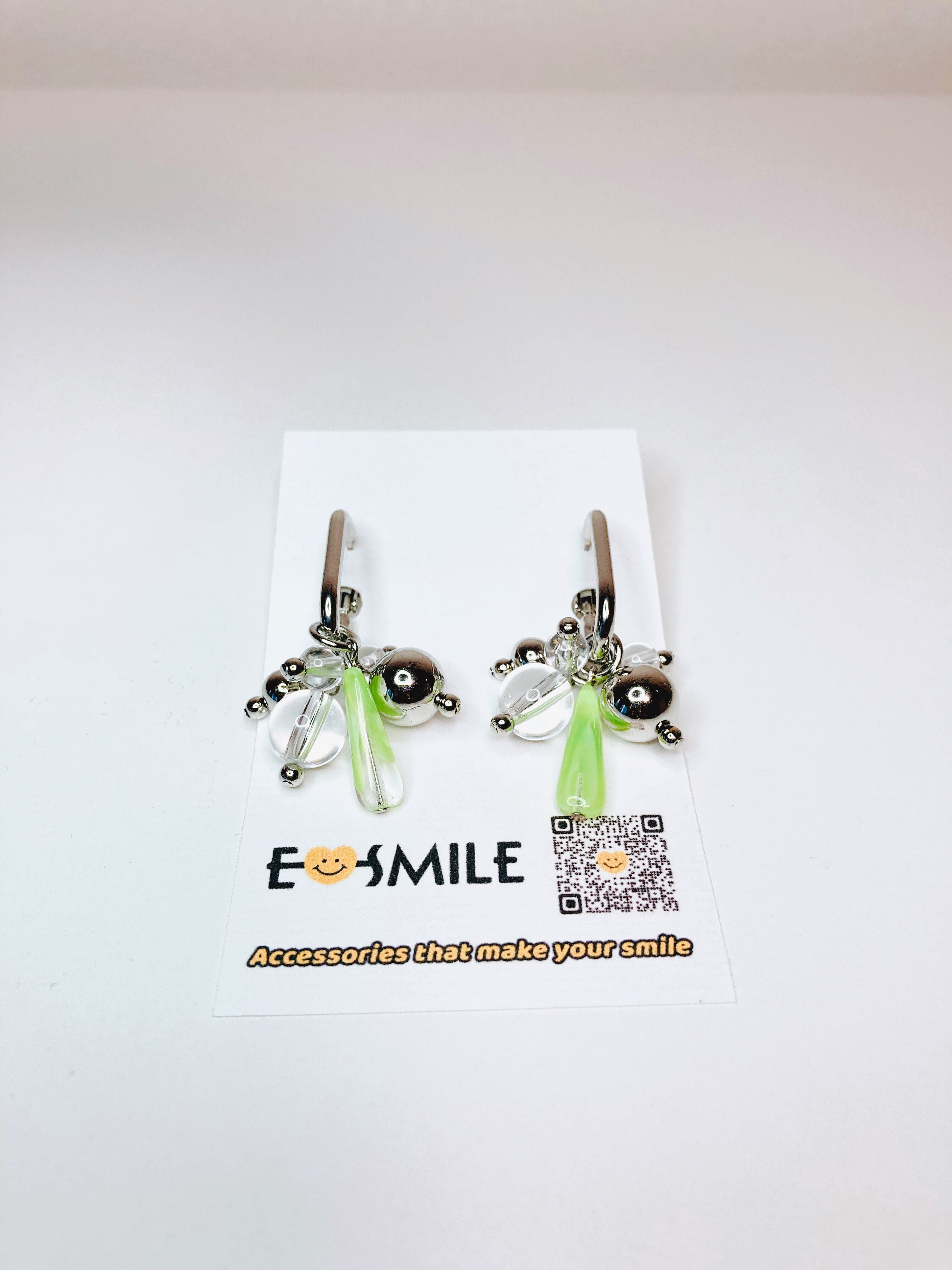 チャンキーフープにクリアとメタルボール、そして爽やかな薄黄緑のビーズを1粒。