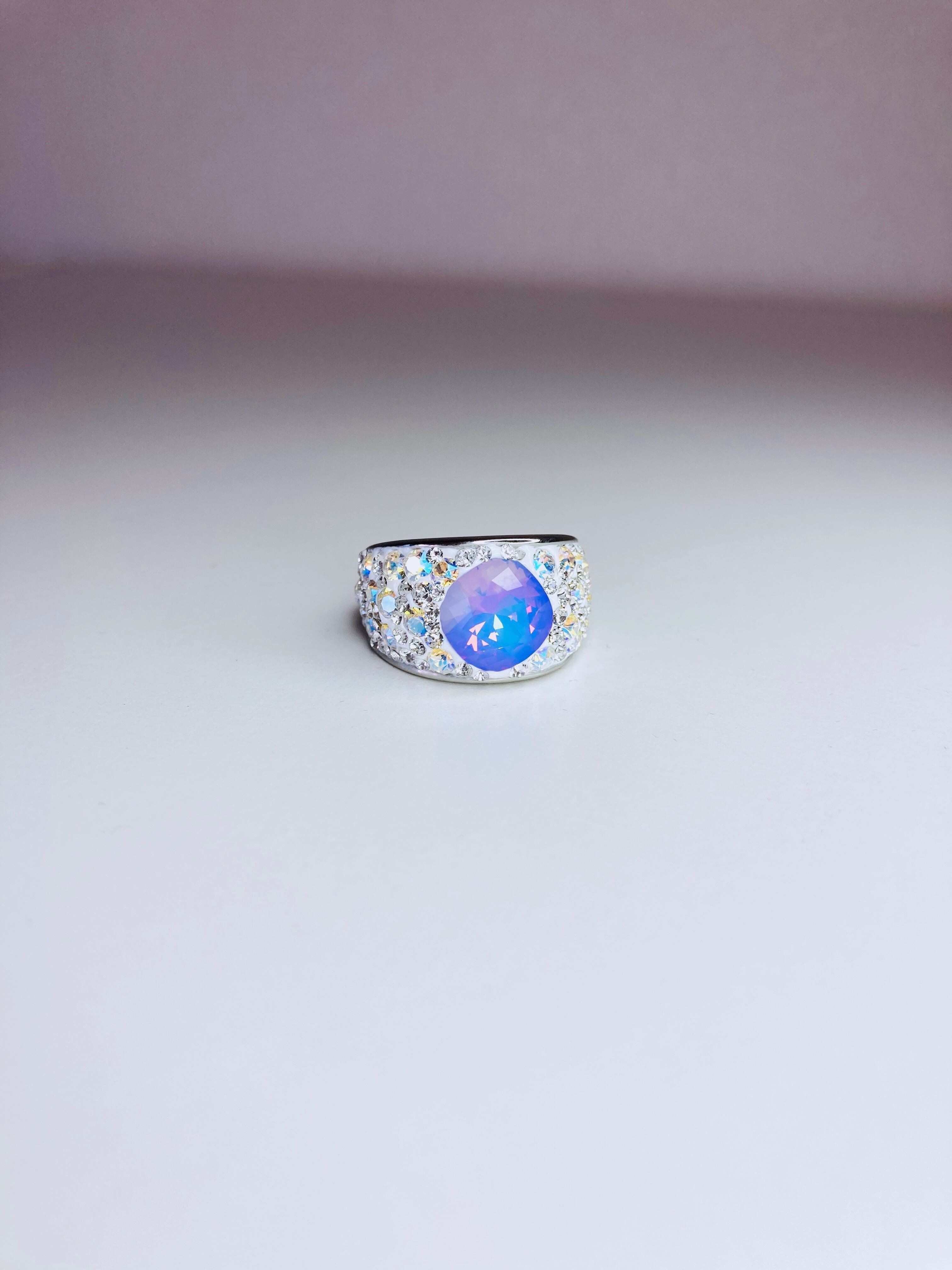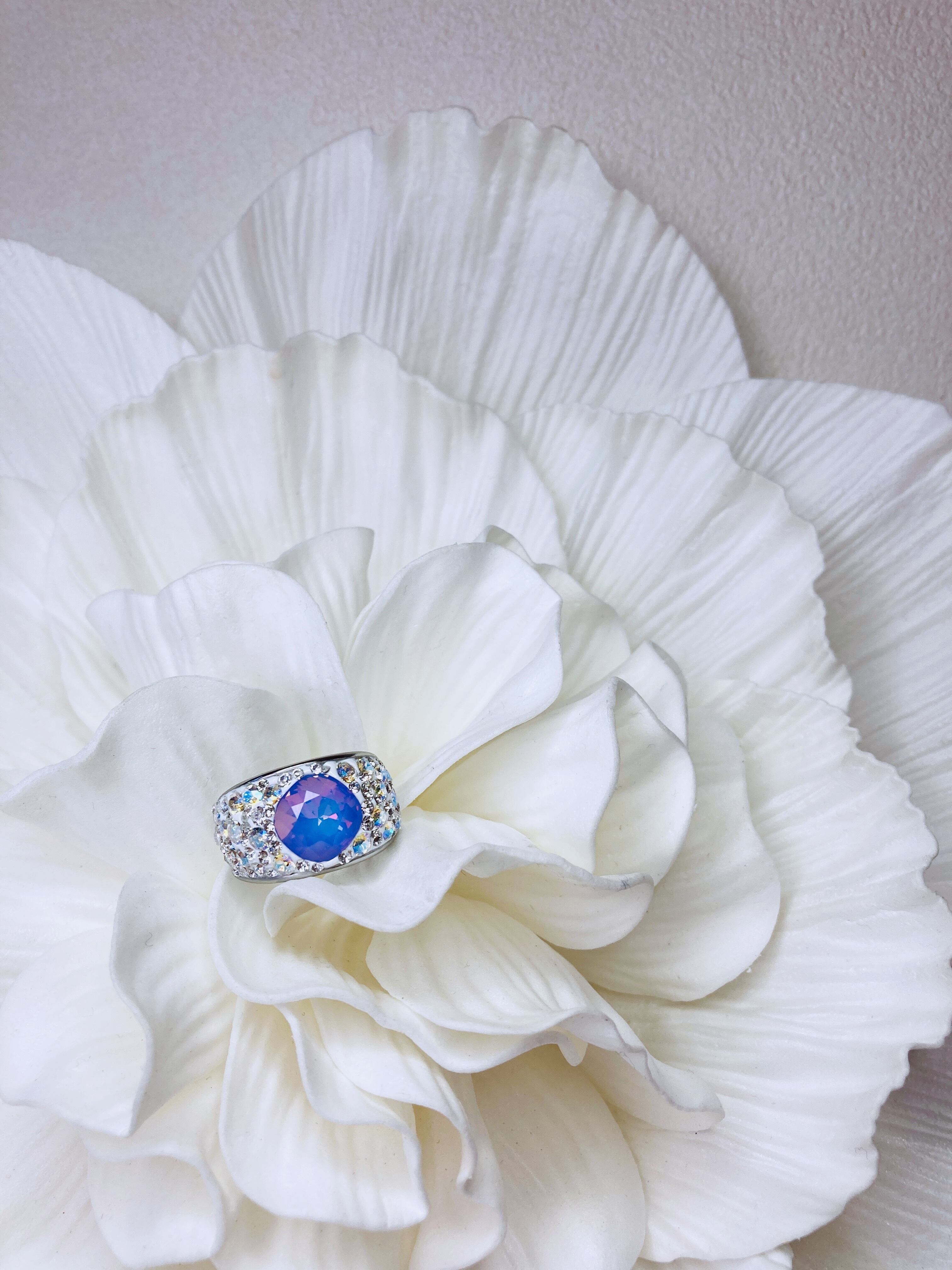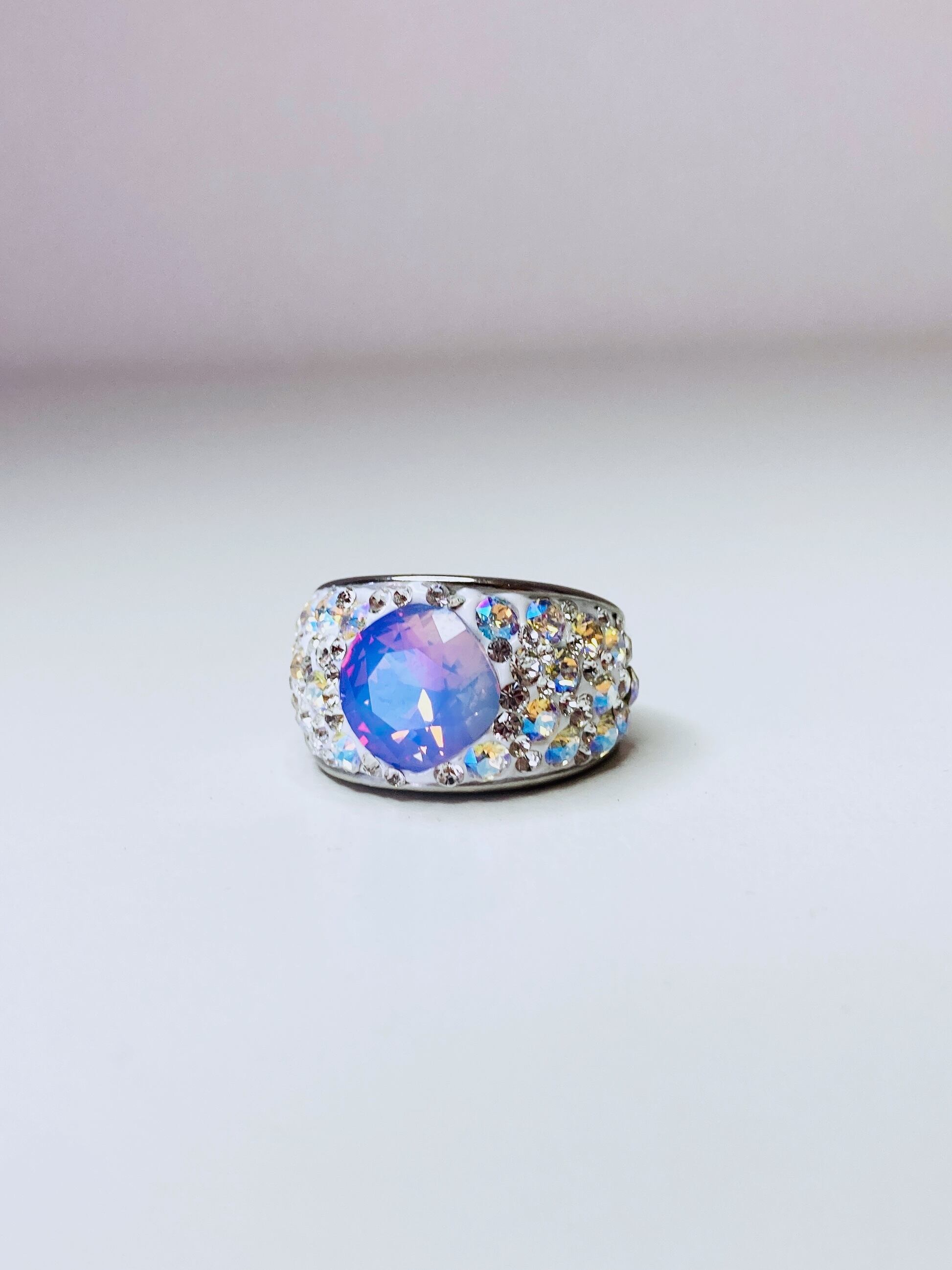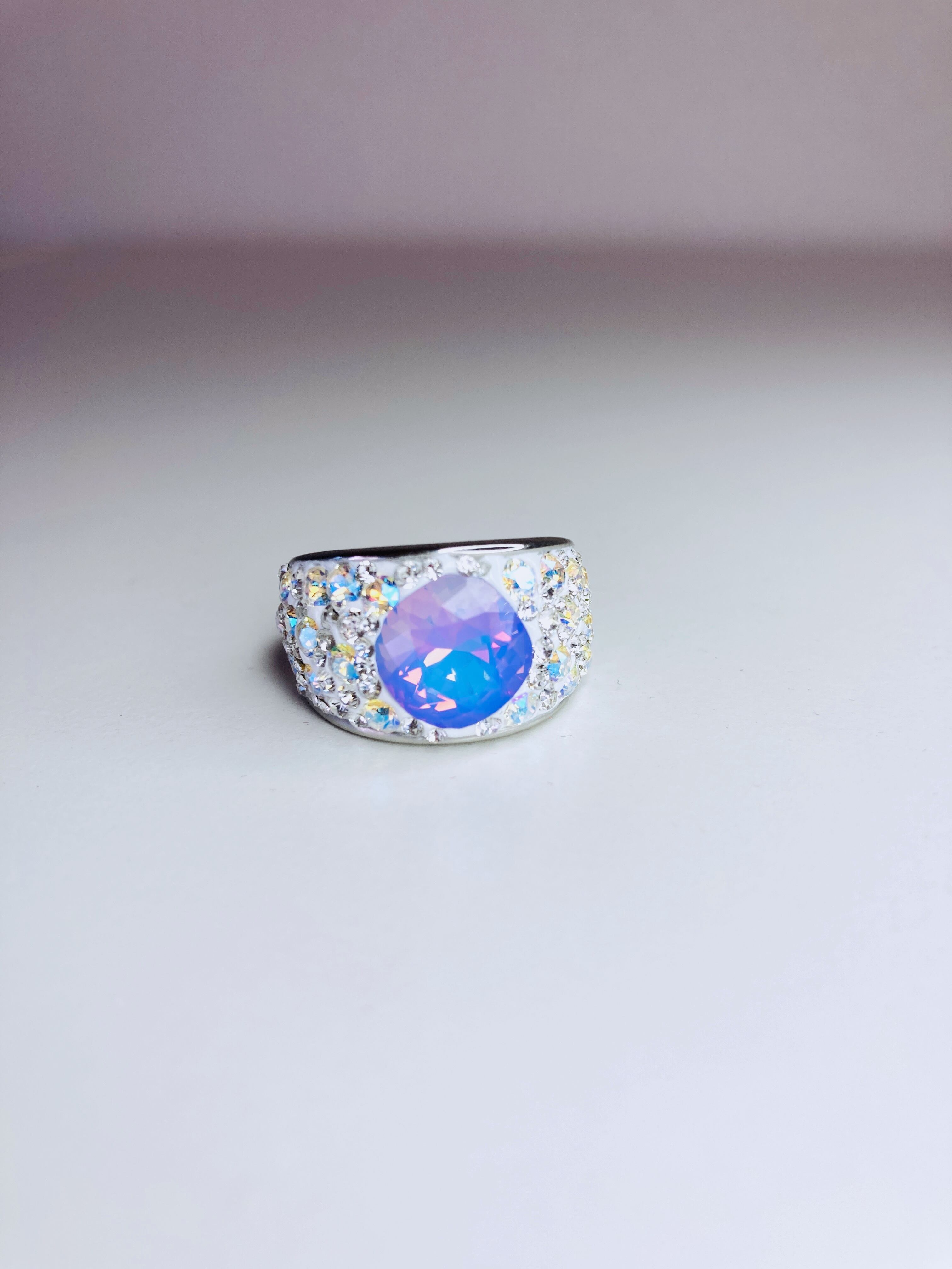 大ぶり クリスタル ビジュー リング ゴージャス ボリューム ボリューミー 大ぶり 春 夏 秋 冬 お出かけ カジュアル フォーマル パーティー プチギフト バースデー 記念日 バースデーギフト クリスマス クリスマスギフト 母の日 ホワイトオパール ヴィトラルライト ごつめ パープル クリィミィ