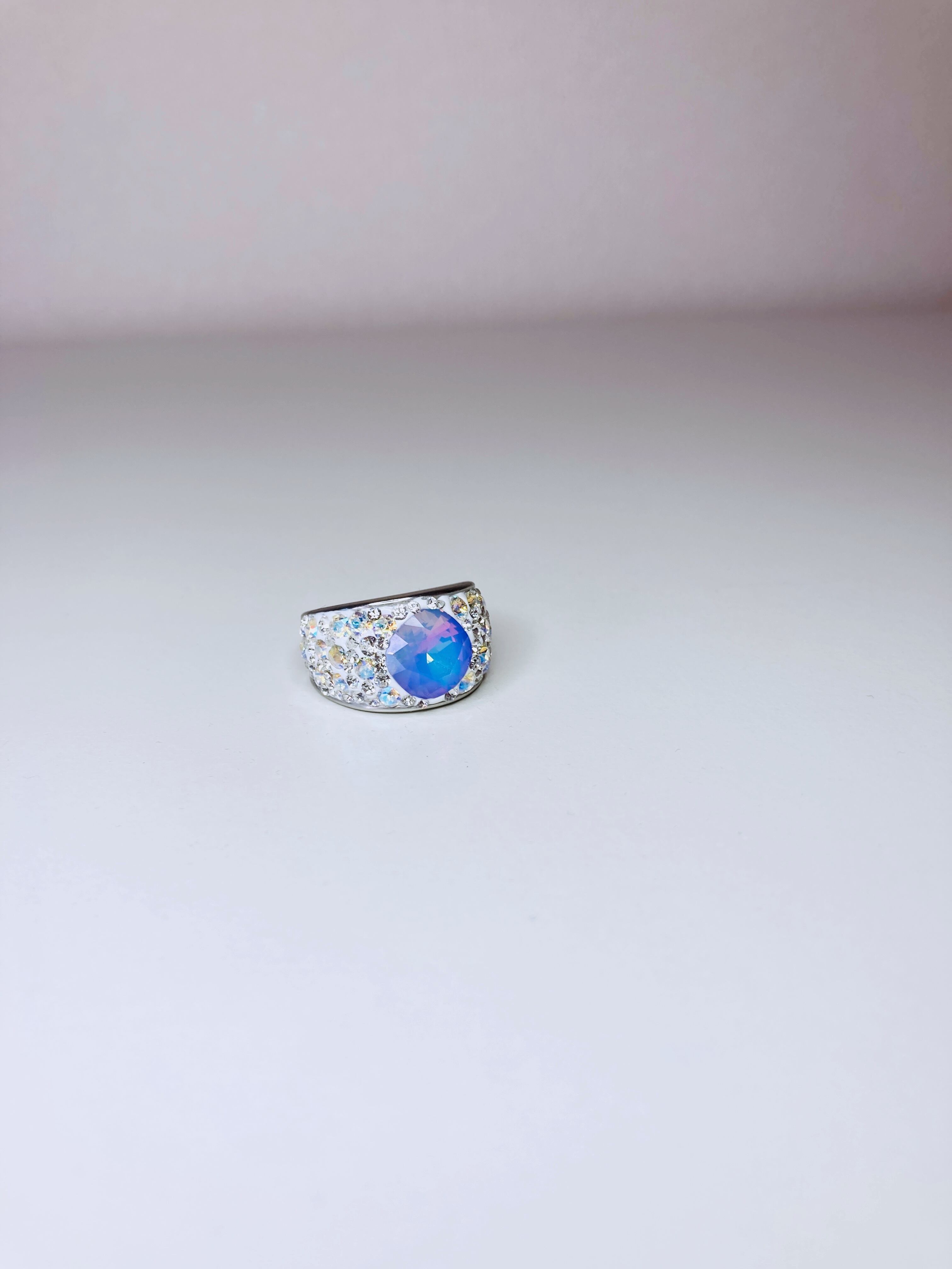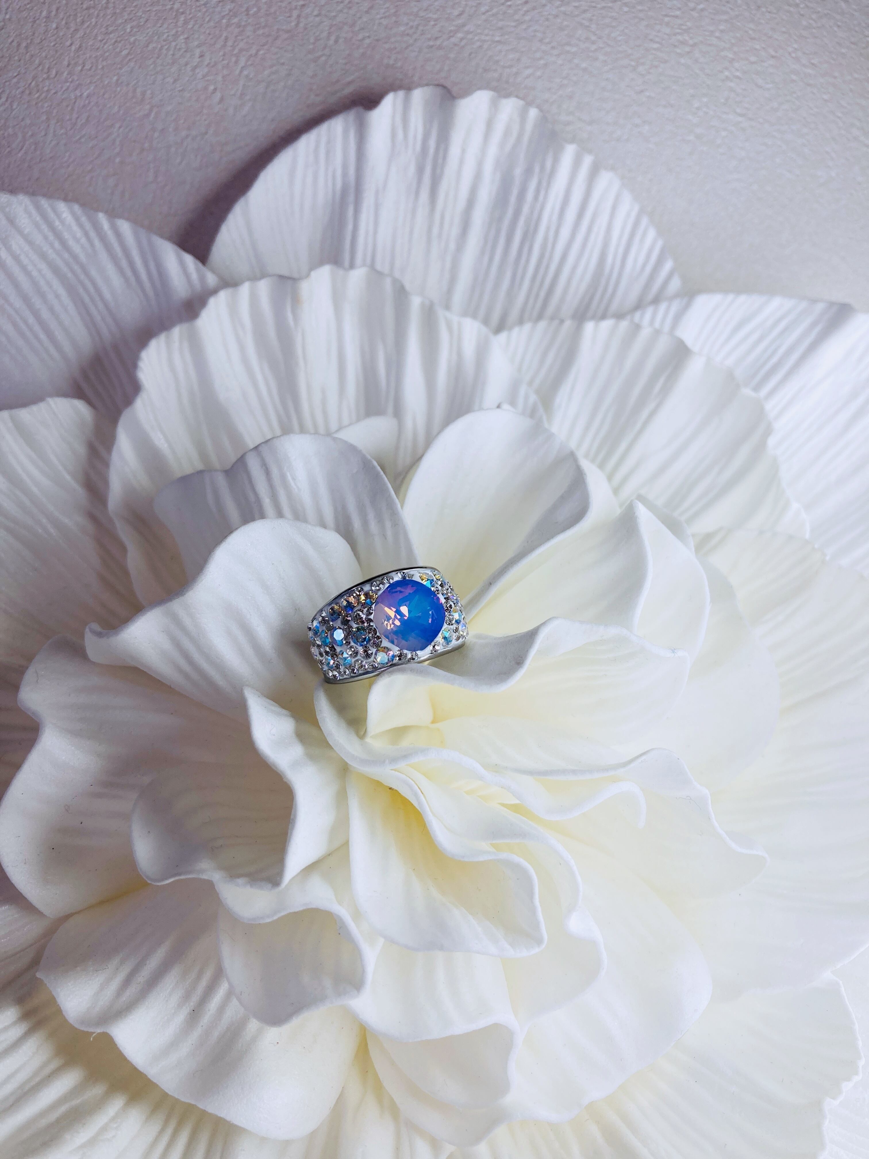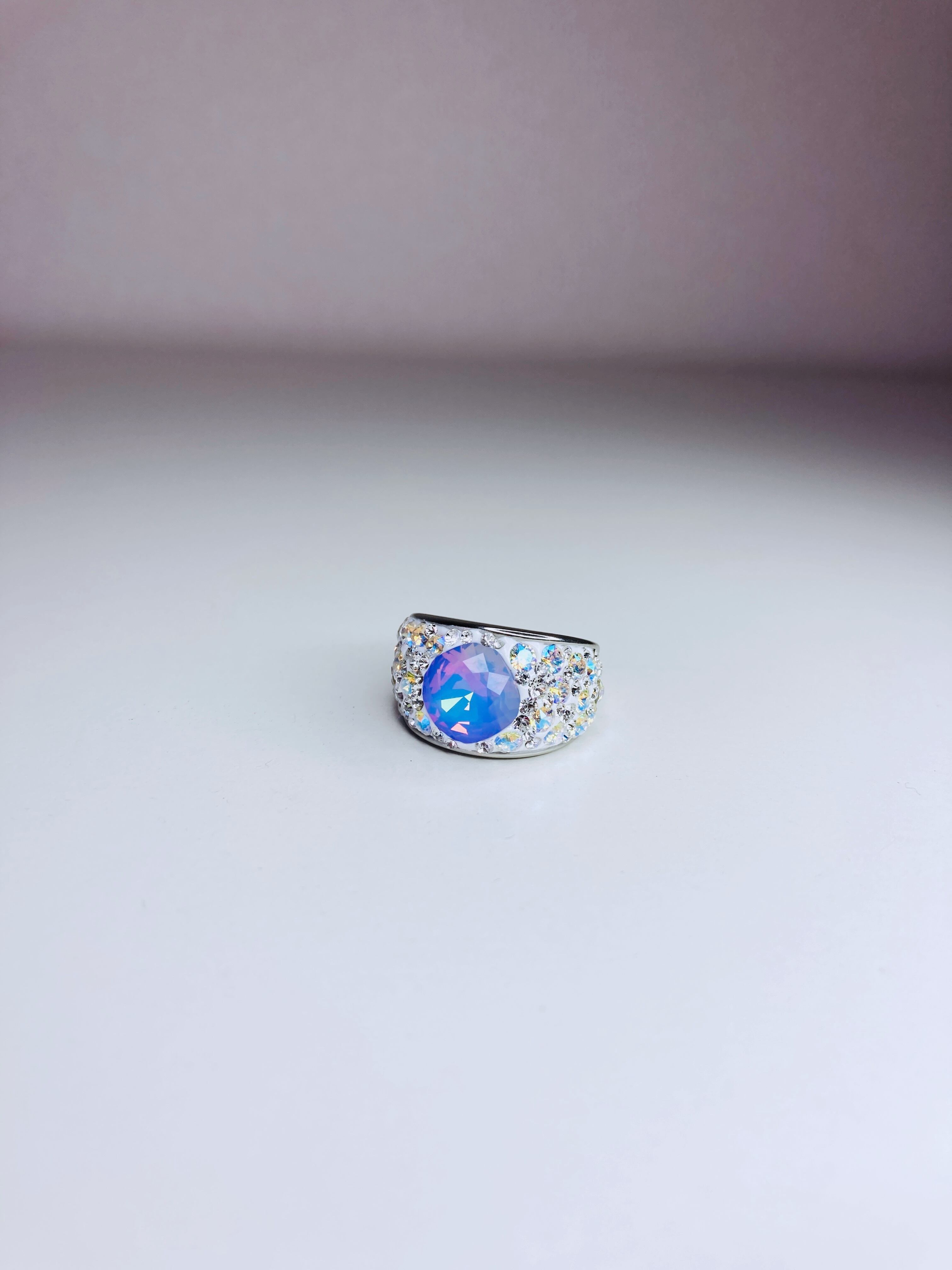 大ぶり クリスタル ビジュー リング ゴージャス ボリューム ボリューミー 大ぶり 春 夏 秋 冬 お出かけ カジュアル フォーマル パーティー プチギフト バースデー 記念日 バースデーギフト クリスマス クリスマスギフト 母の日 ホワイトオパール ヴィトラルライト ごつめ パープル クリィミィ