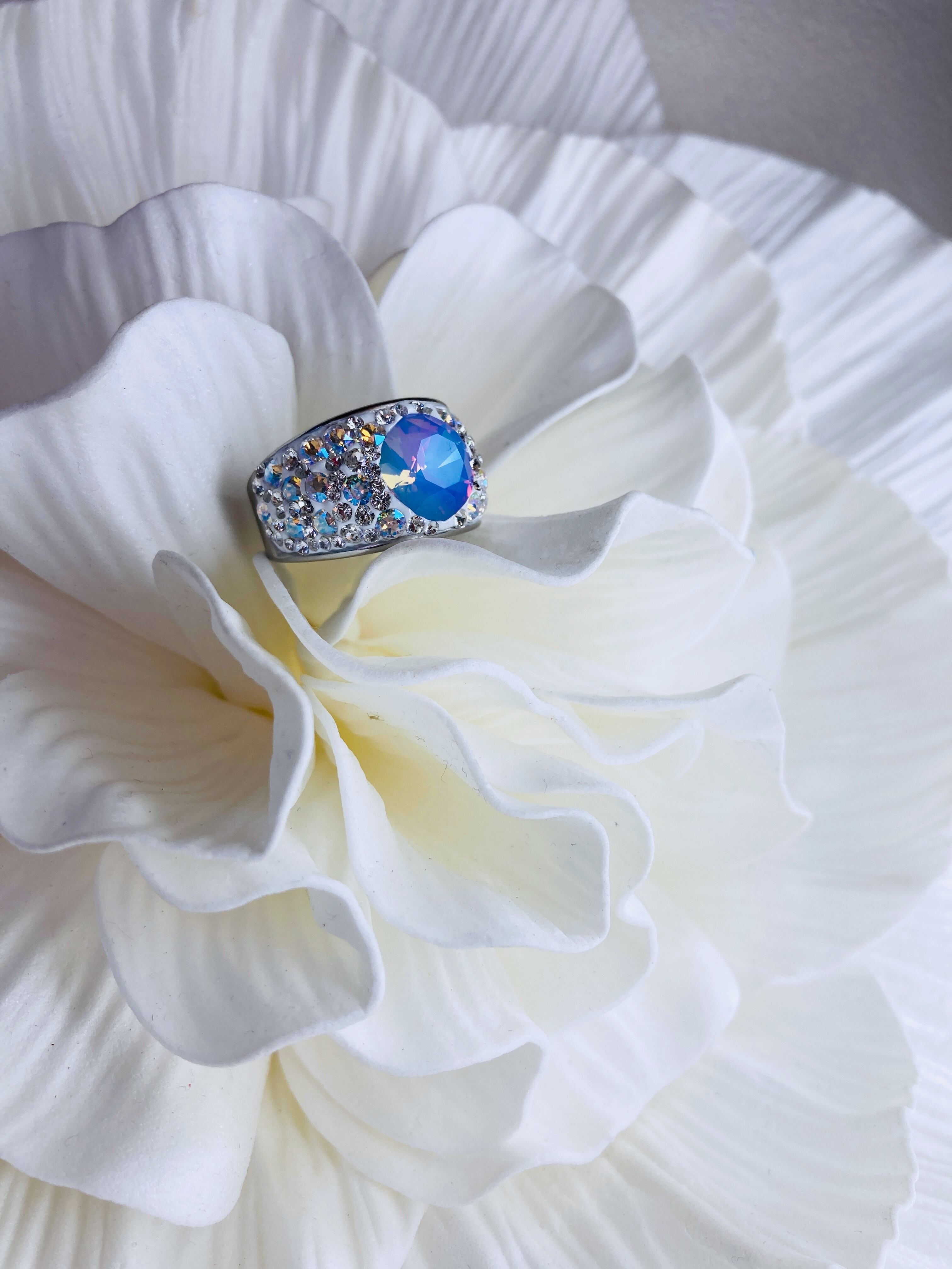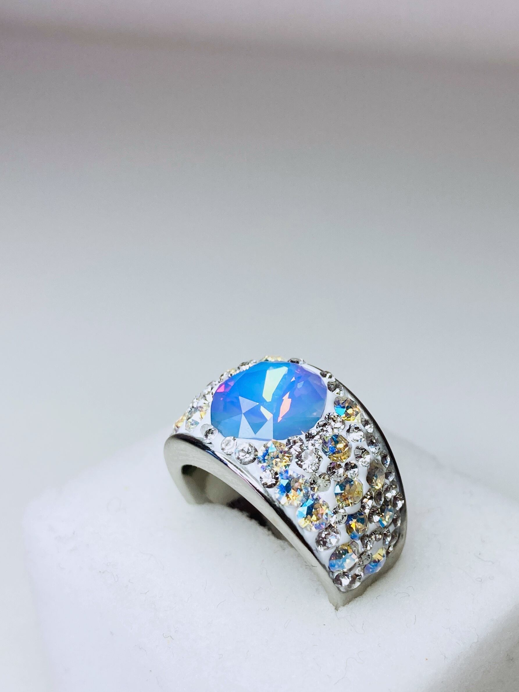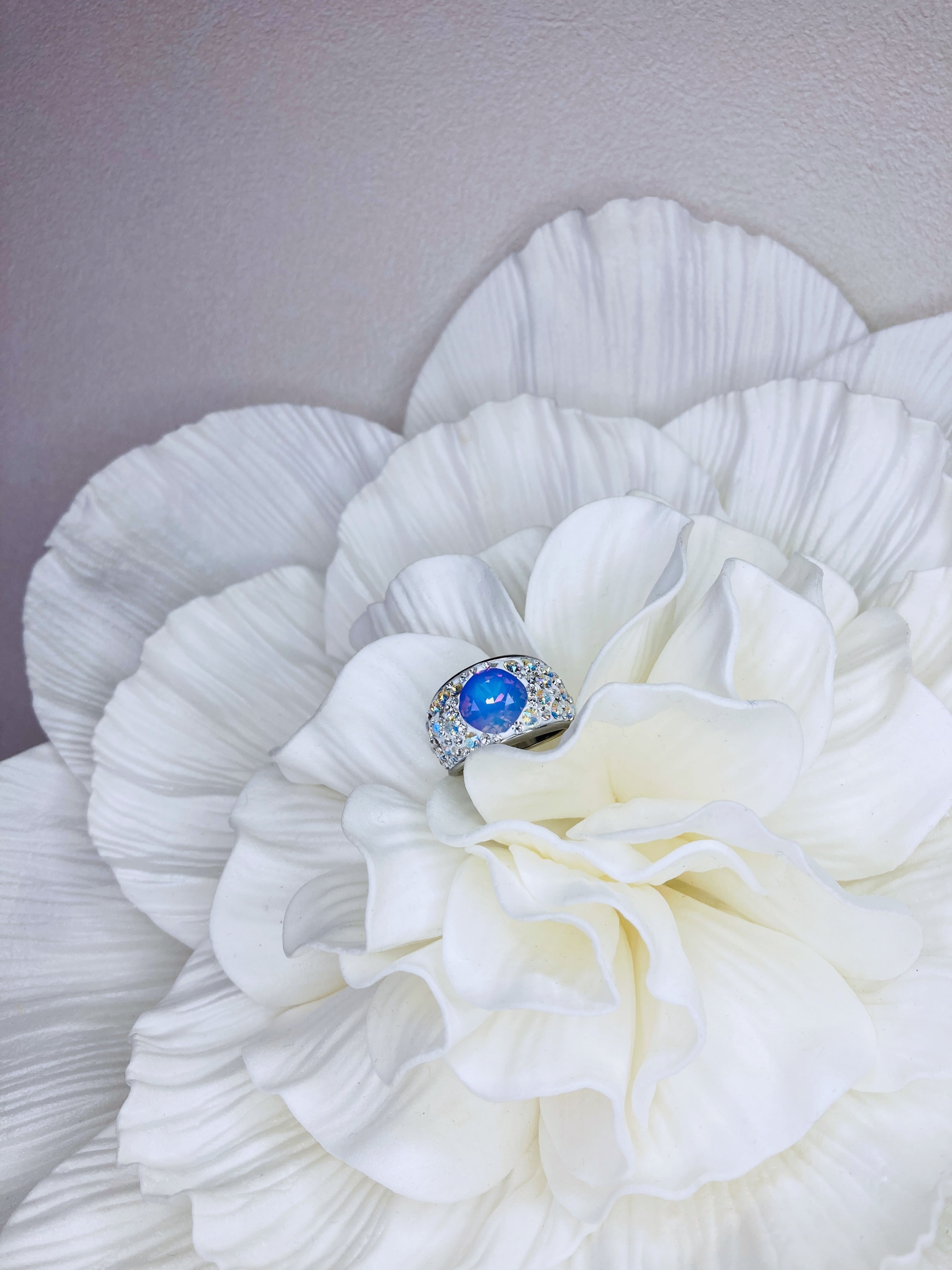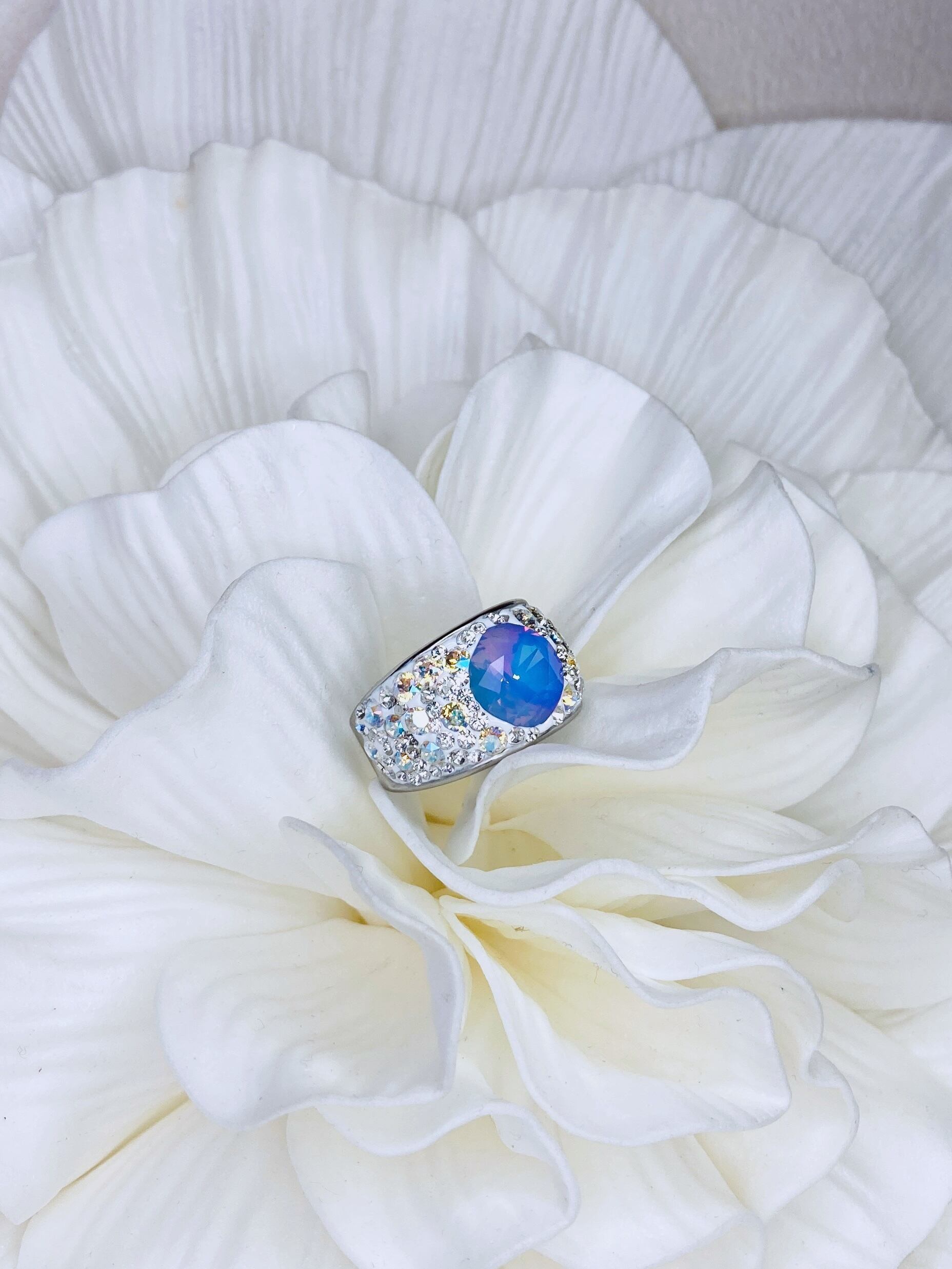 大ぶり クリスタル ビジュー リング ゴージャス ボリューム ボリューミー 大ぶり 春 夏 秋 冬 お出かけ カジュアル フォーマル パーティー プチギフト バースデー 記念日 バースデーギフト クリスマス クリスマスギフト 母の日 ホワイトオパール ヴィトラルライト ごつめ パープル クリィミィ