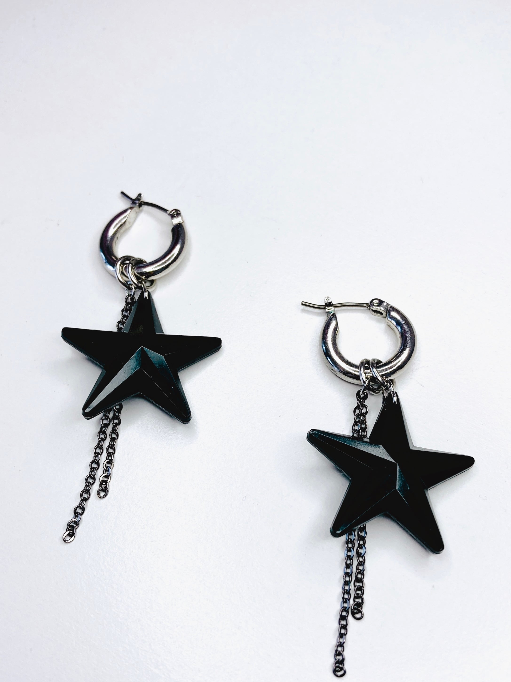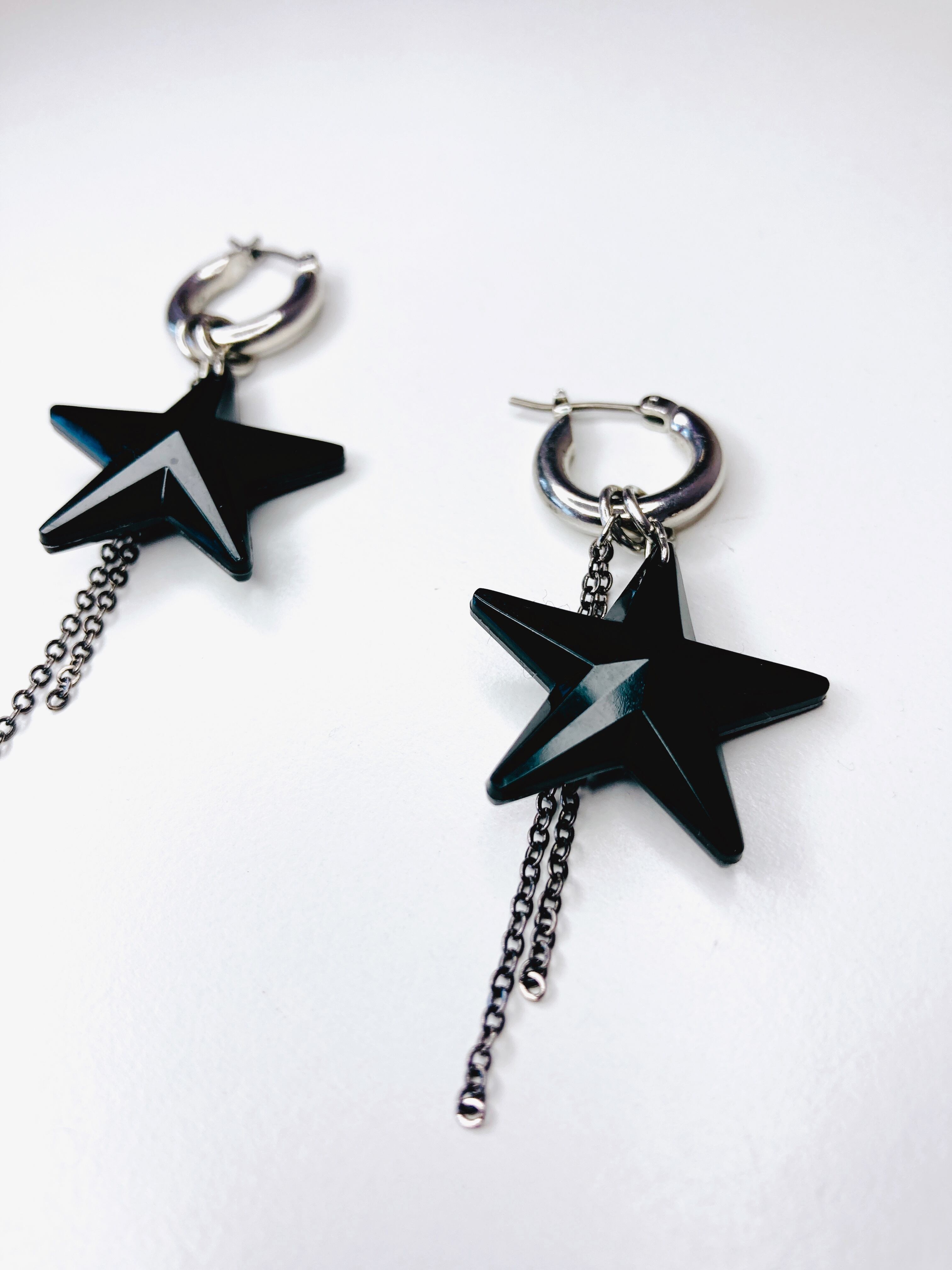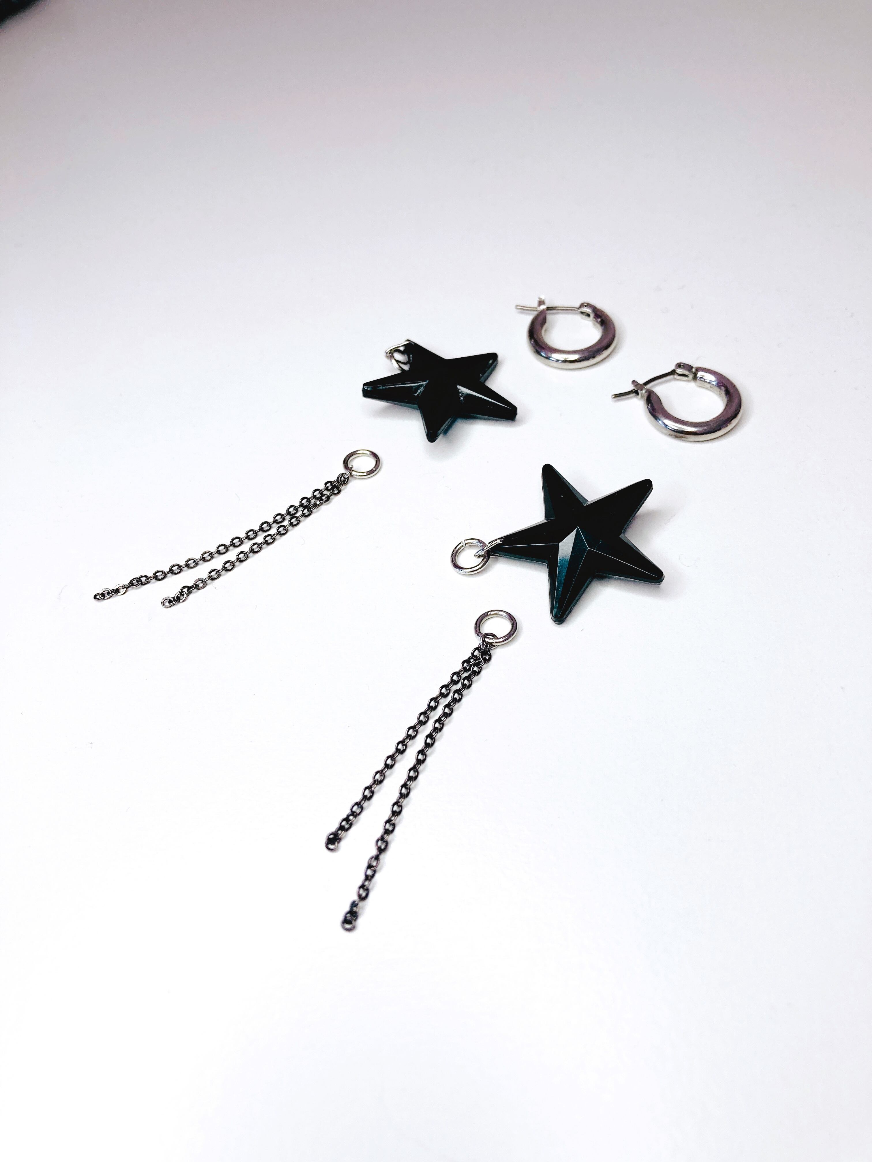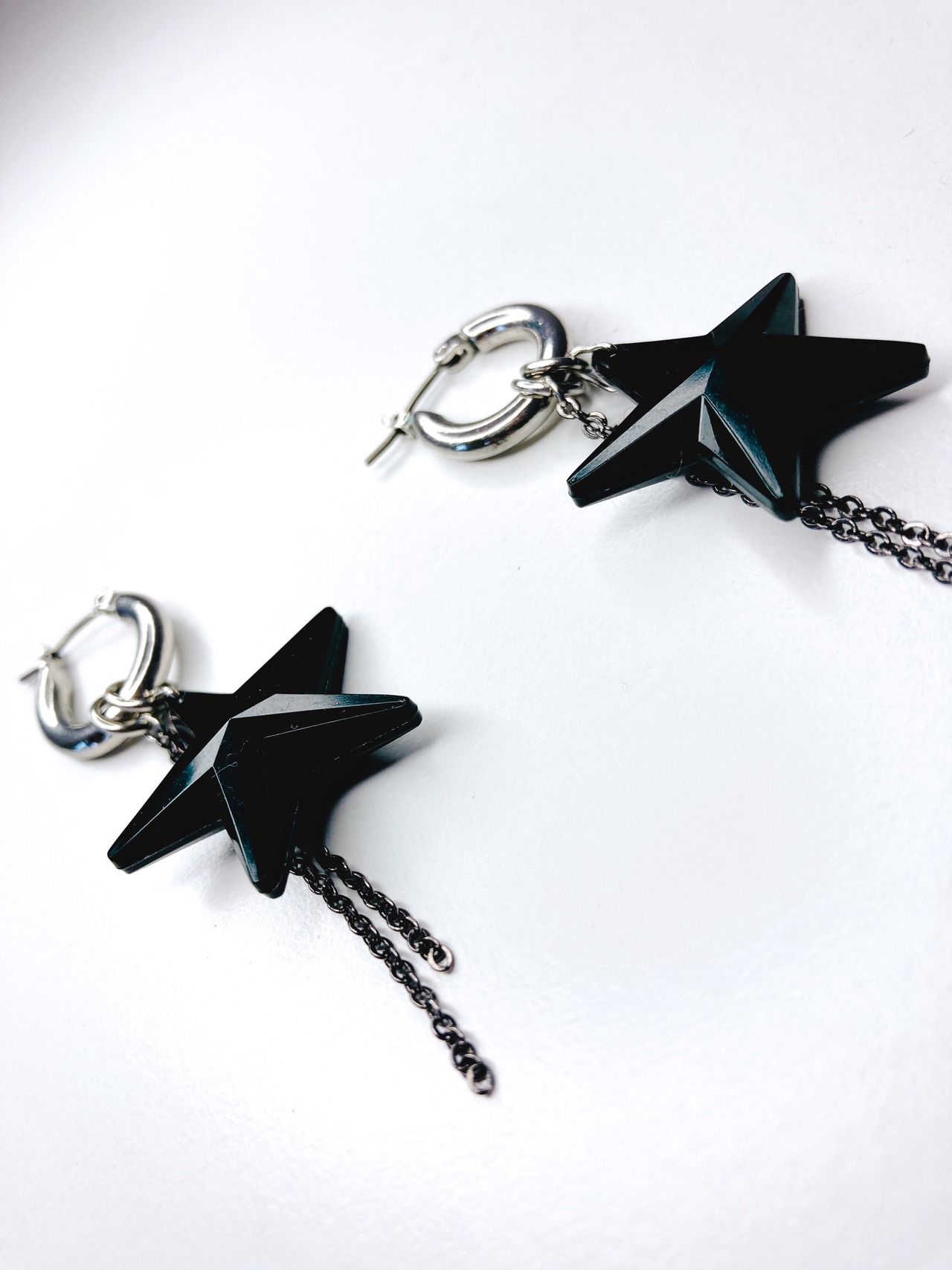 さらに、チャンキーフープピアスからブラックスターとブラックチェーンの部分を付け外しすることができ、3WAYでの着用も可能です。