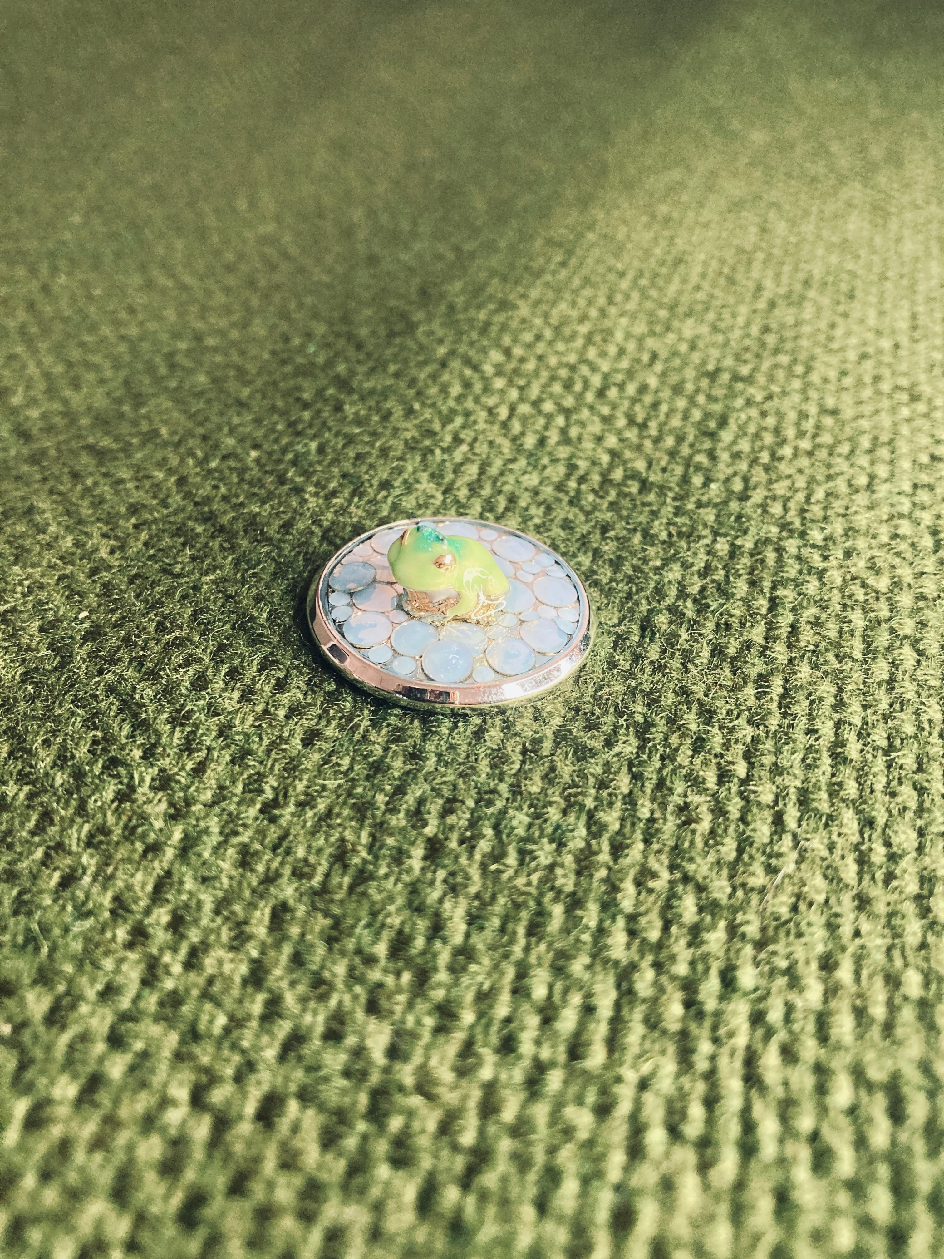可愛いカエルがボールを置く場所をしっかりマーク!ゴルファーの強い味方になります。