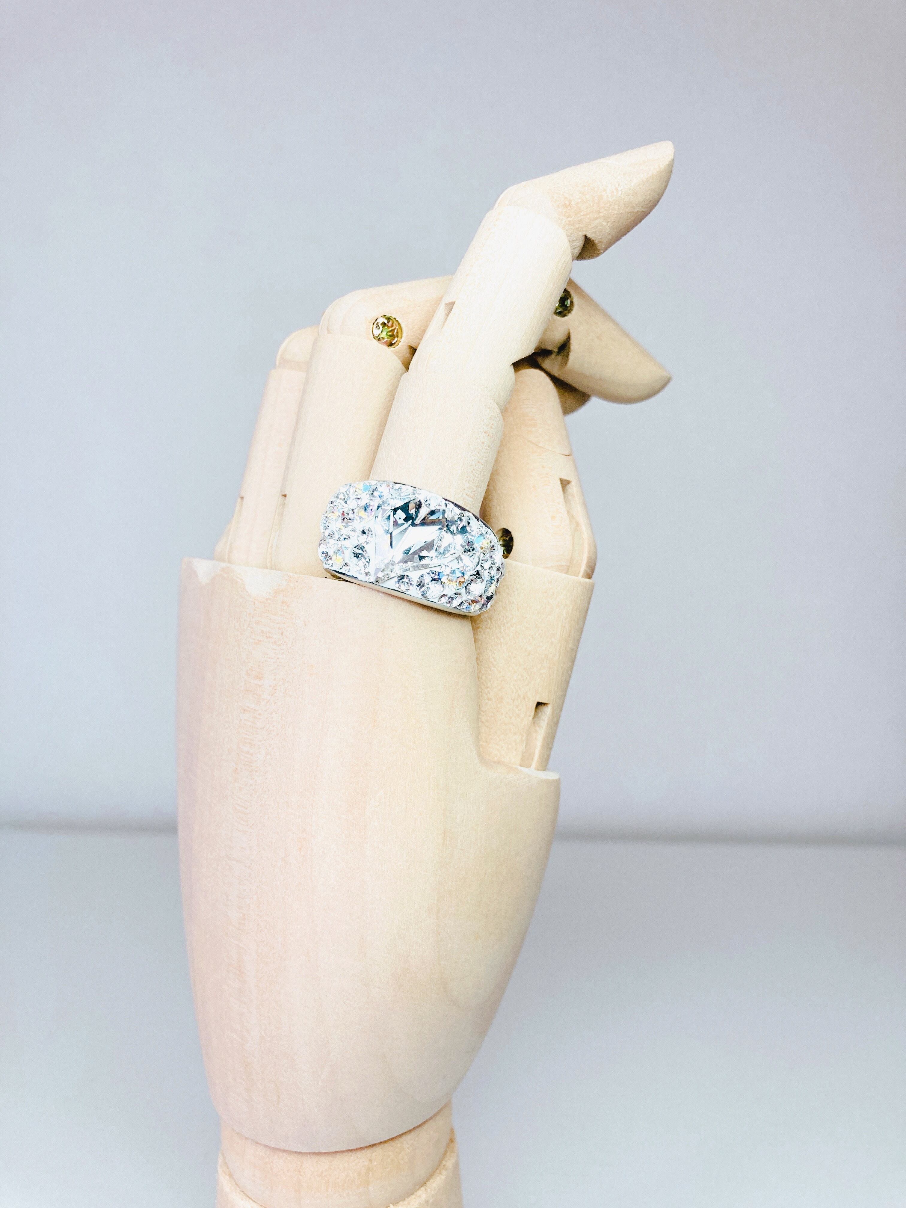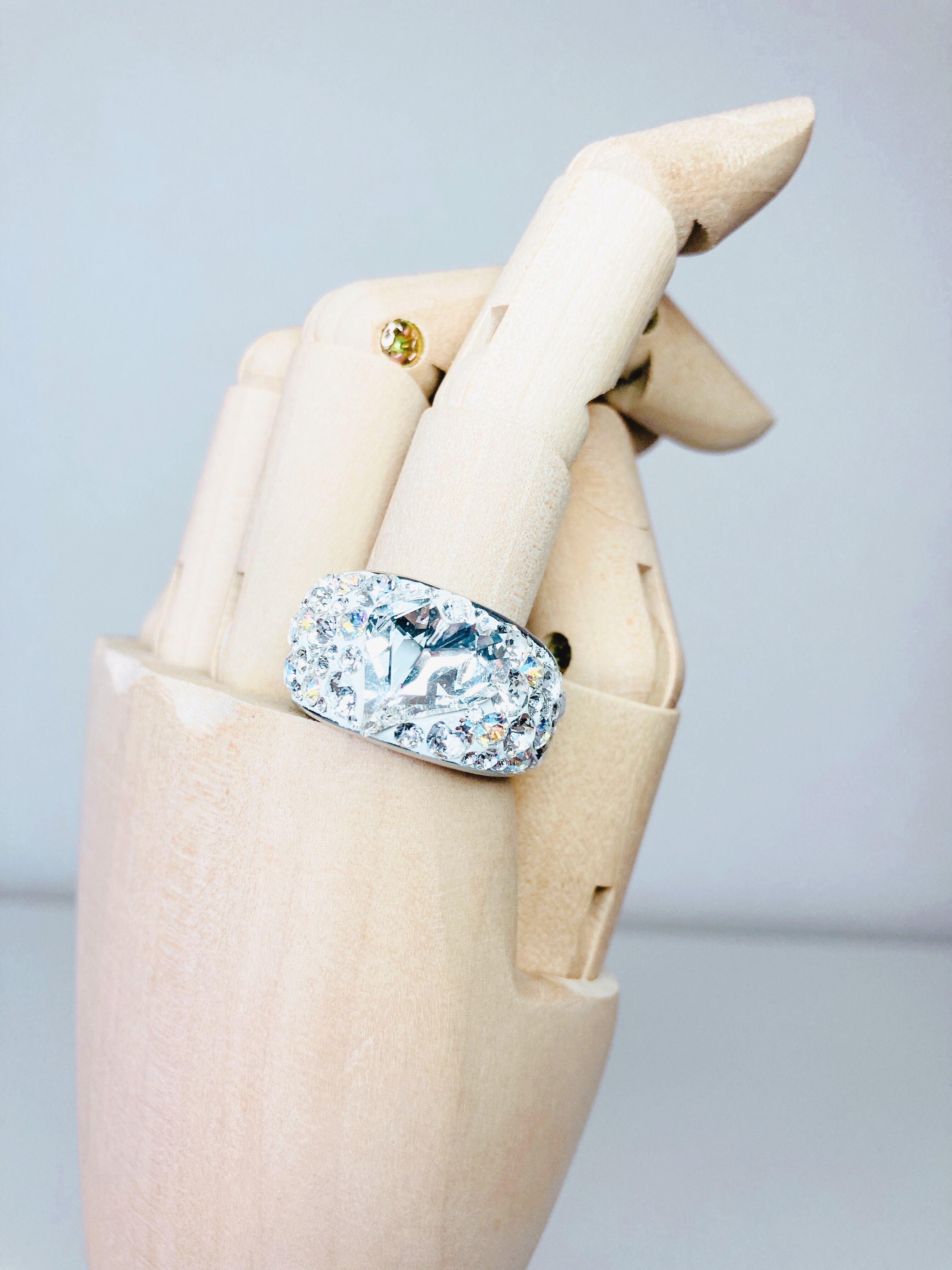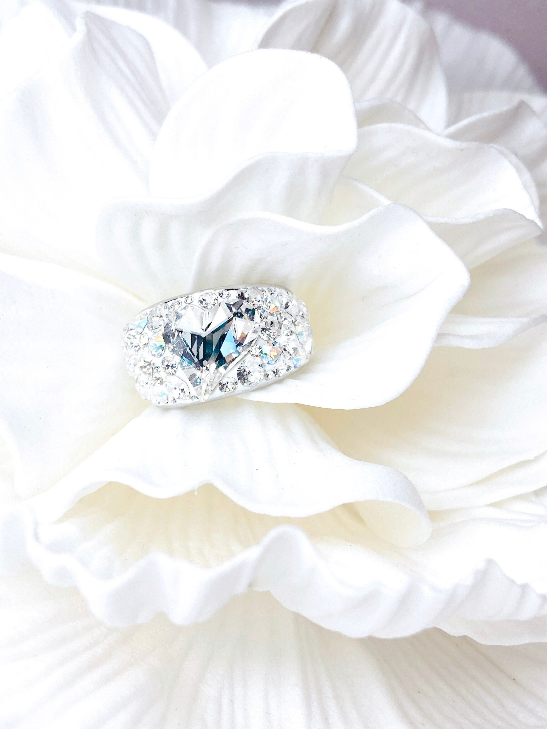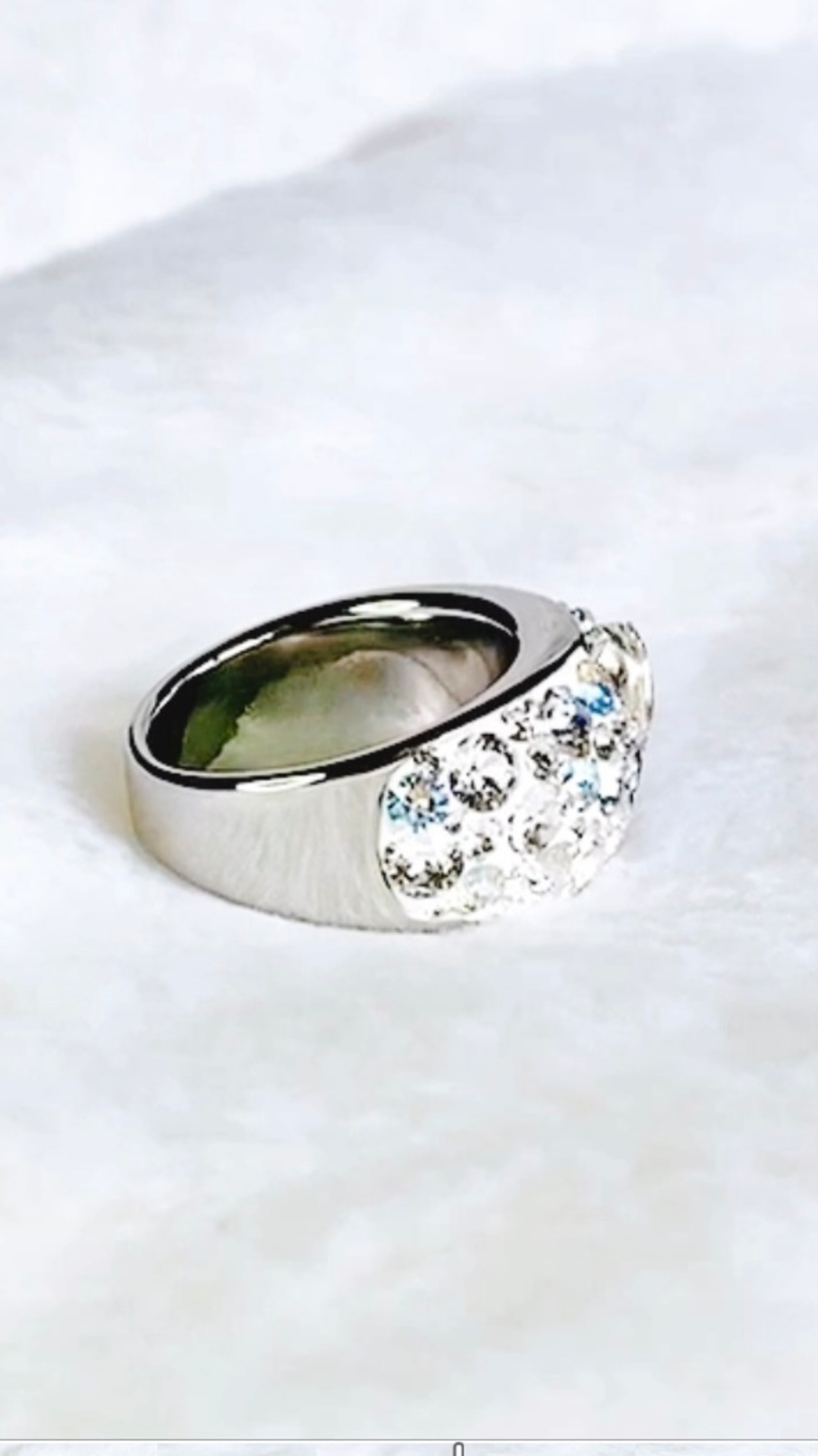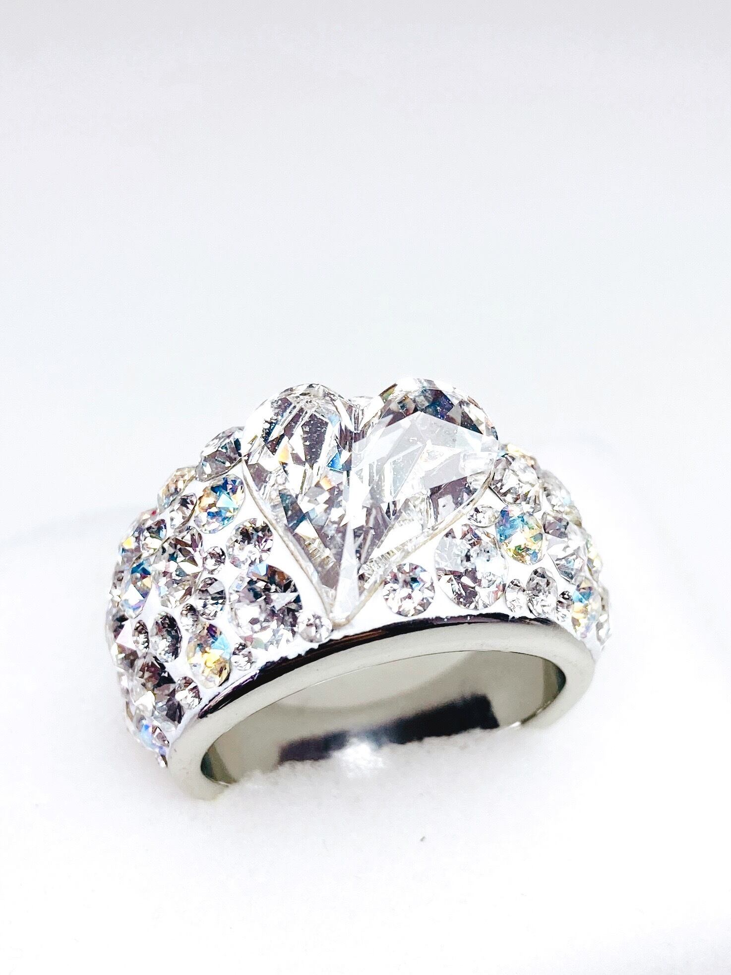 高品質なオーストリア産のクリスタルのみを贅沢に散りばめたとってもボリューミーでゴージャスなリングです。