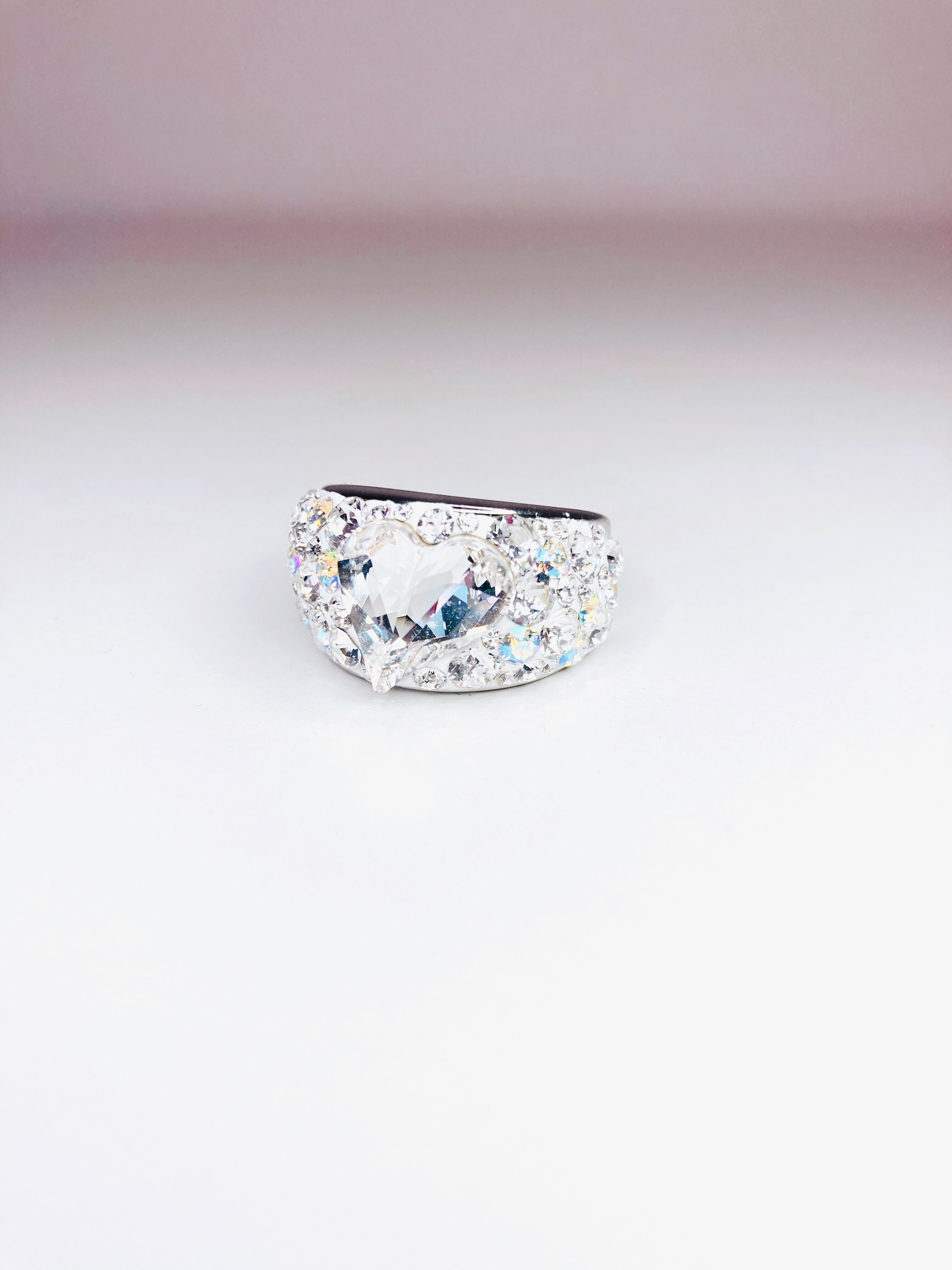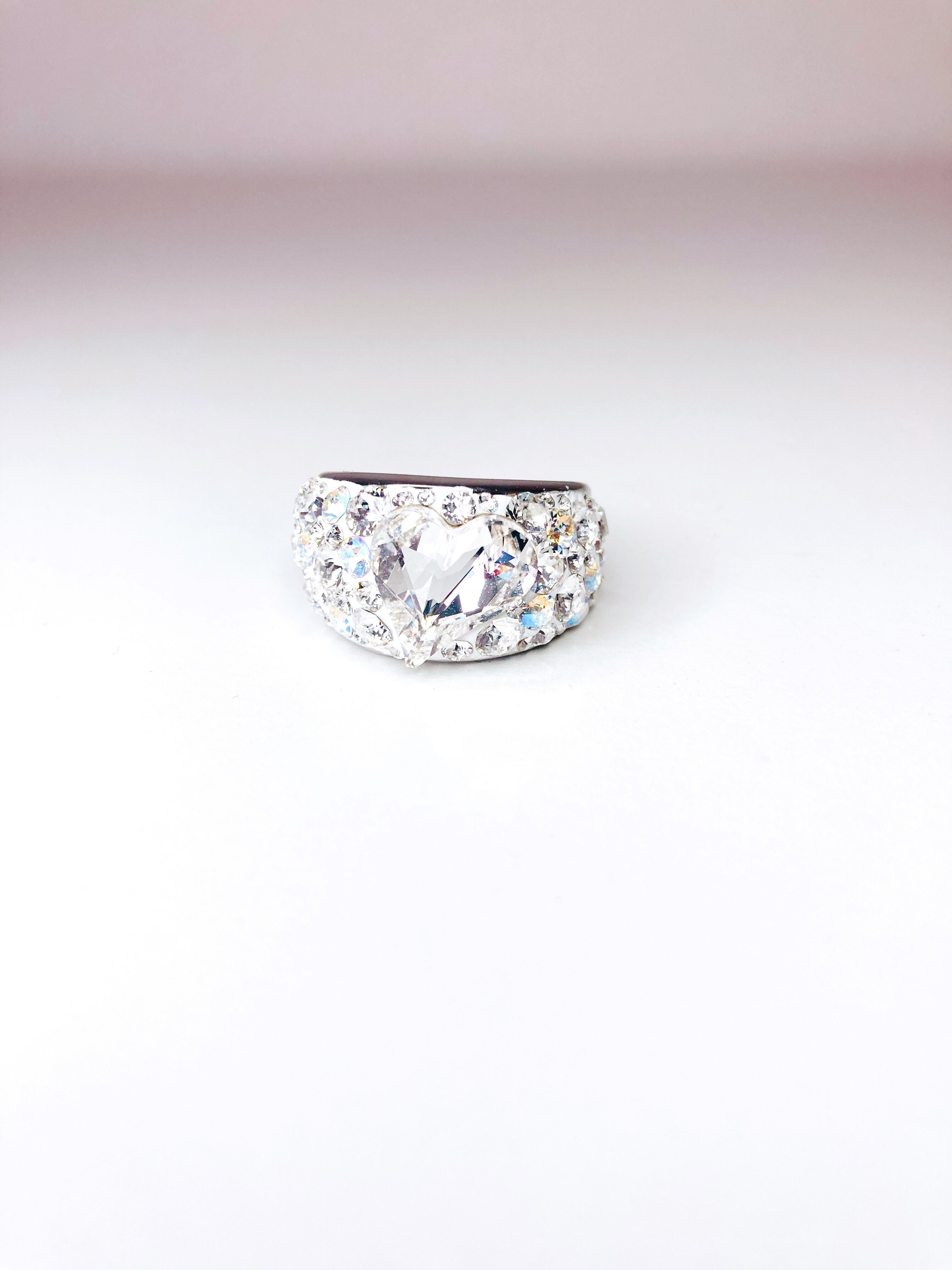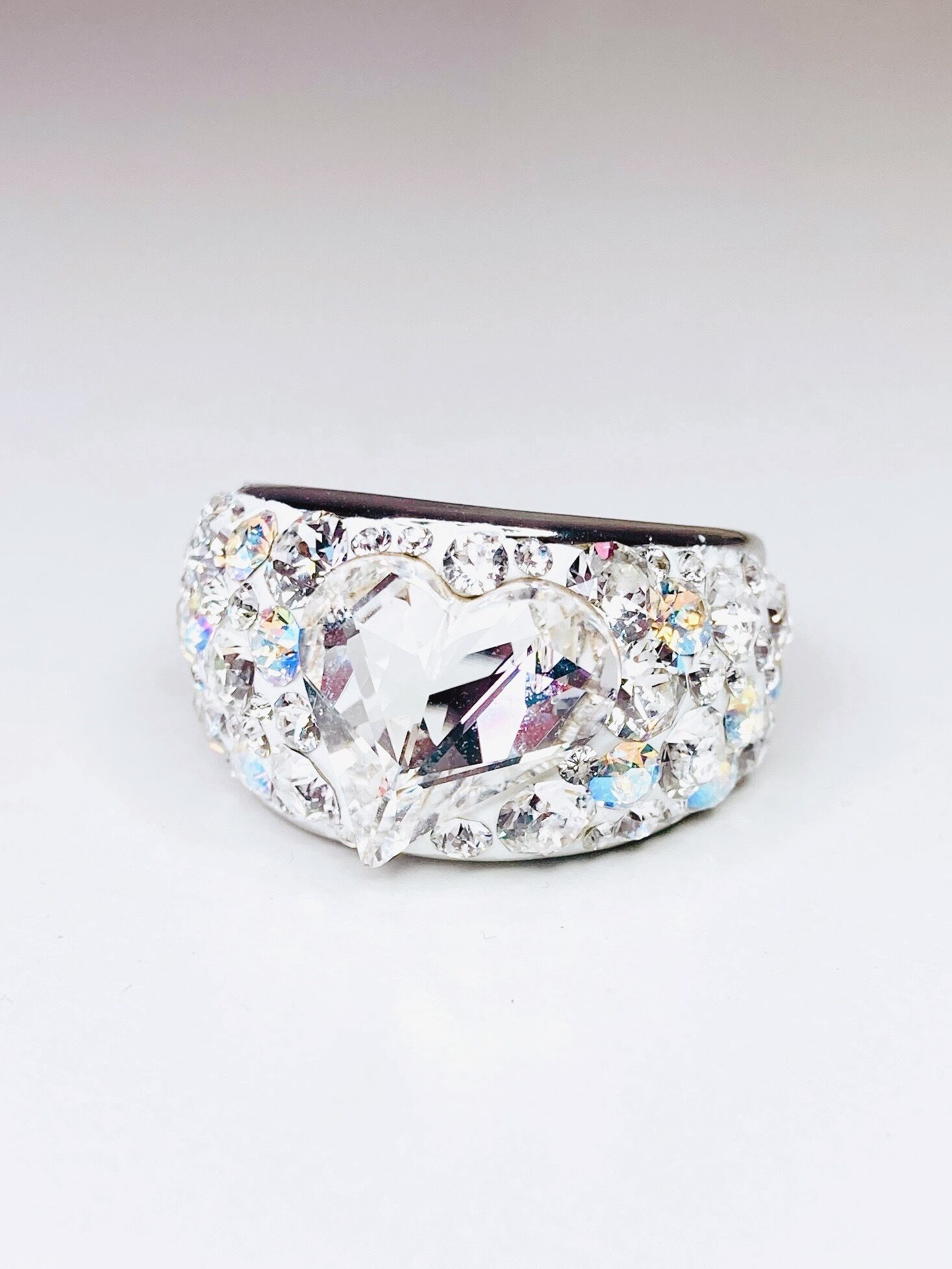 大ぶり 大人可愛い クール クリスタル ビジュー リング ゴージャス ボリューム ボリューミー 春 夏 秋 冬 お出かけ カジュアル フォーマル オケージョン パーティー 貴和クリスタル クリスタルリング リーズナブル カジュアルリング バースデーギフト バースデー 記念日 誕生日 プチギフト クリスマス クリスマスギフト クリスマスプレゼント シルバー ハート
