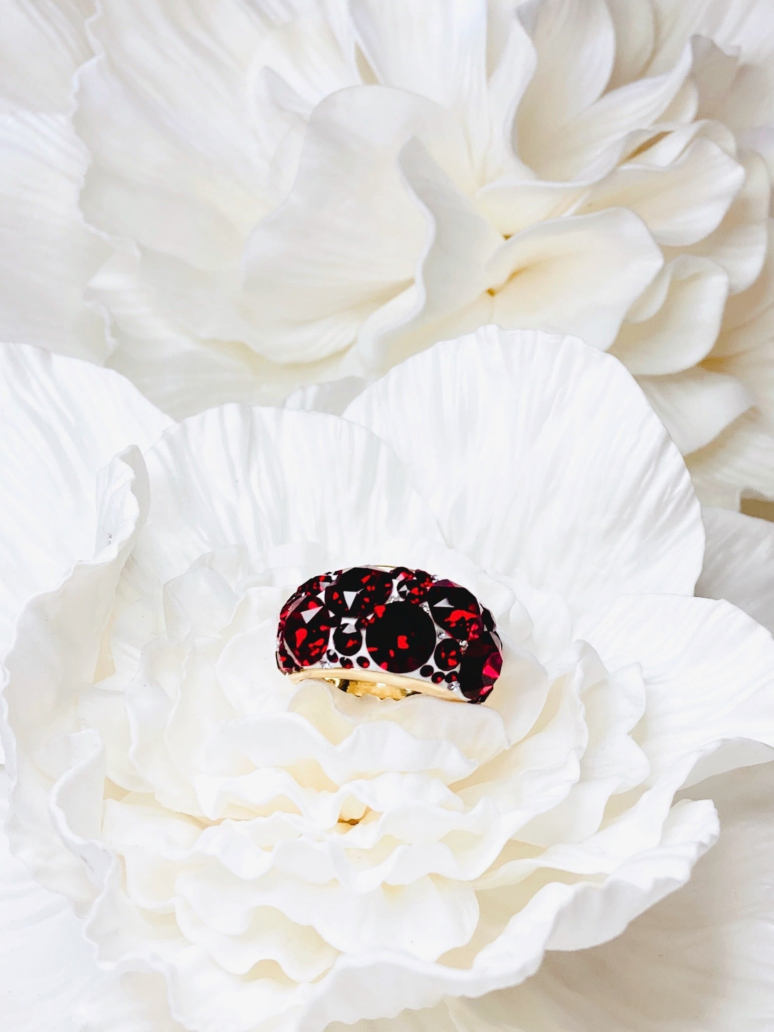 深みのあるレッドカラーのクリスタルをふんだんに散りばめました。