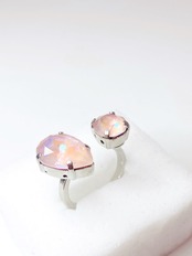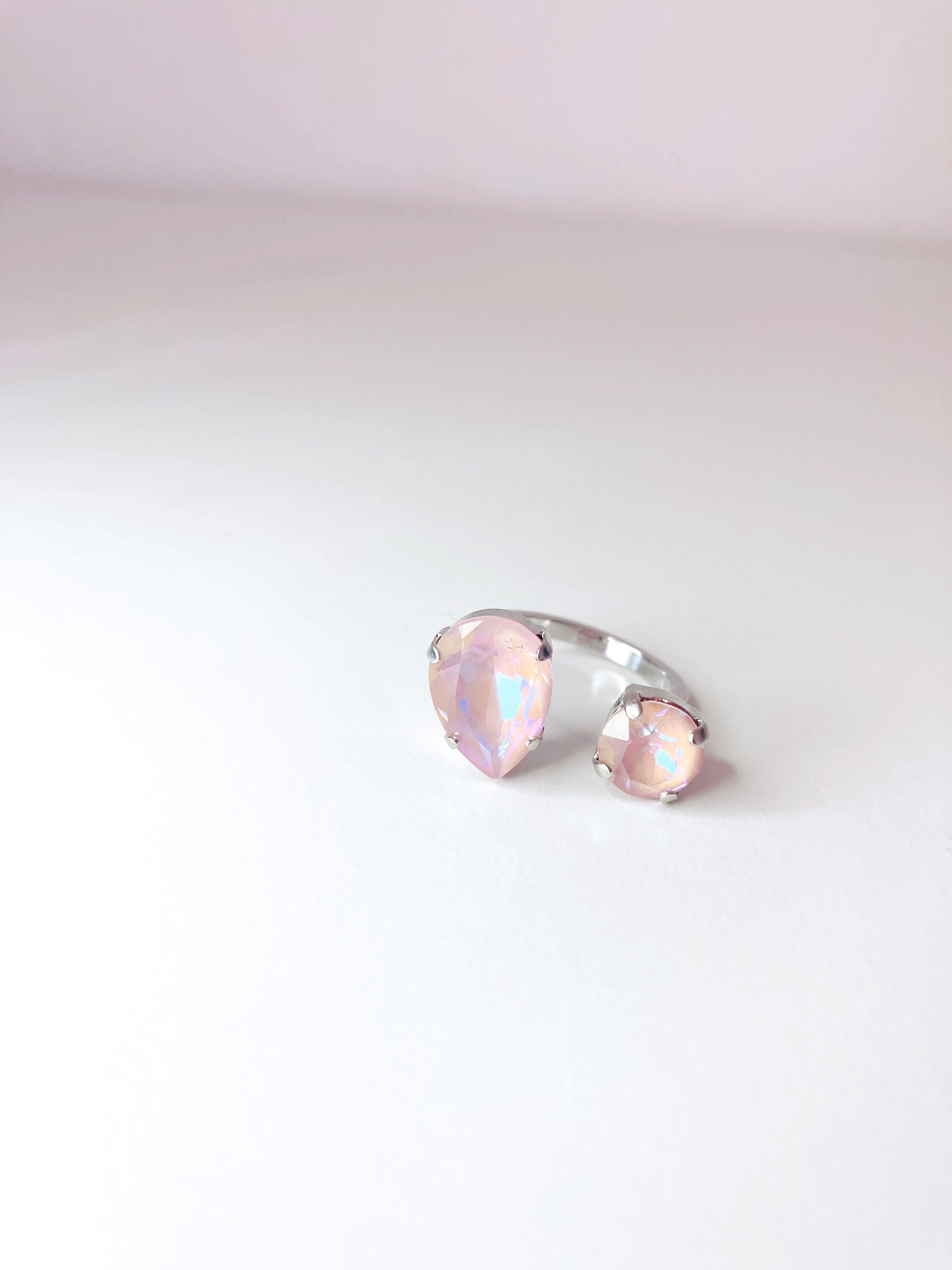 オープンな上部の両脇に2粒のピンク系クリスタルを配置しました。