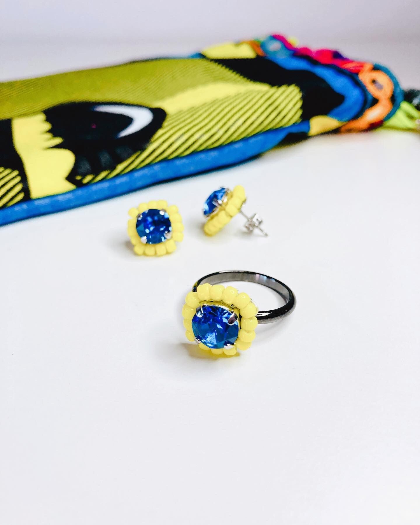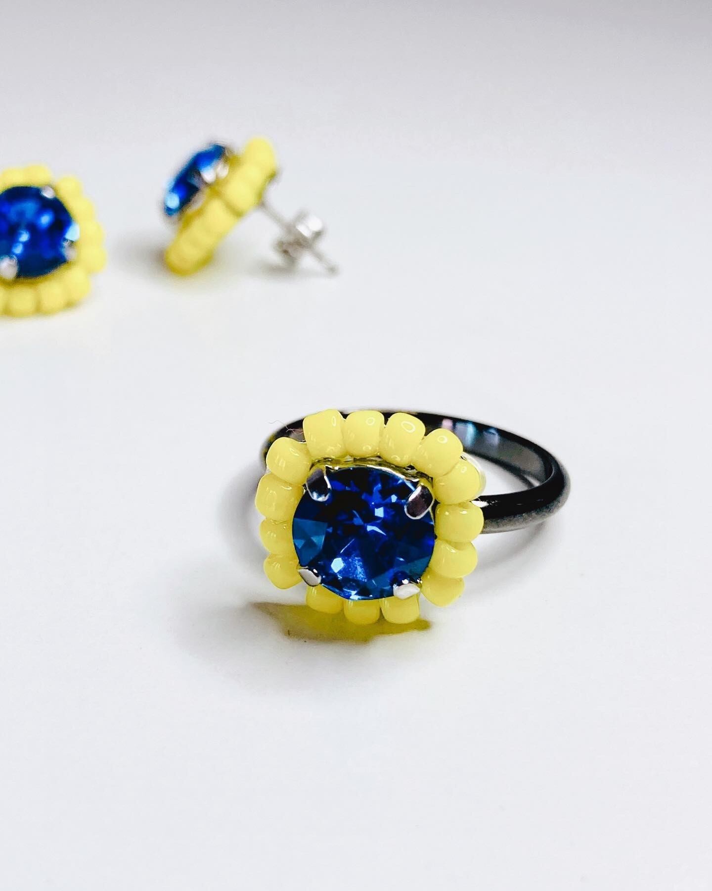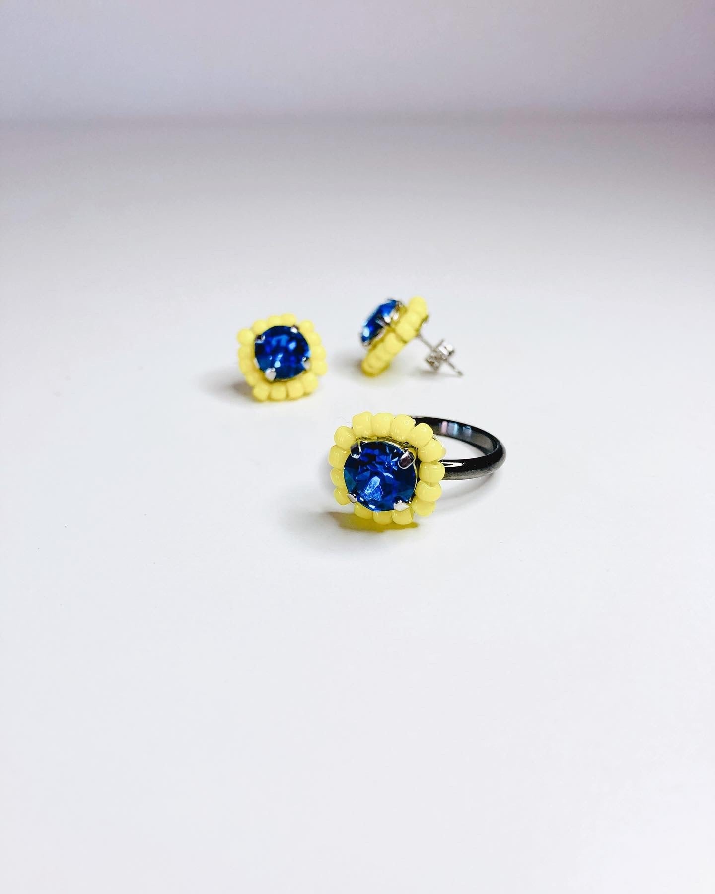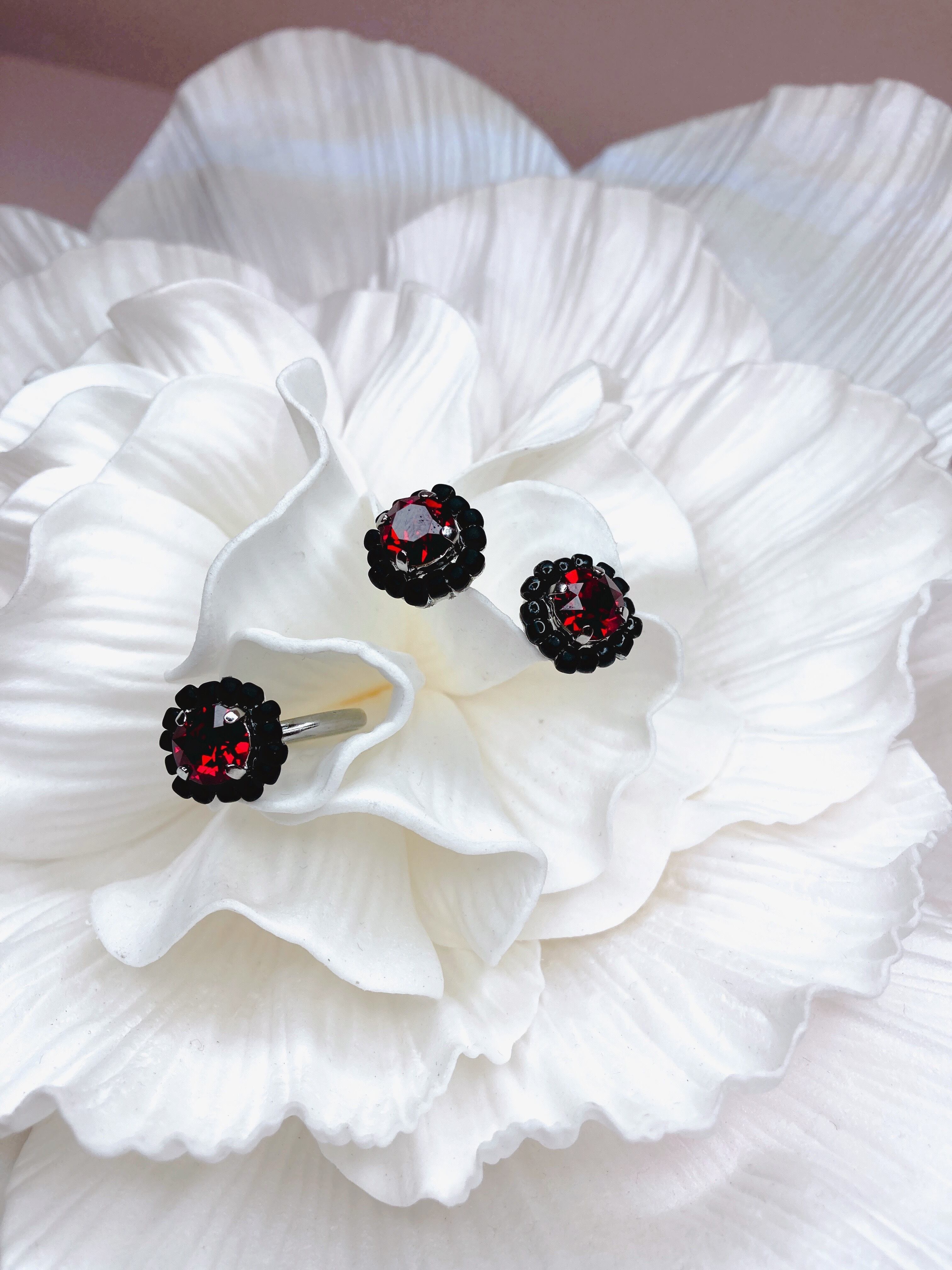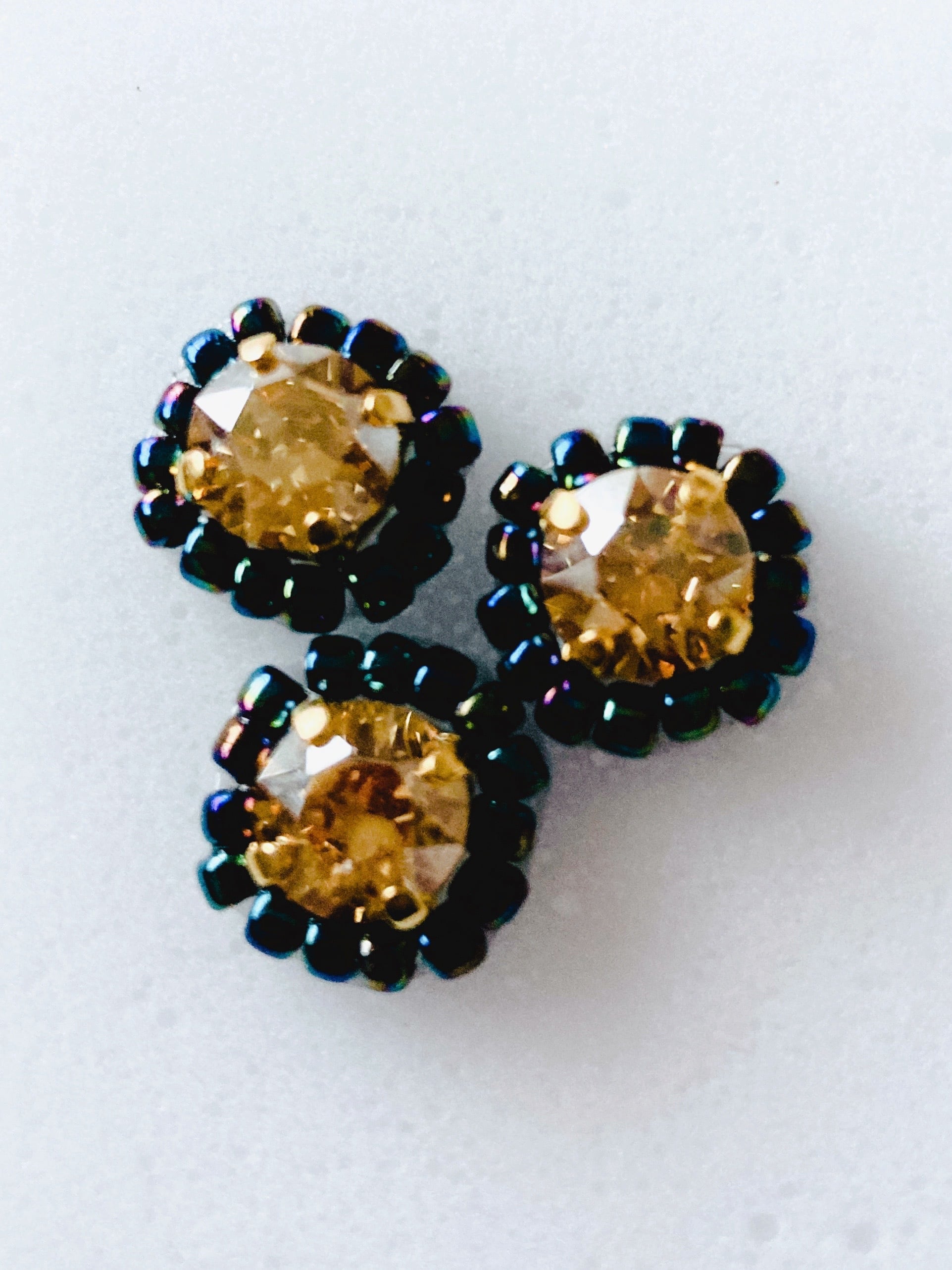 1粒のクリスタルとその周りにはビーズを施しました。
