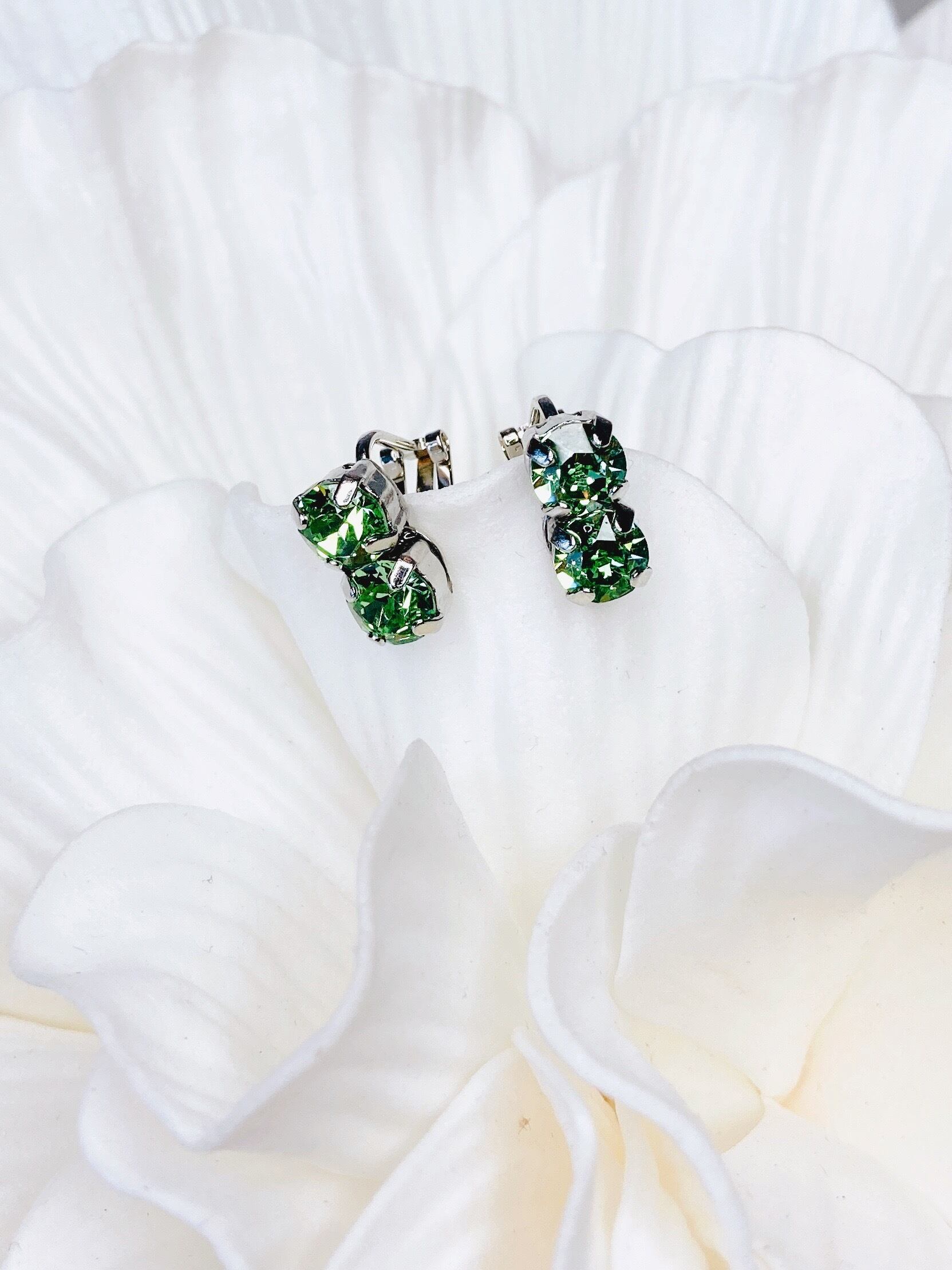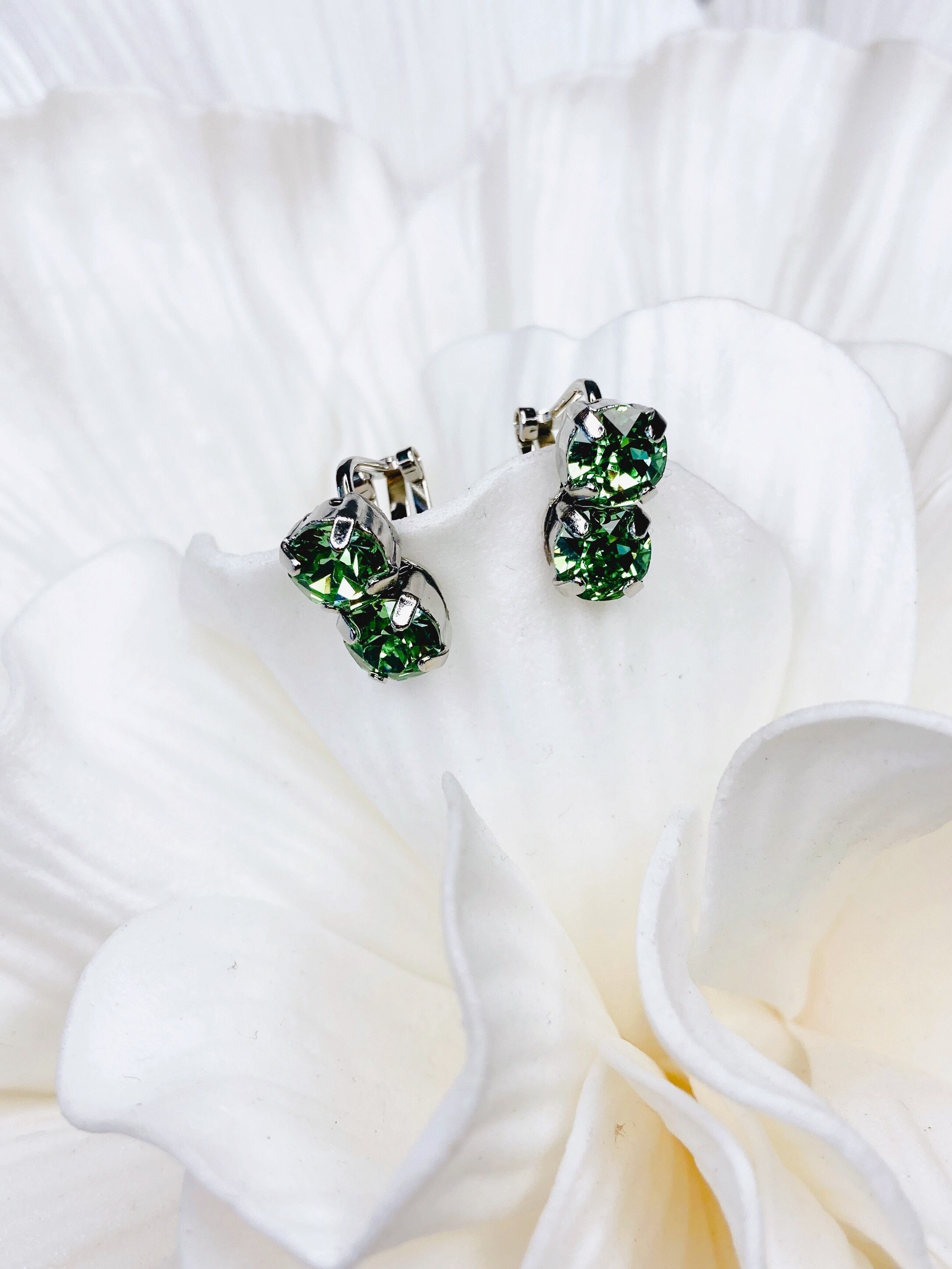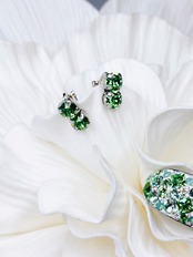 耳たぶに2粒、小粒ですがクリスタルの輝きがとってもゴージャスです。