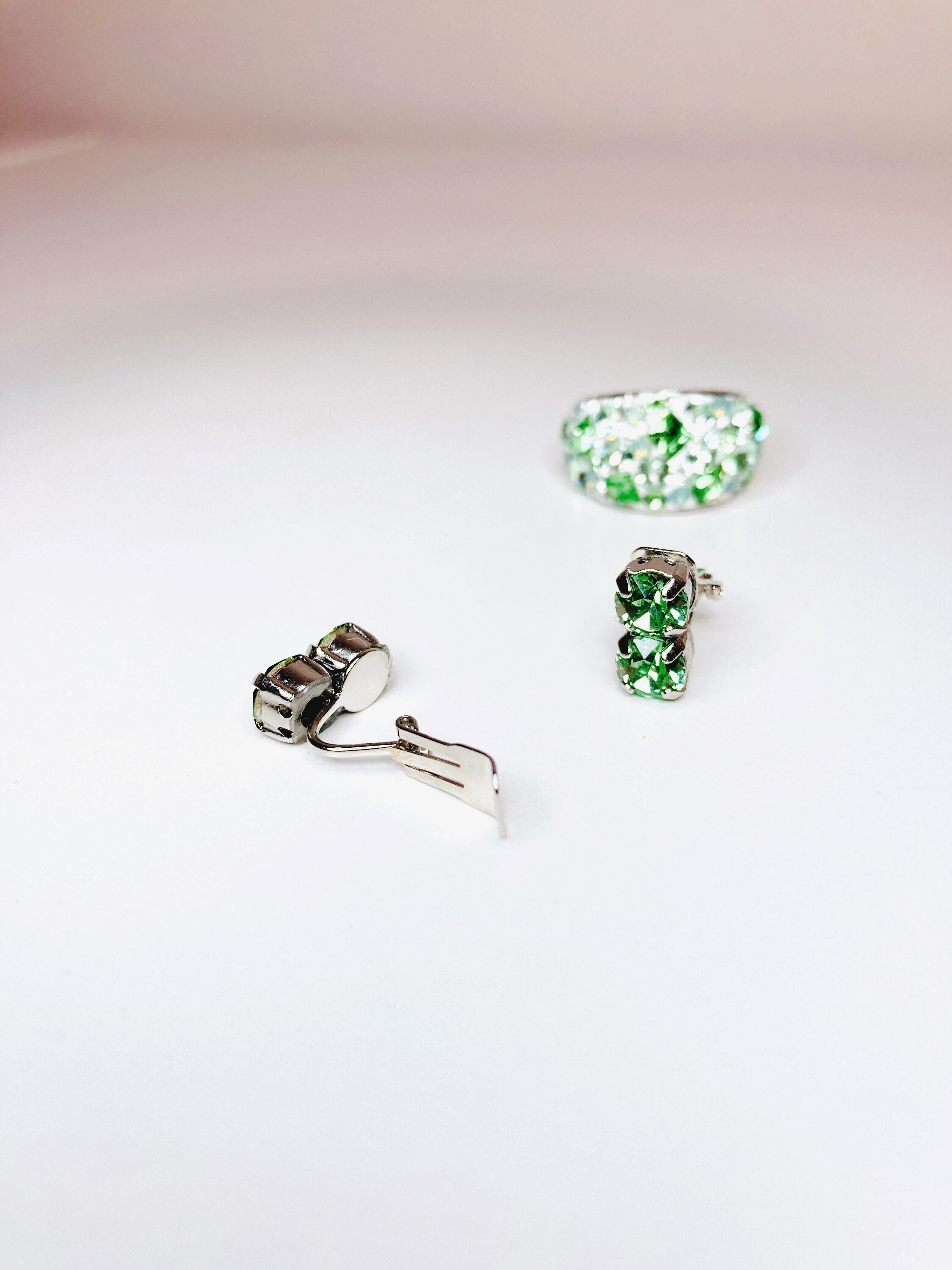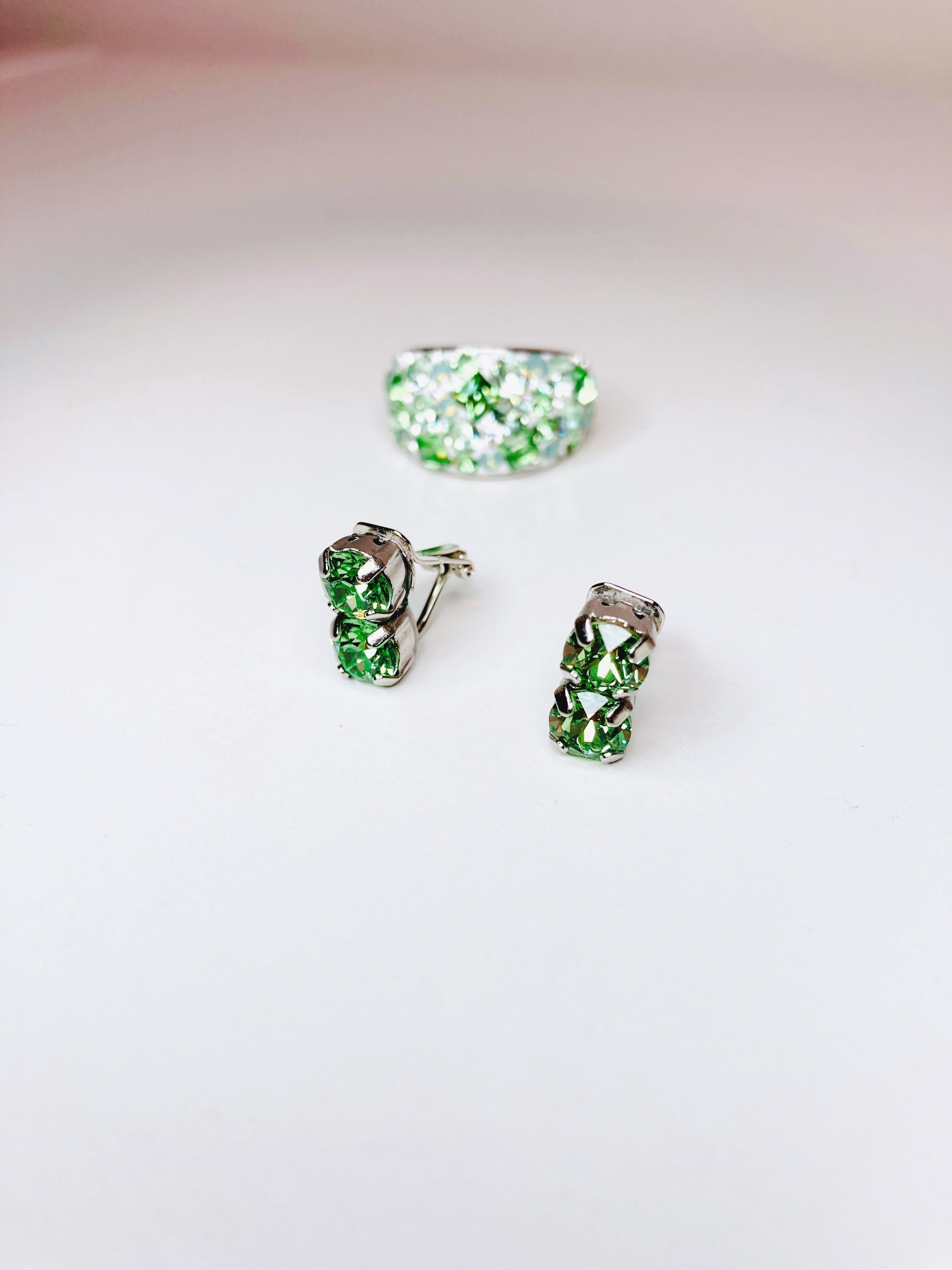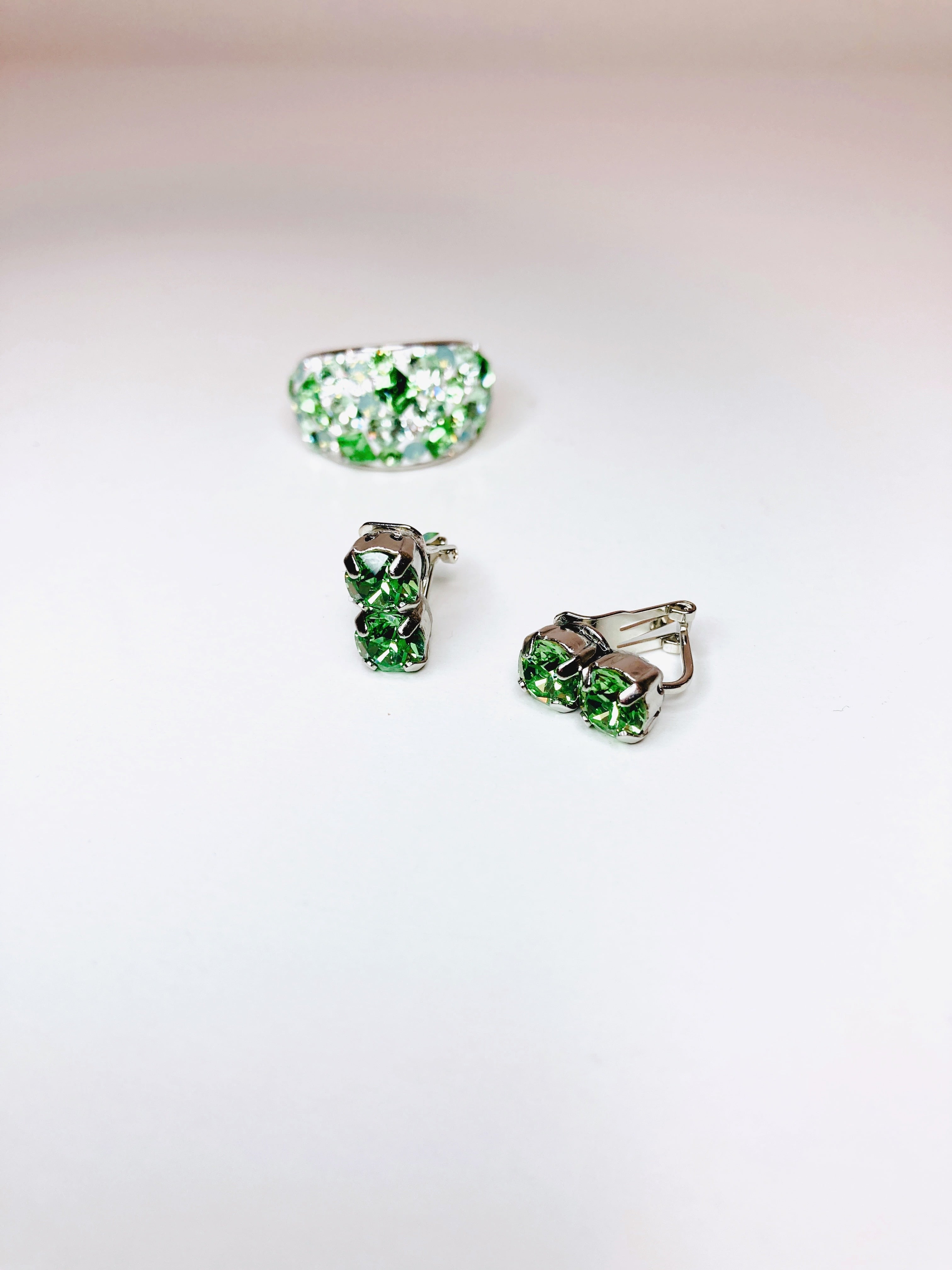 大ぶり クリスタル ビジュー リング ピアス キュート ゴージャス ボリューム ボリューミー 大ぶり 春 夏 秋 冬 お出かけ カジュアル オケージョン フォーマル パーティー バースデープレゼント 誕生日 プチギフト バースデー クリスマス クリスマスプレゼント クリスマスギフト 記念日 ホリデーシーズン ペリドット バースストーン 誕生石