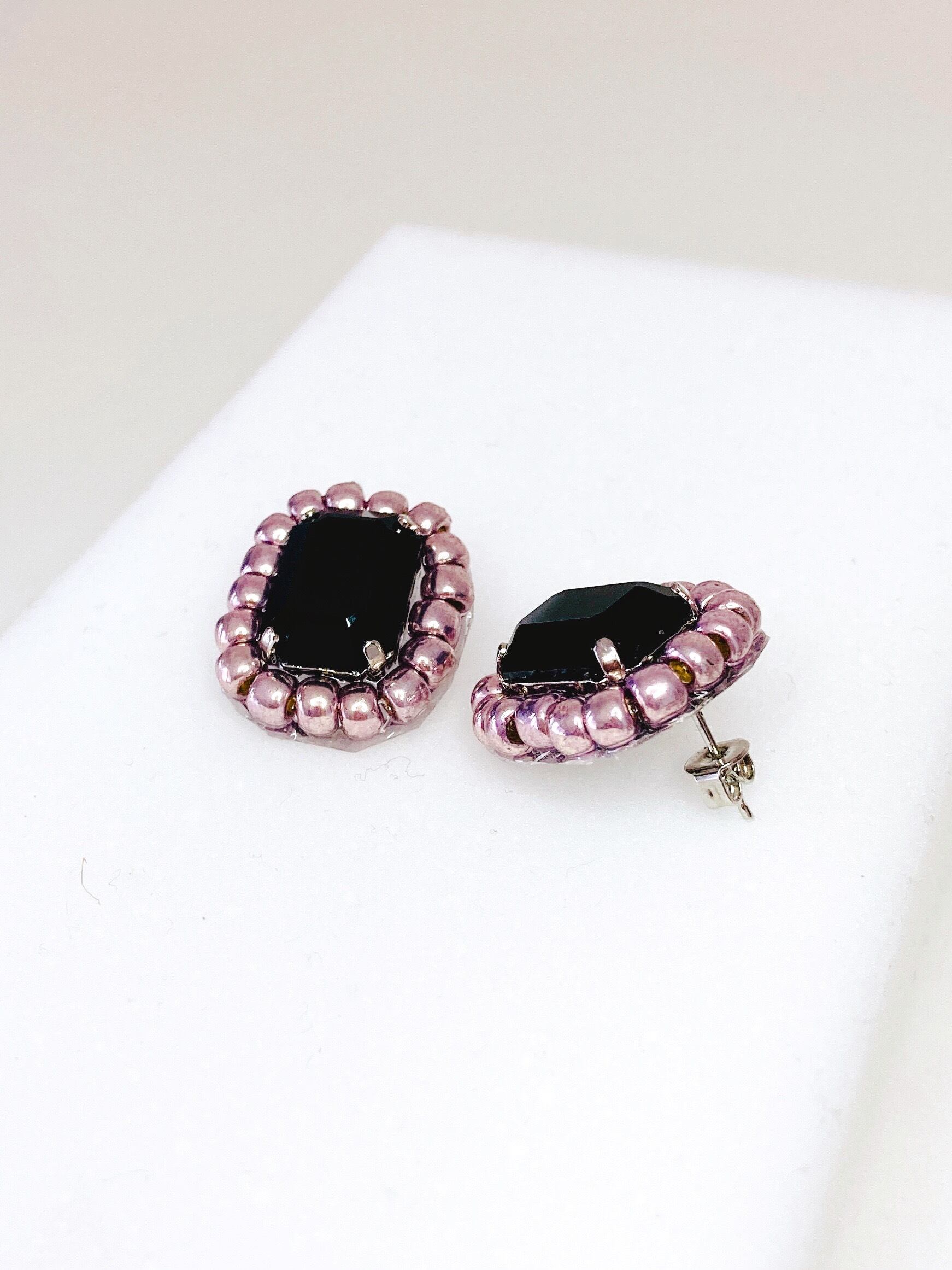 オーストリア産、高品質クリスタルの周りにビーズを施したピアスです。