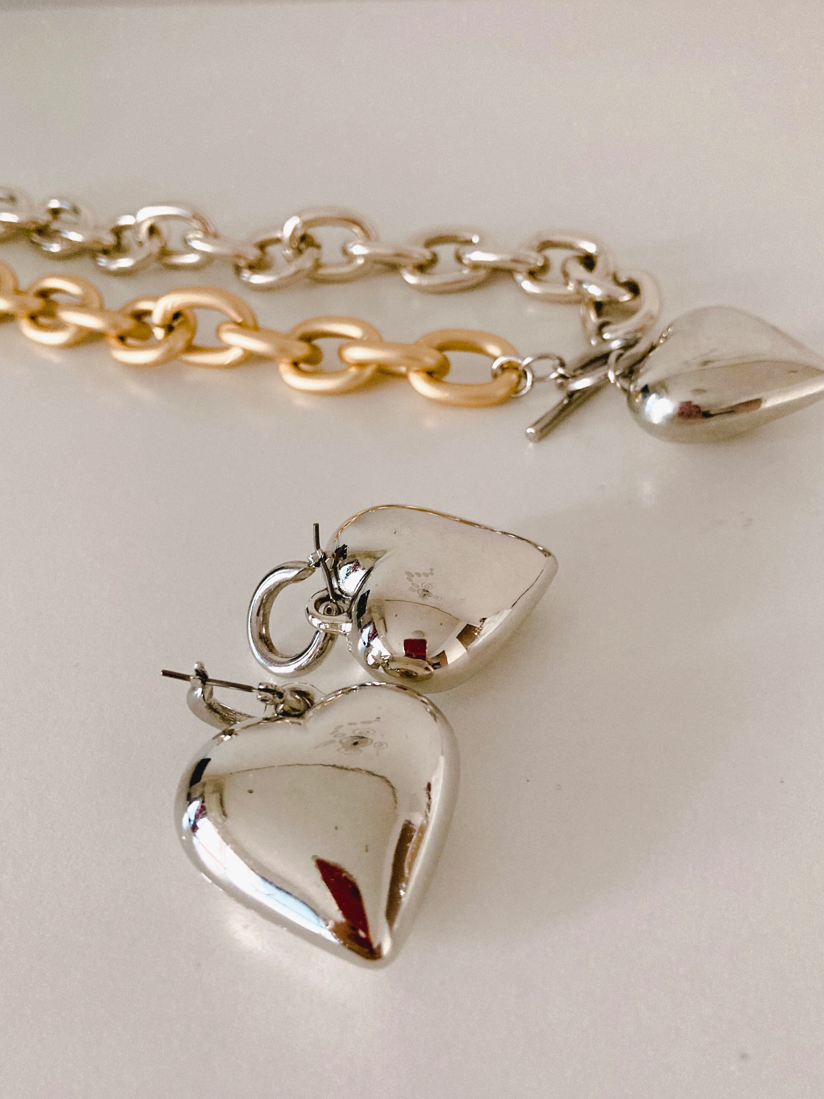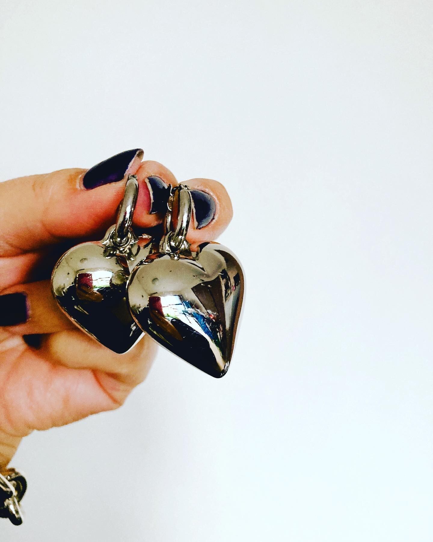 チャンキーフープピアスに存在感あり過ぎでめちゃくちゃ可愛いメタルハートを付けました。