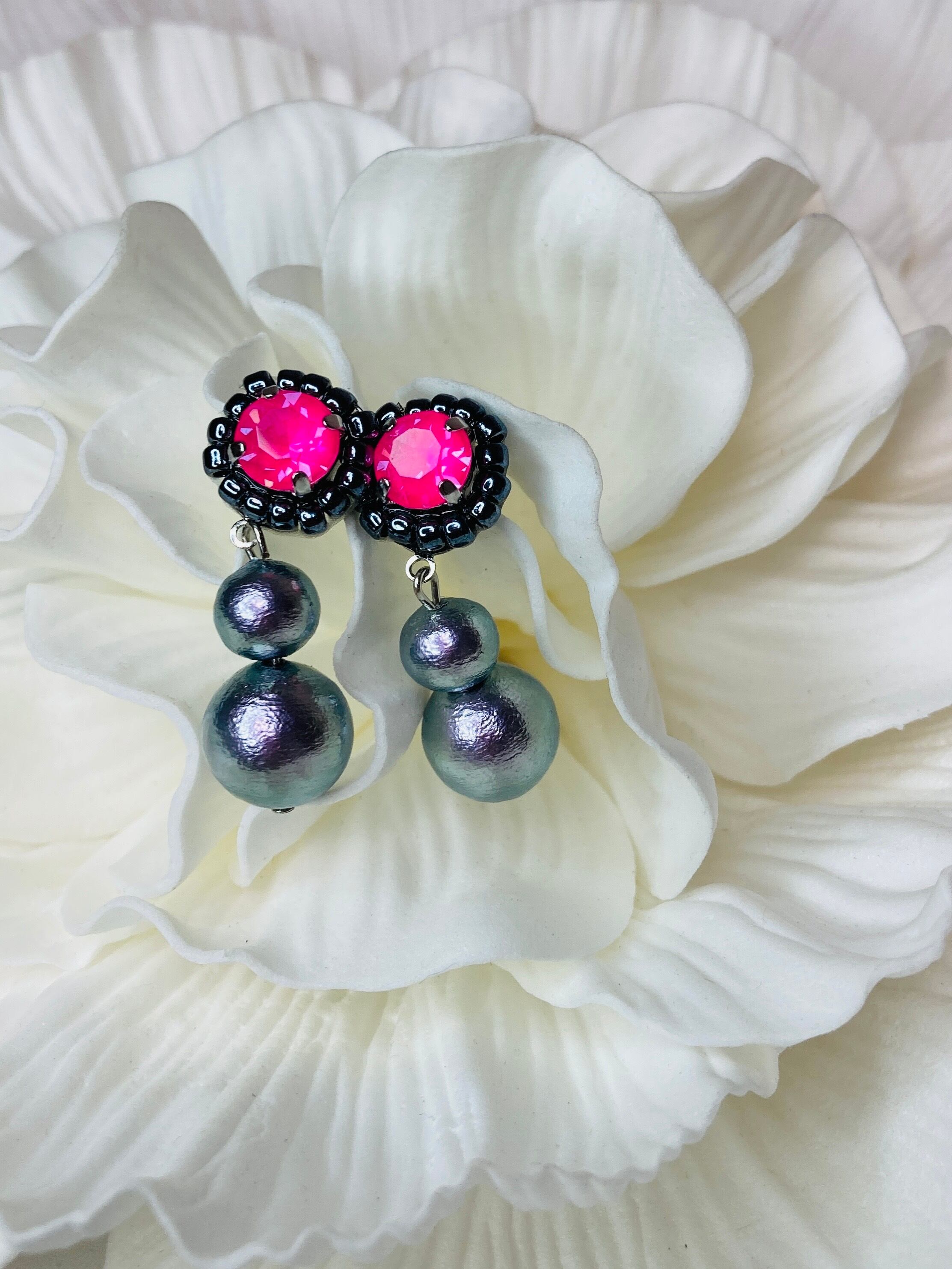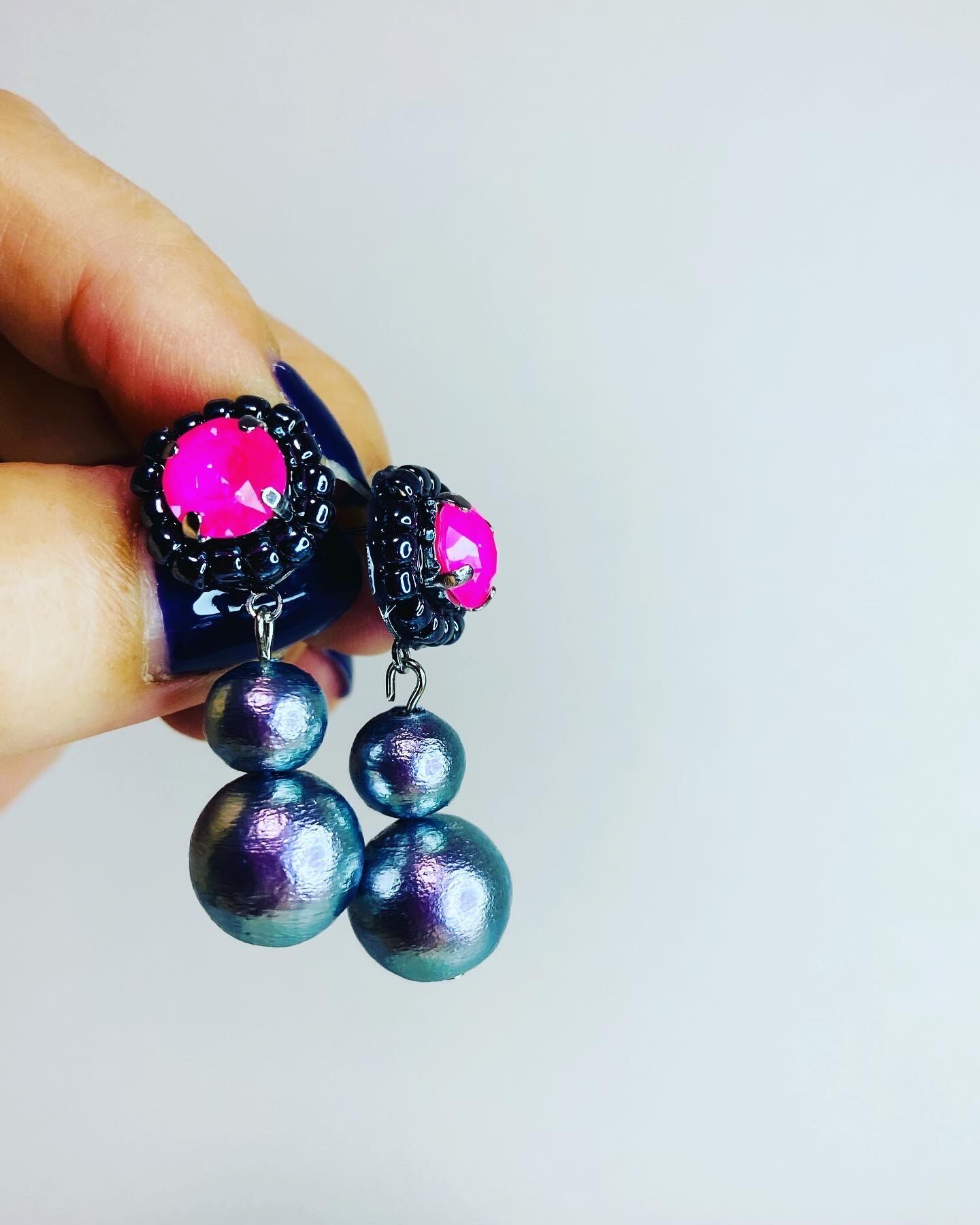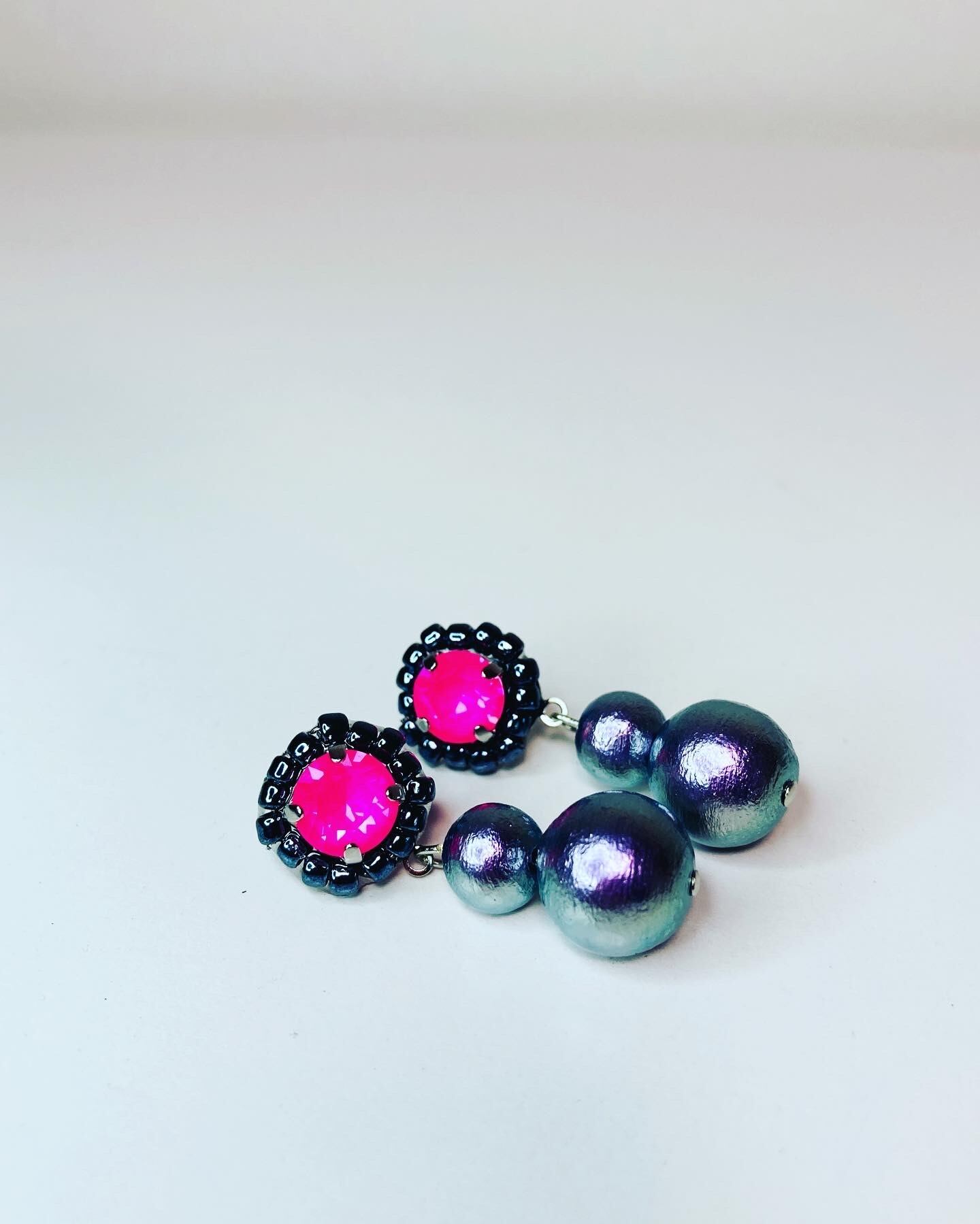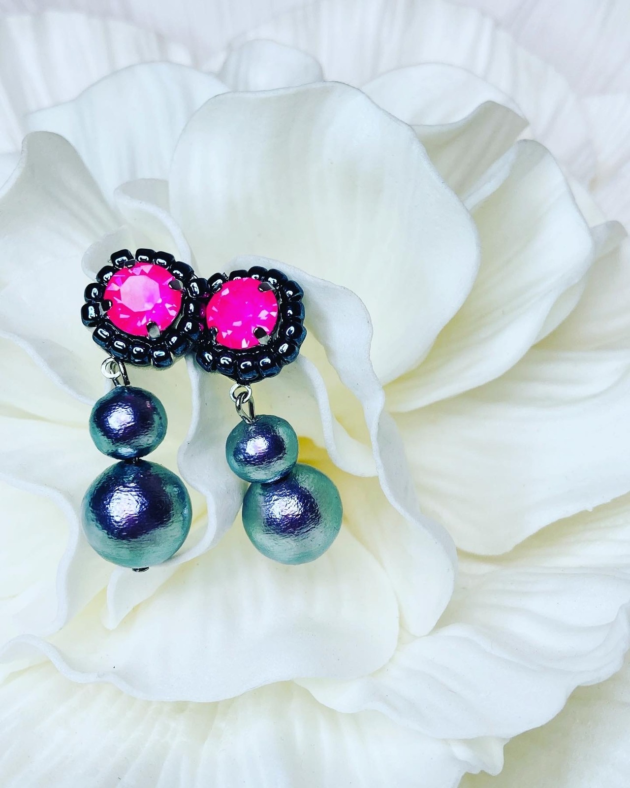 下部には大小異なるサイズのコットンパールを施しました。ダークな色味の「リッチパール」カラーを使用しリッチでよりゴージャスに‼︎