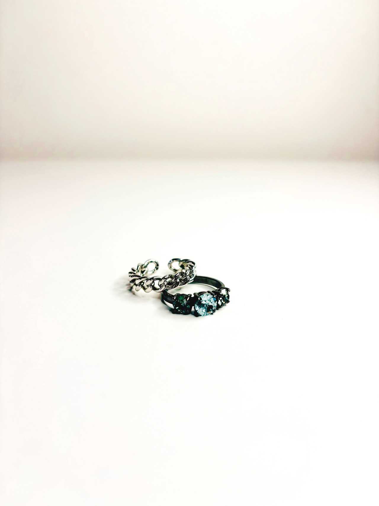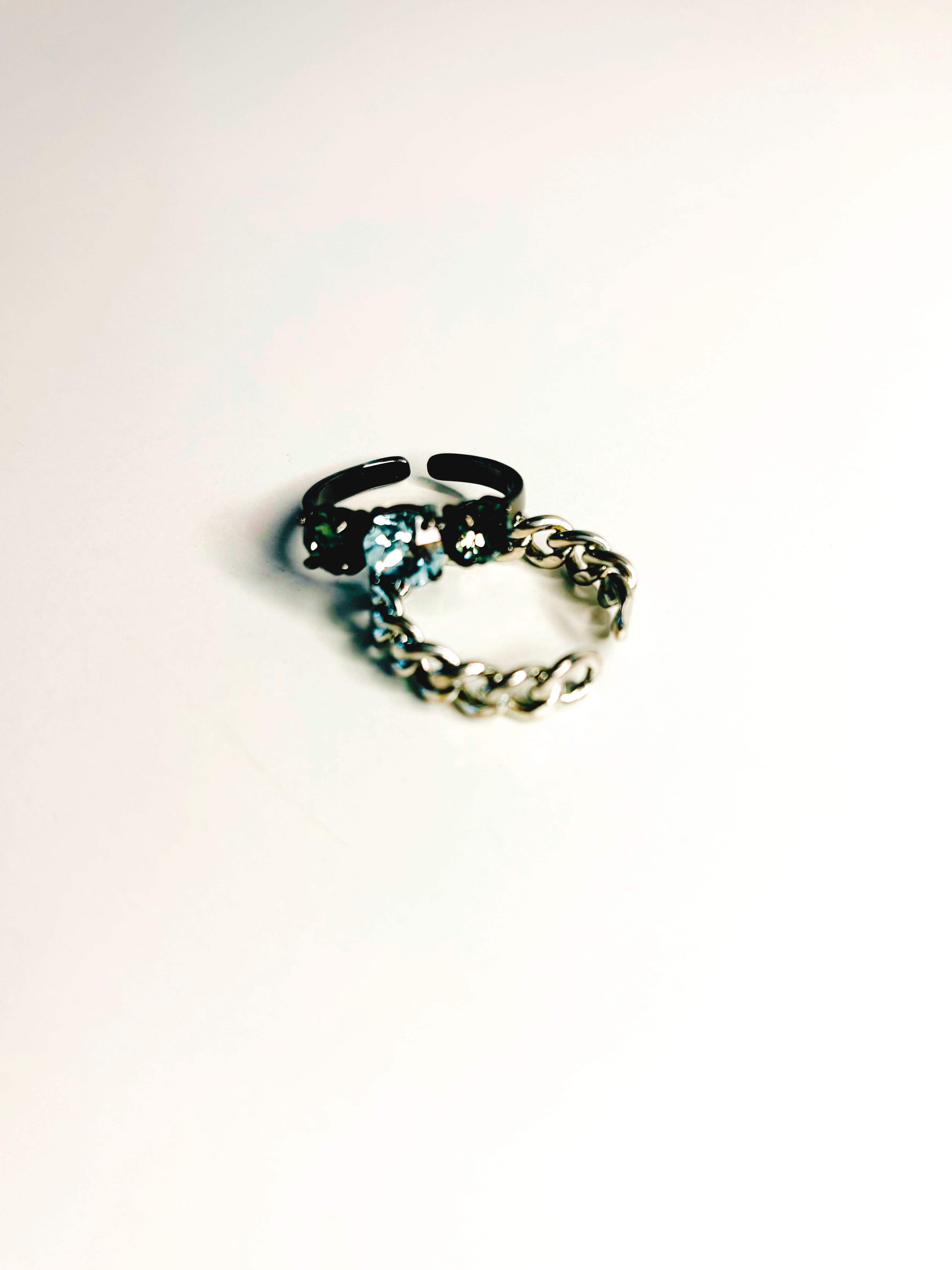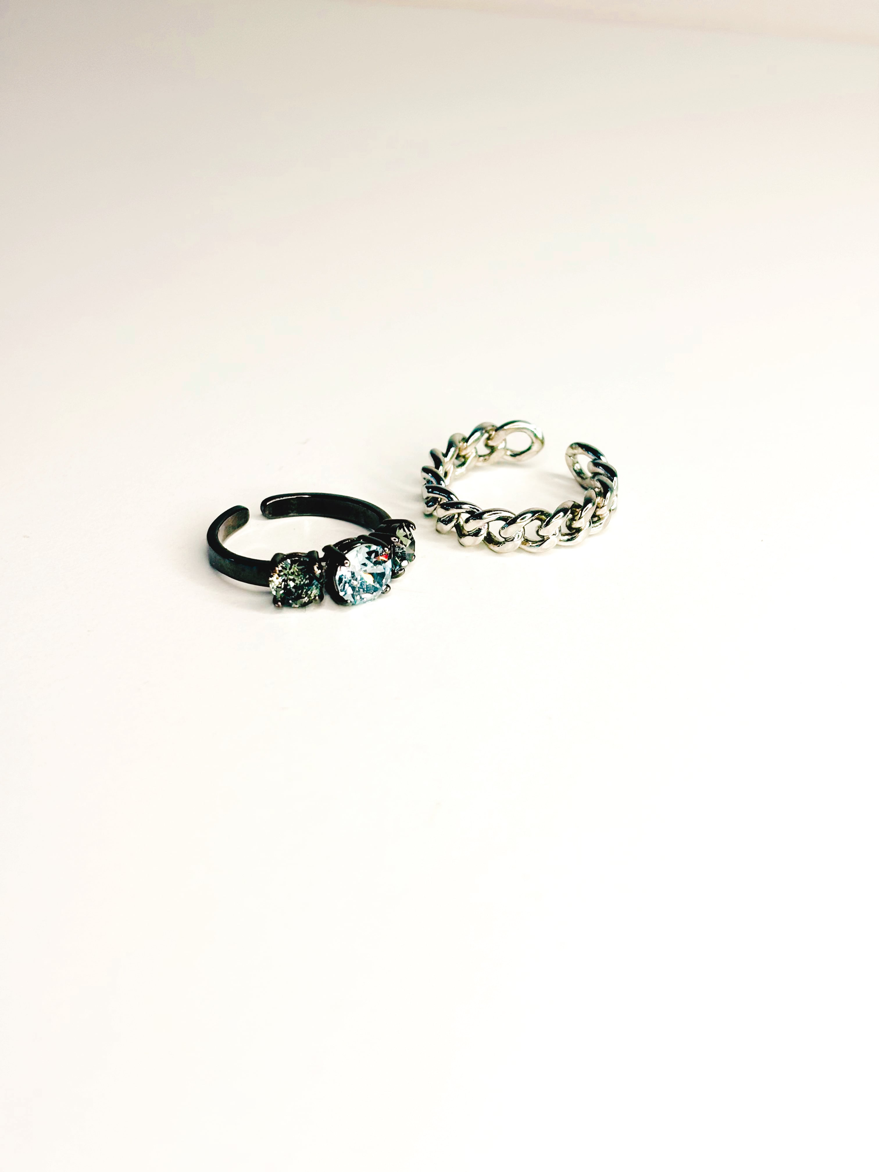 高品質なオーストリア産クリスタルを3粒施したリングとチェーンのリング、2個セットです。