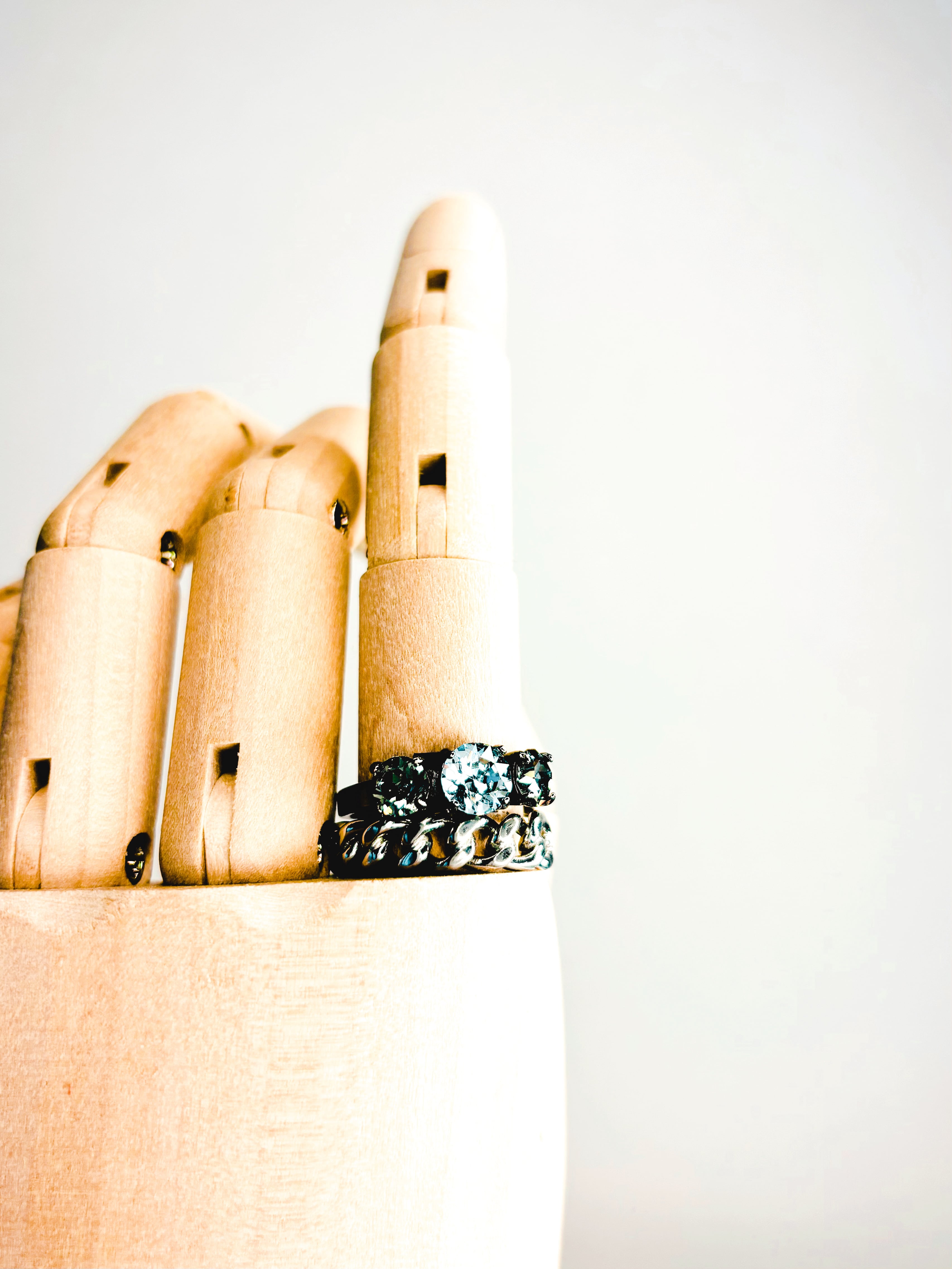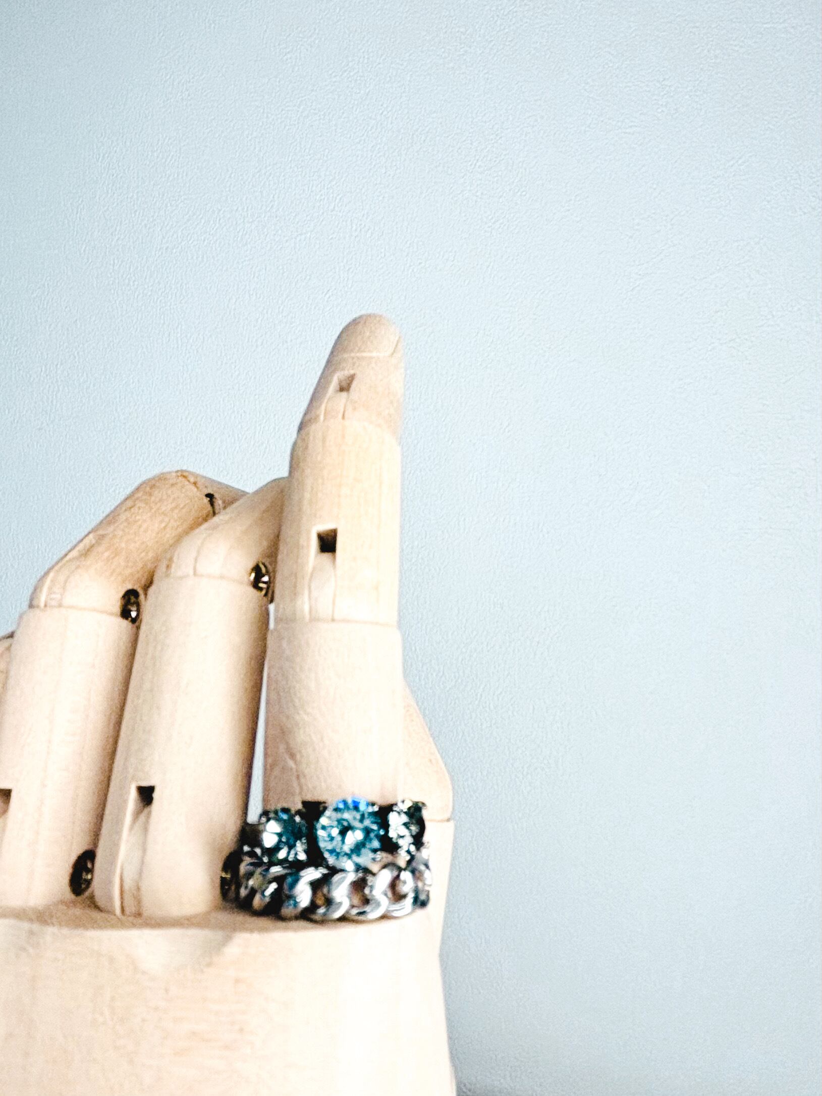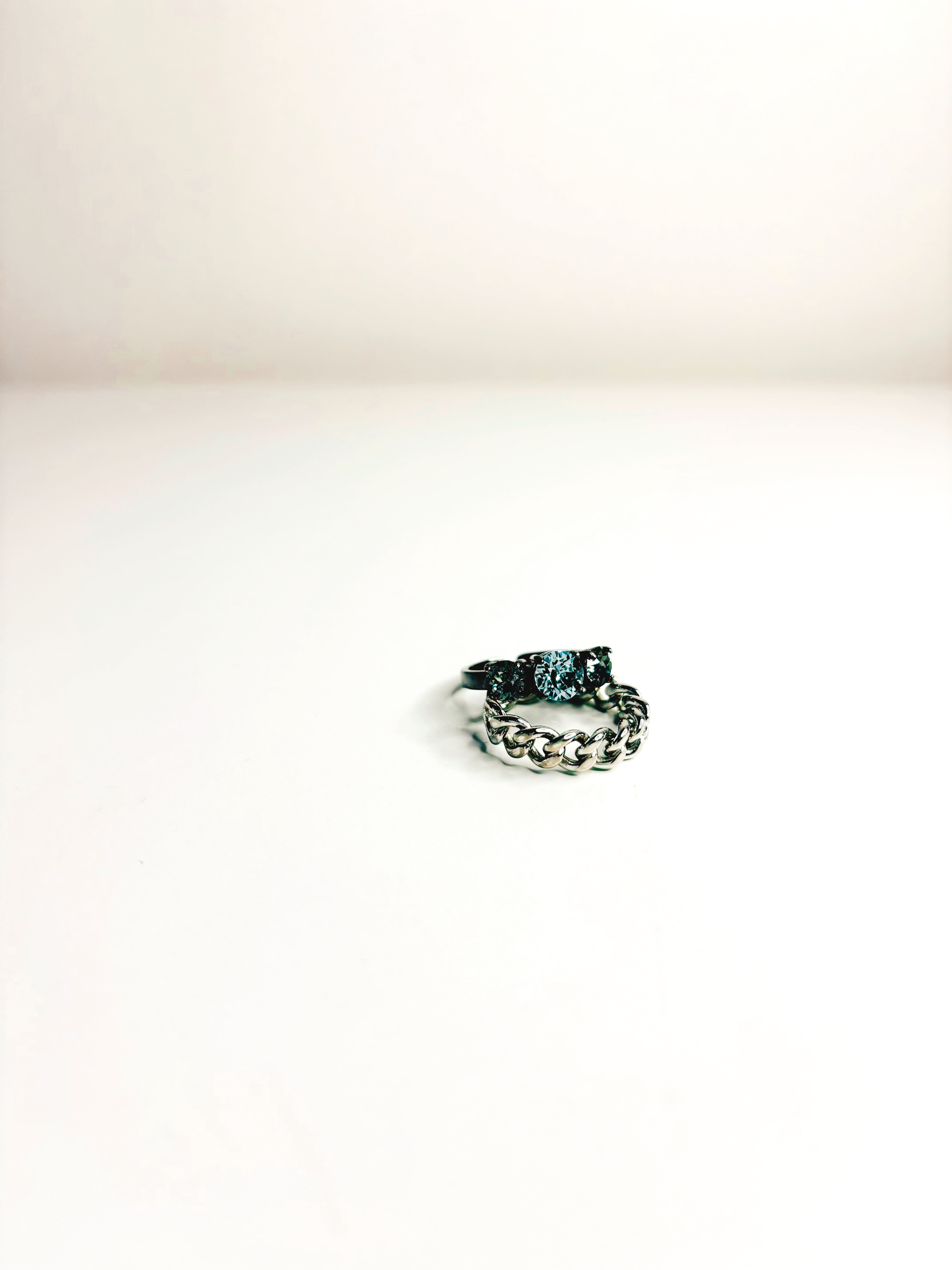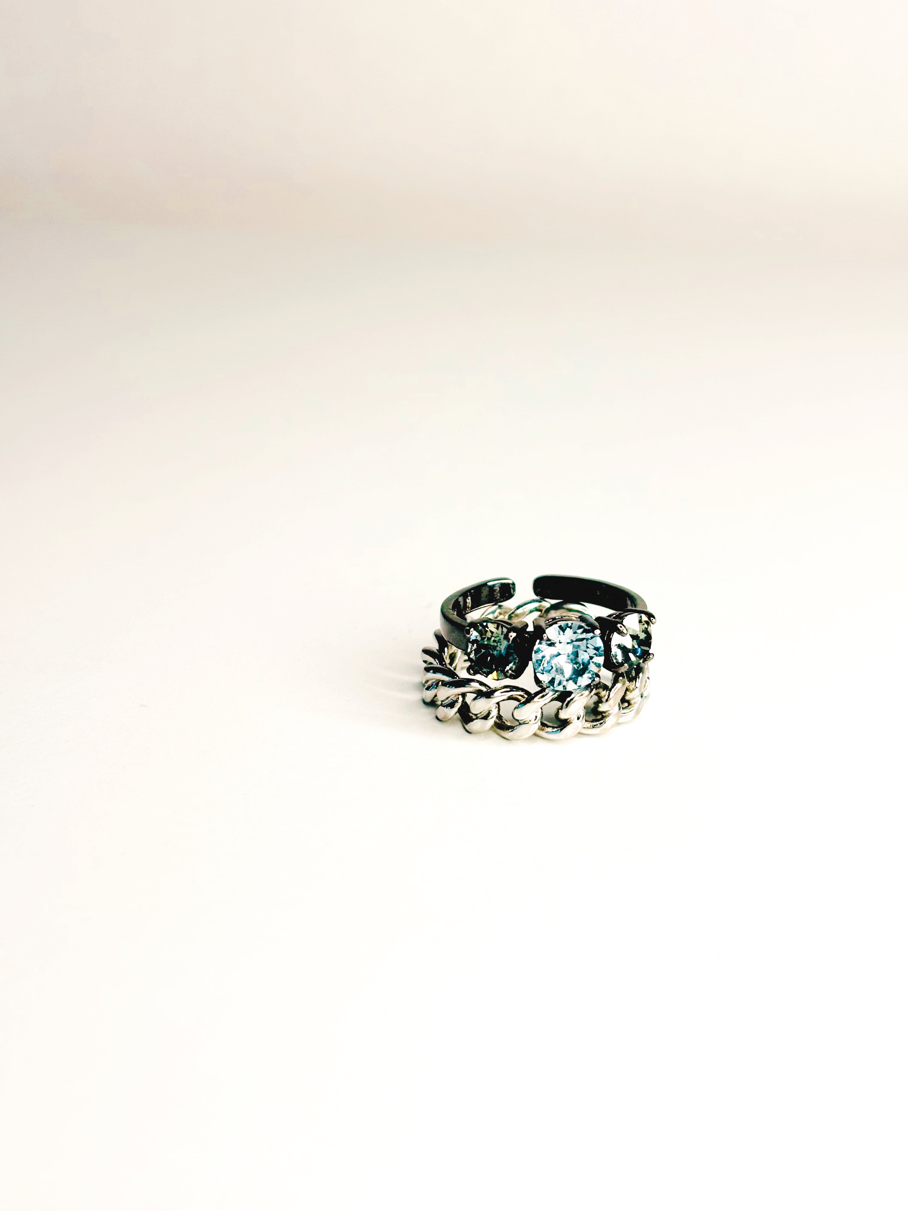 高品質なオーストリア産クリスタルを3粒施したリングとチェーンのリング、2個セットです。