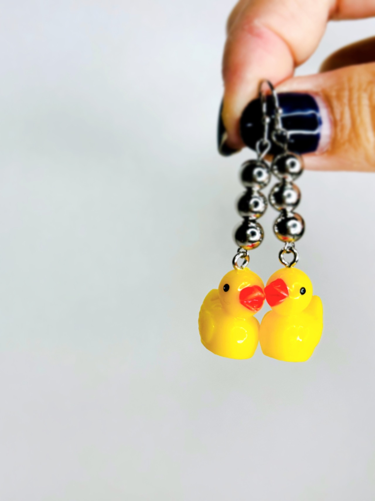 アヒルちゃんとメタルボールのとってもキュートなピアスです。