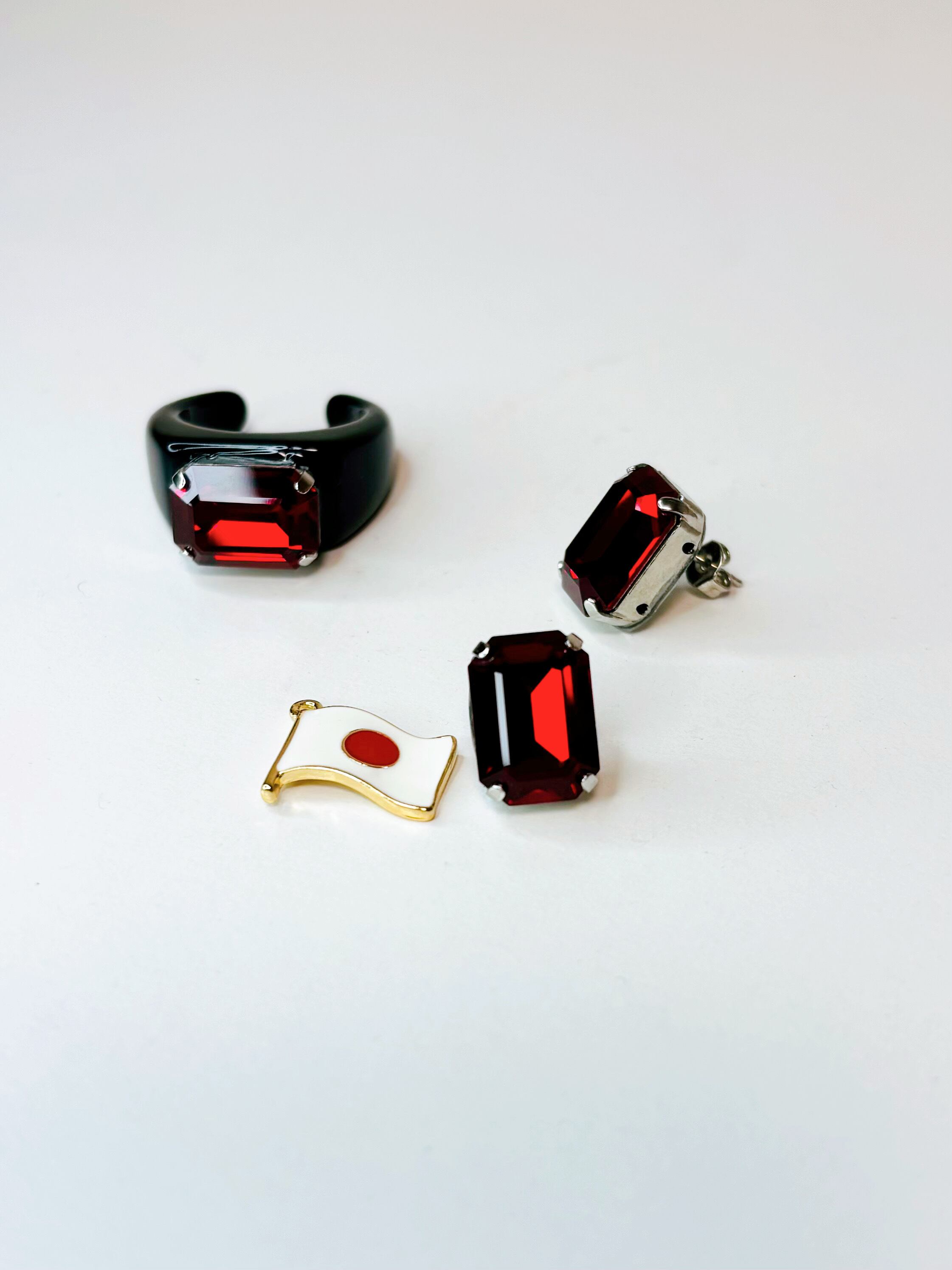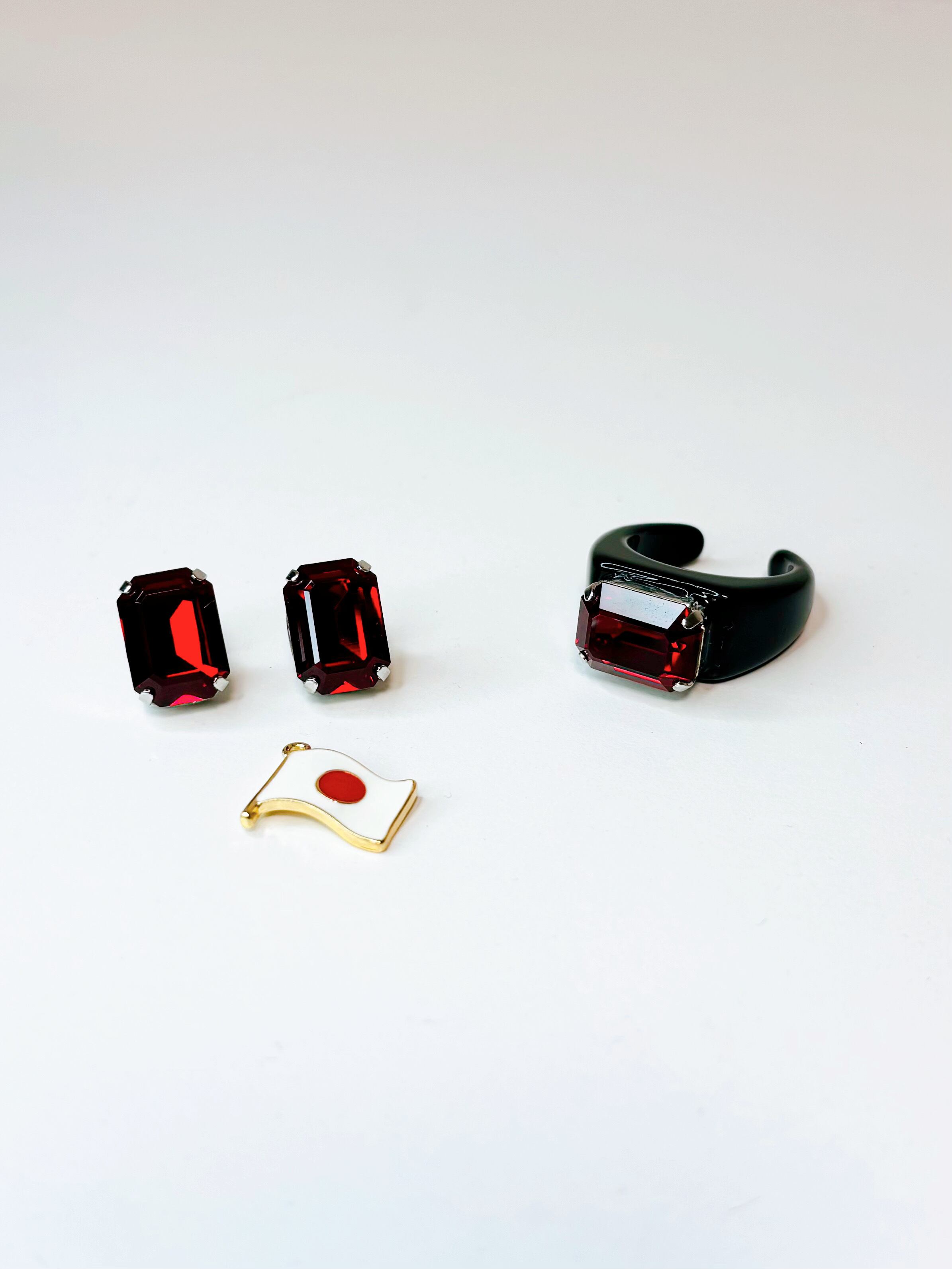 大ぶり クリスタル ビジュー リング キュート ゴージャス ボリューム ボリューミー 春 夏 秋 冬 お出かけ カジュアル フォーマル パーティー プチギフト バースデー バースデープレゼント クリスマス クリスマスギフト ホリデーシーズン クリスマスプレゼント 金属アレルギー 赤 日の丸 オリンピック応援