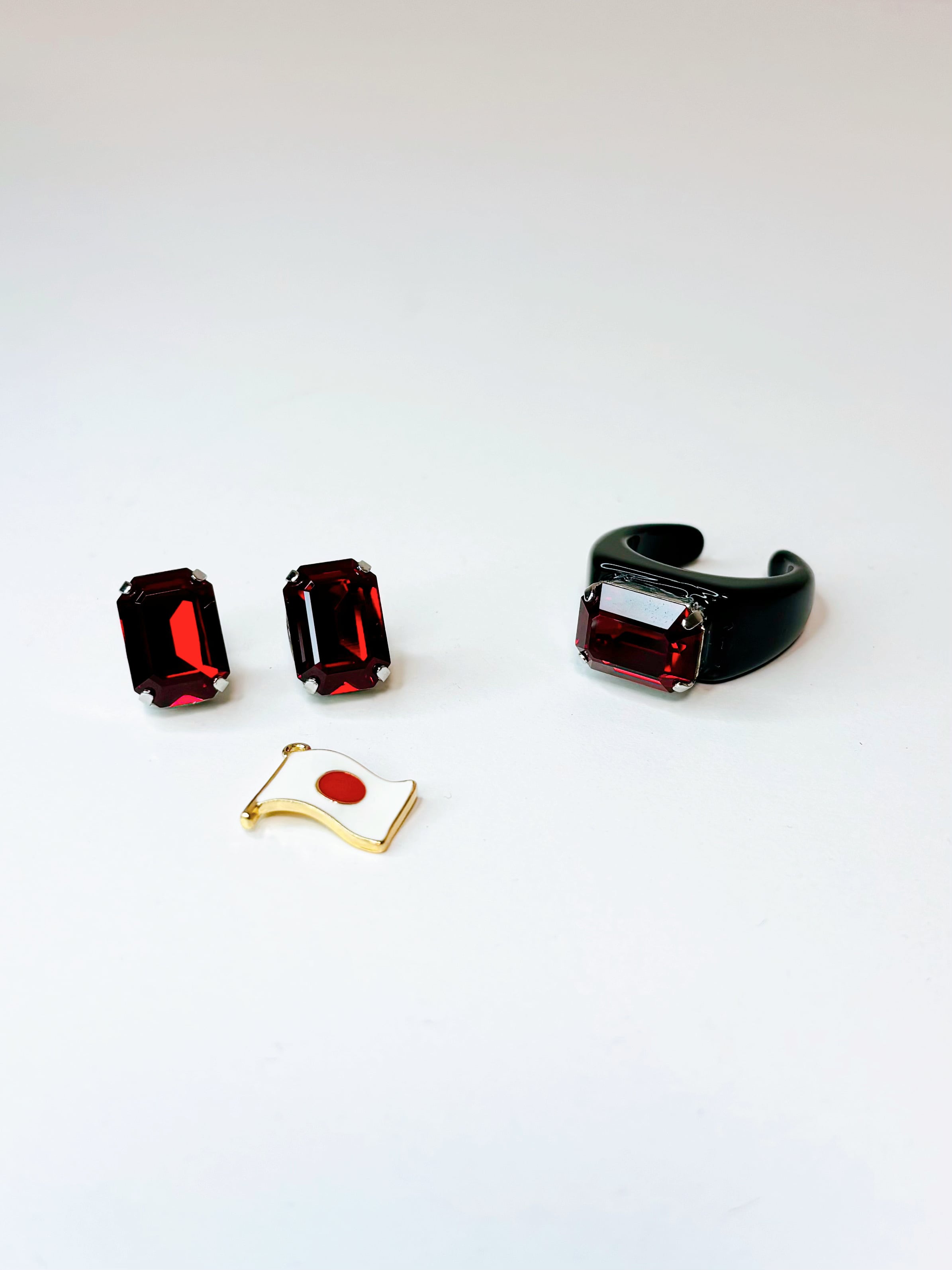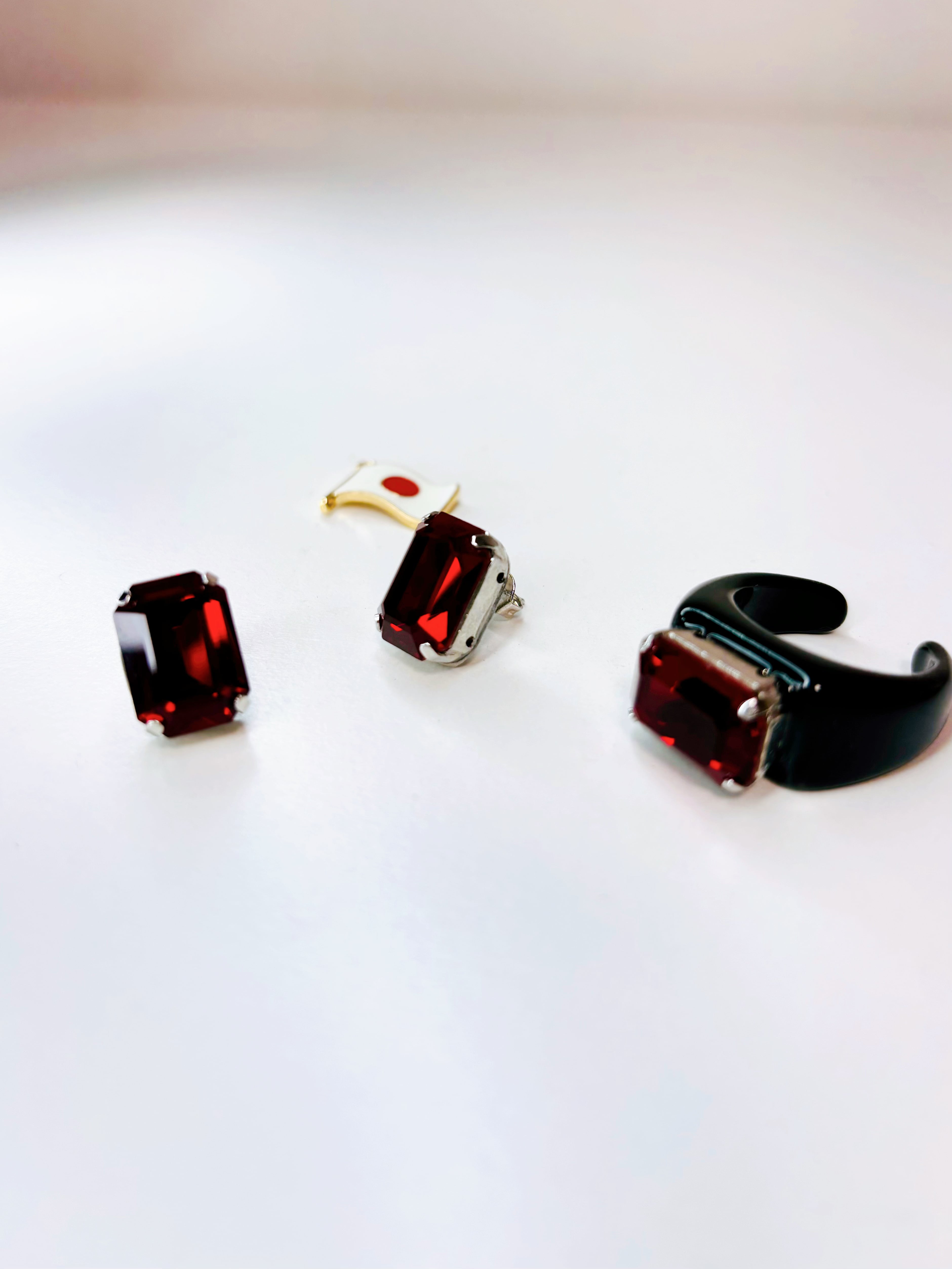 真っ赤な大粒クリスタルを贅沢にあしらったピアスです。