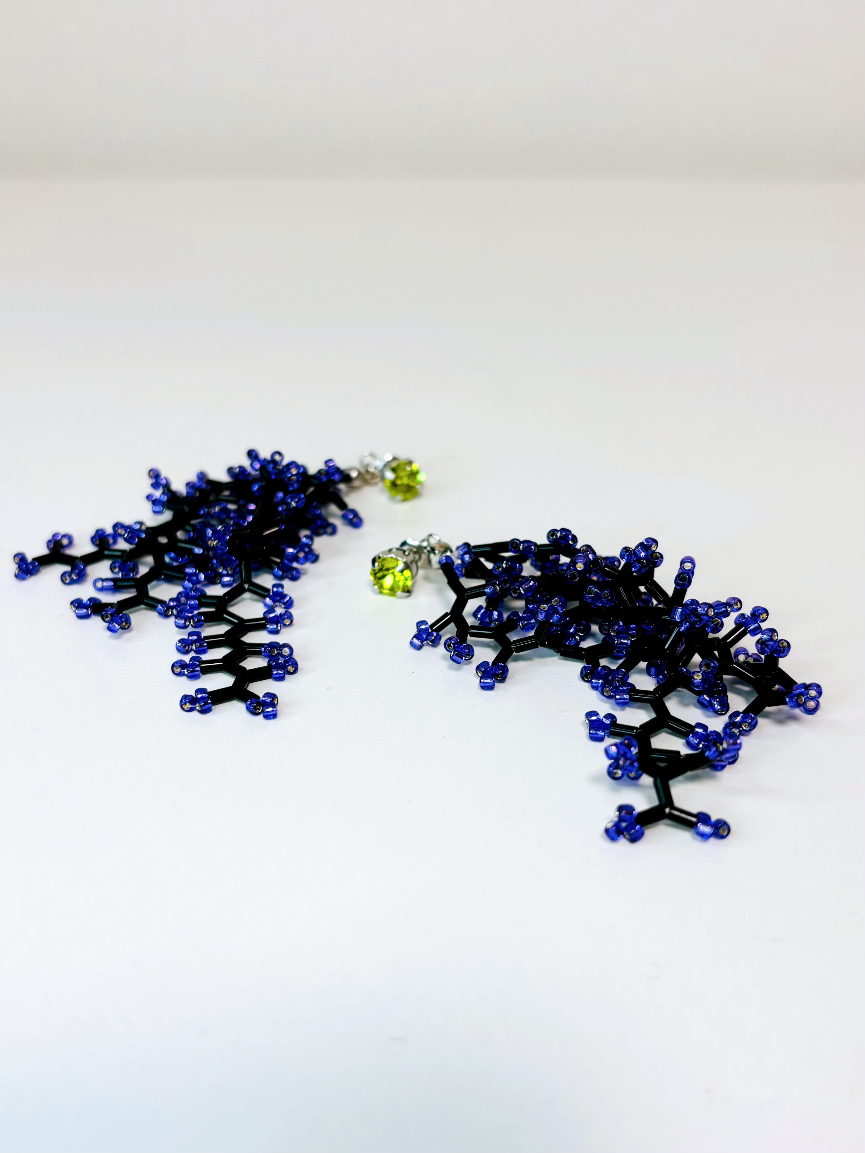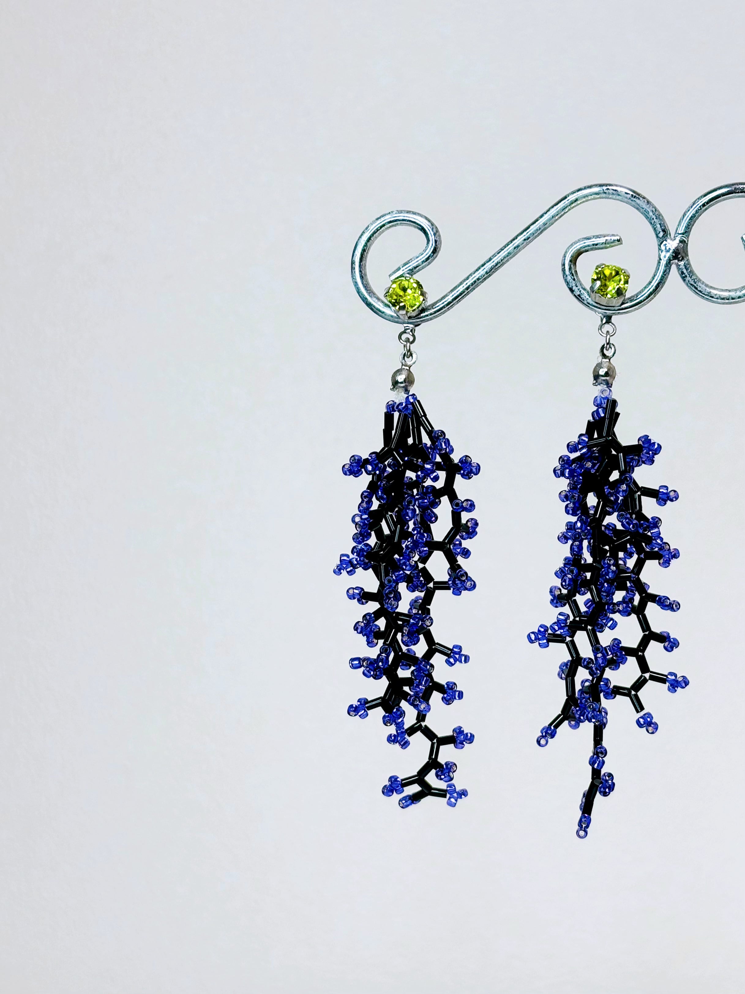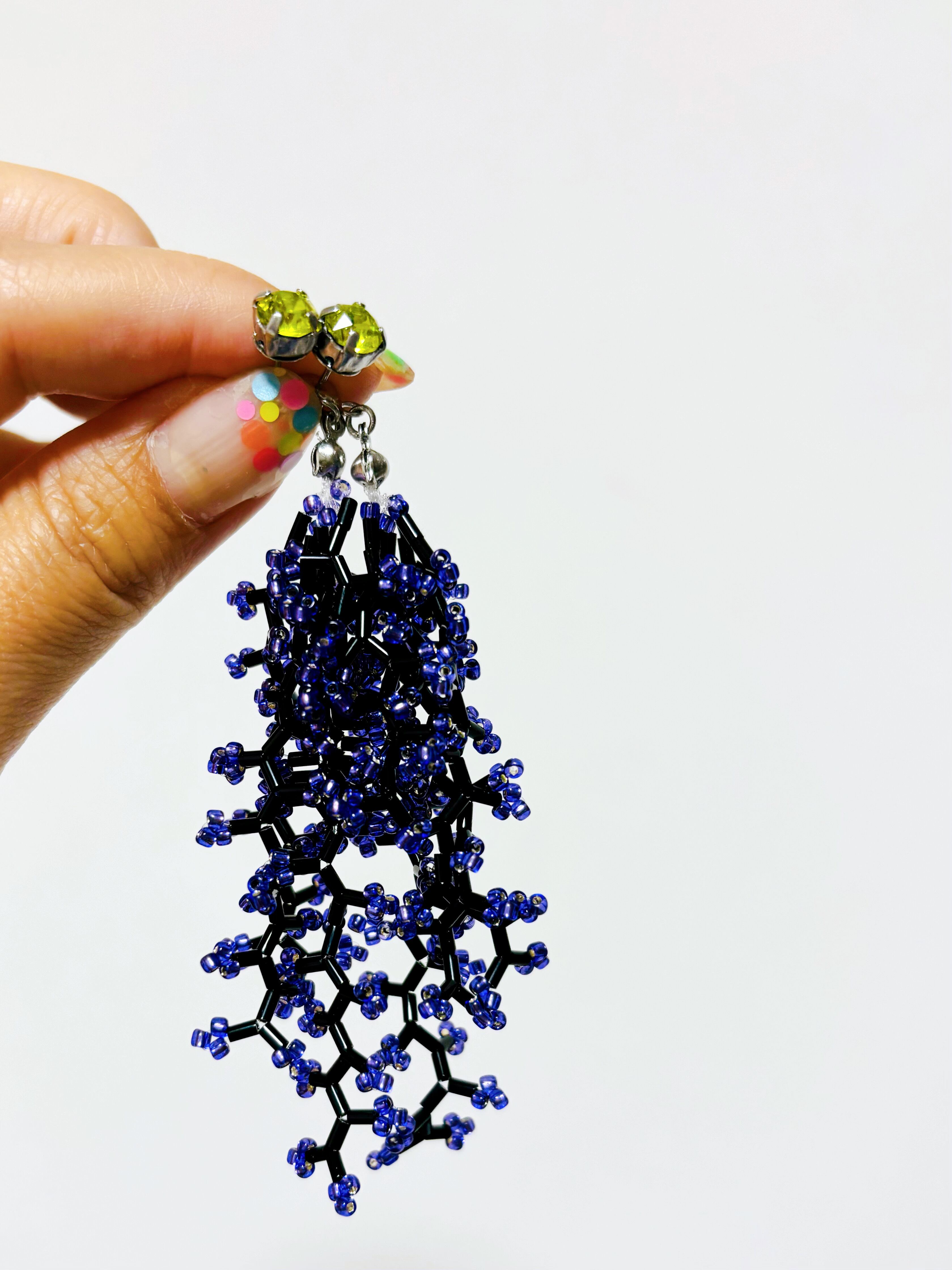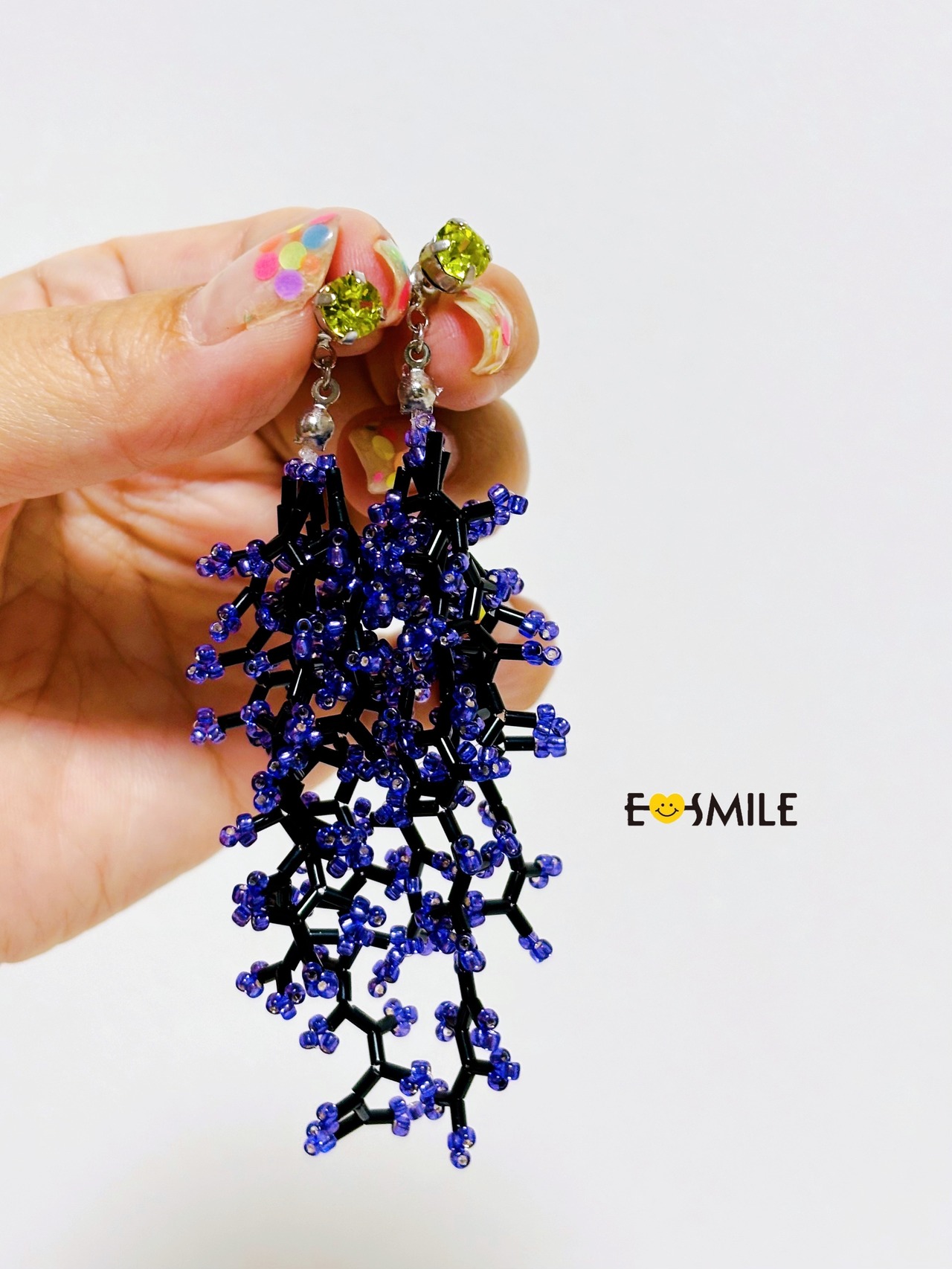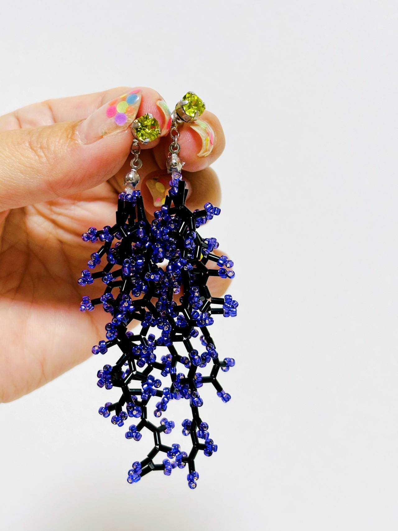 ビーズ部はじゃらじゃらと繋ぎ合わせ、ゴージャスでキュートなピアスに仕上がりました。