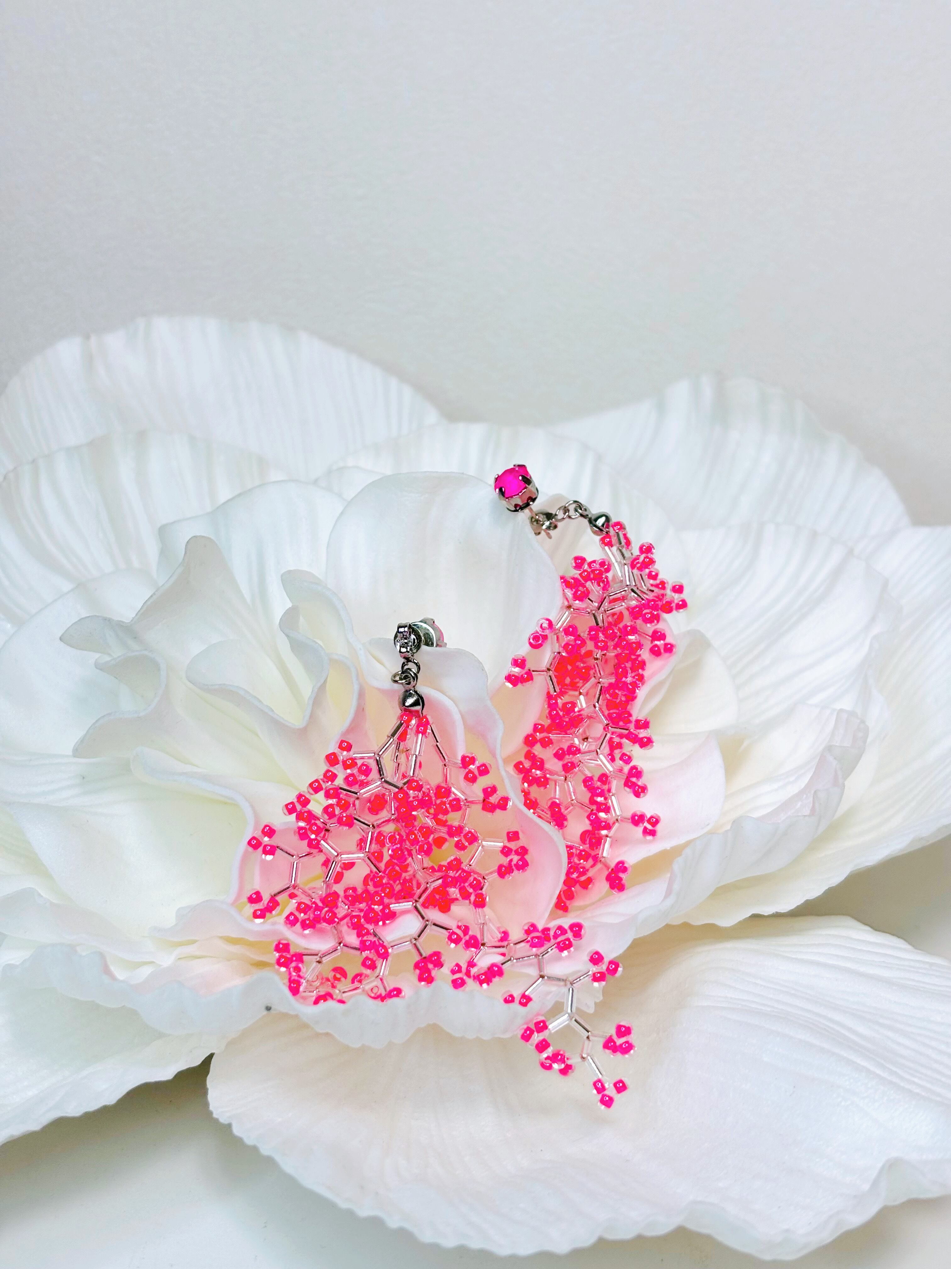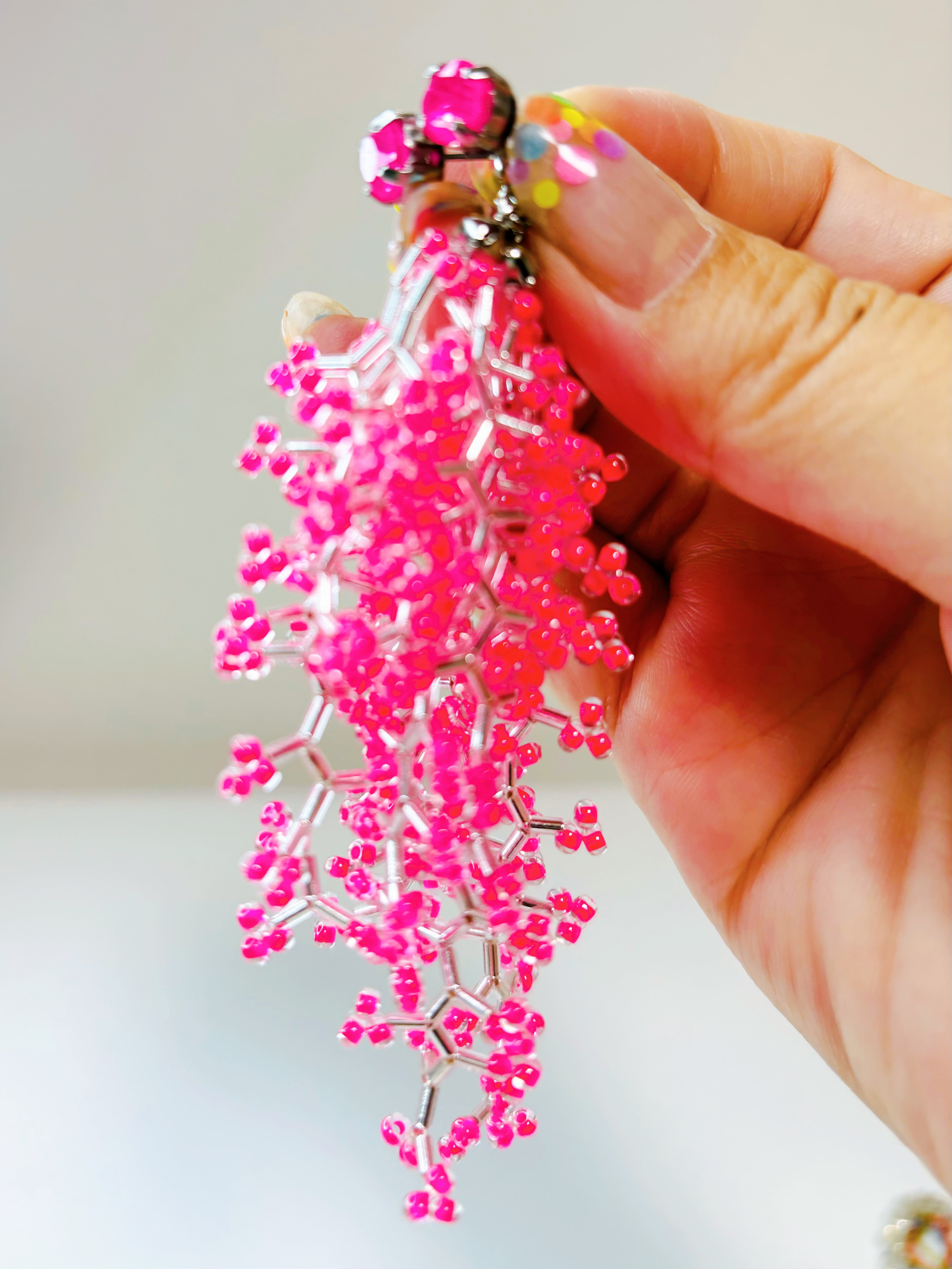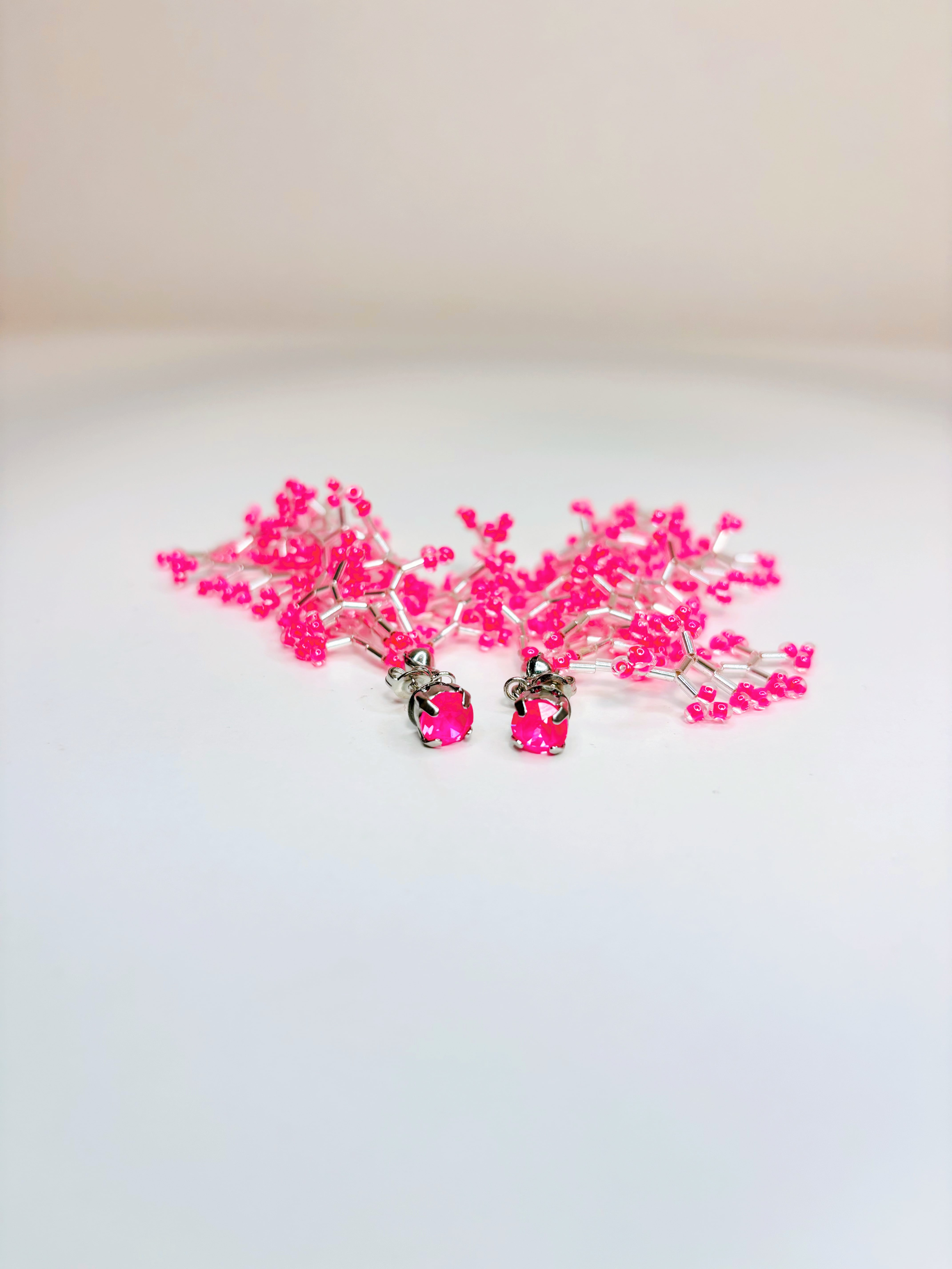 クリスタルとビーズのじゃらじゃらピアス(PINK×PINK)