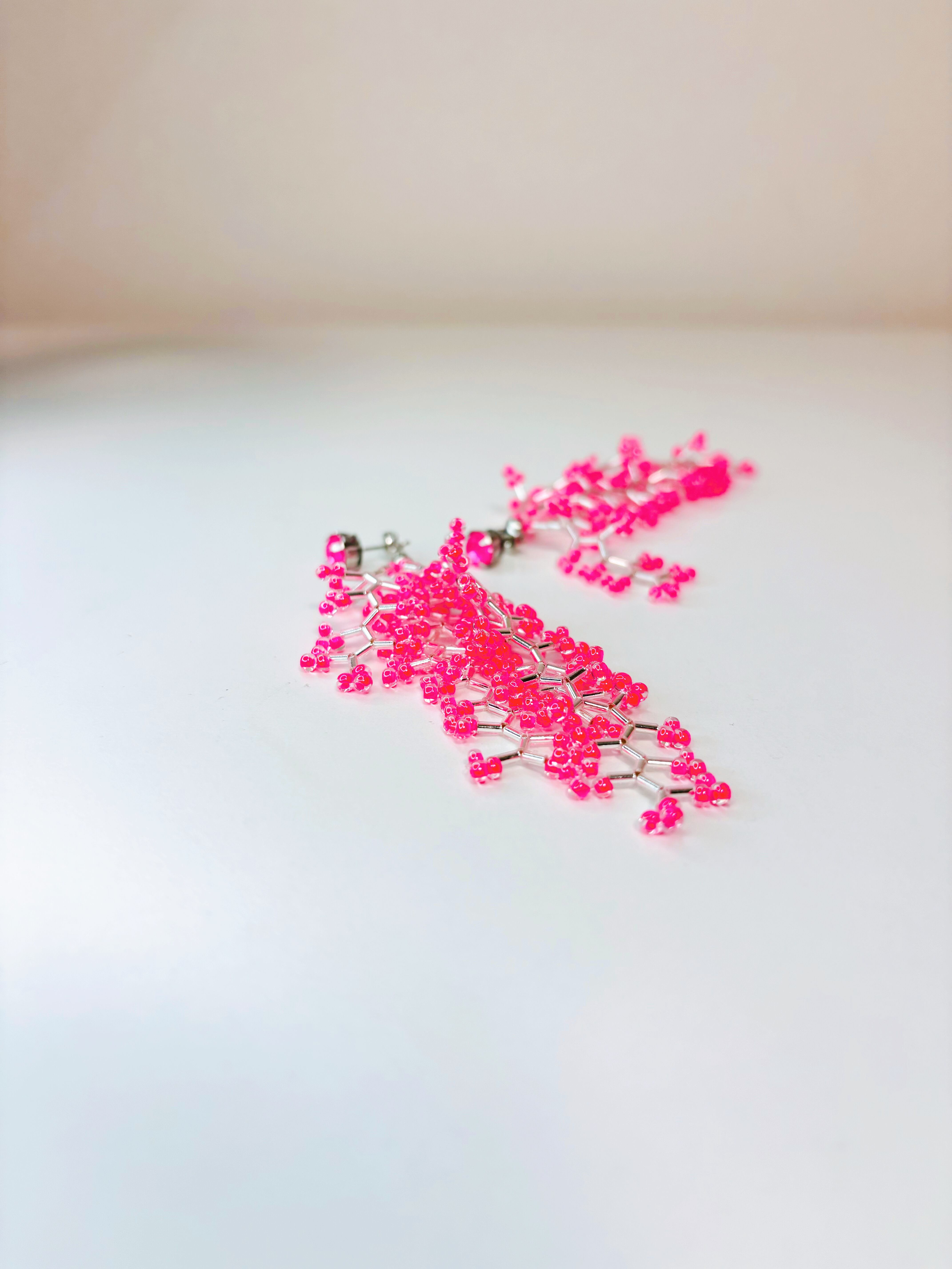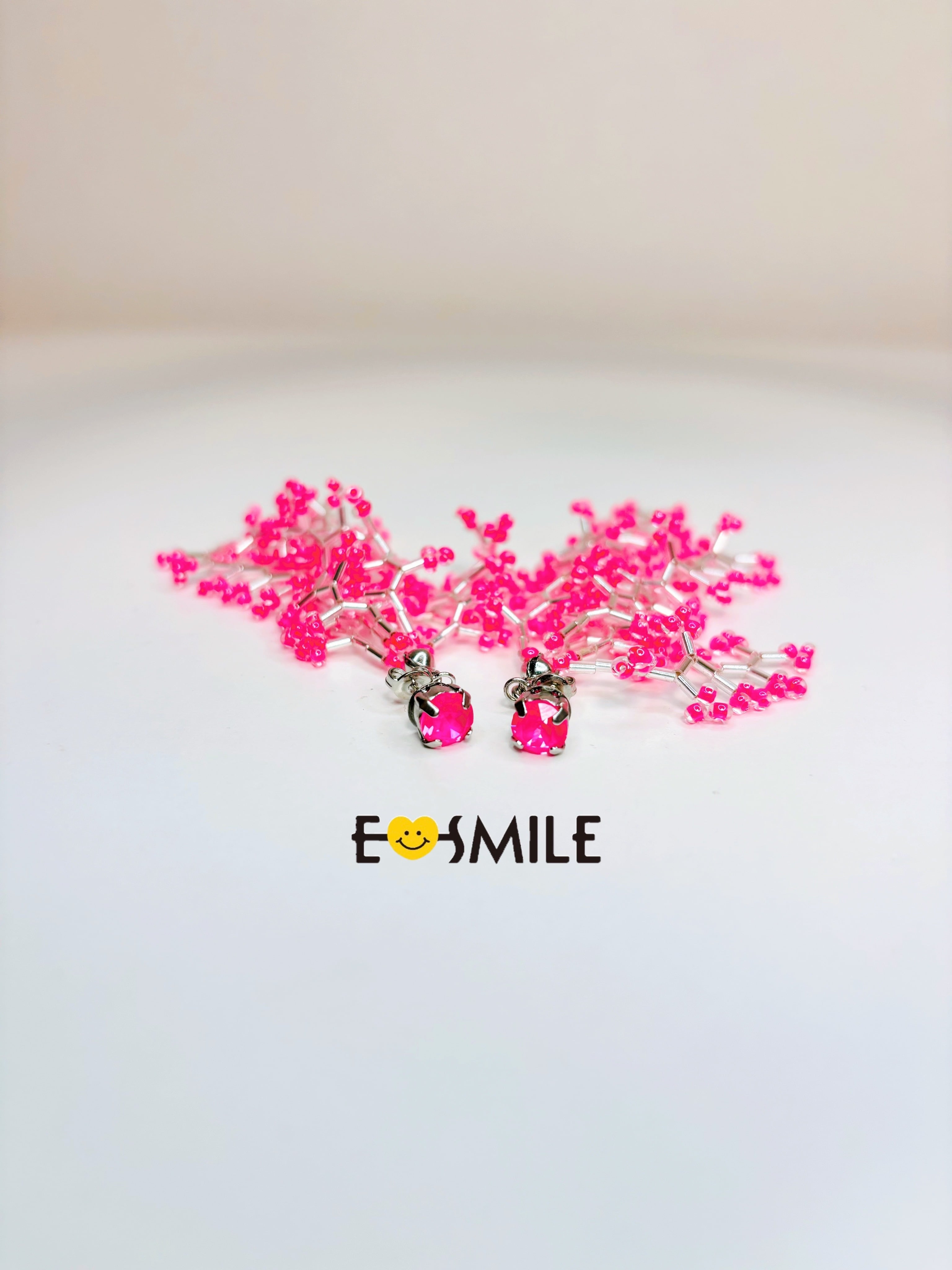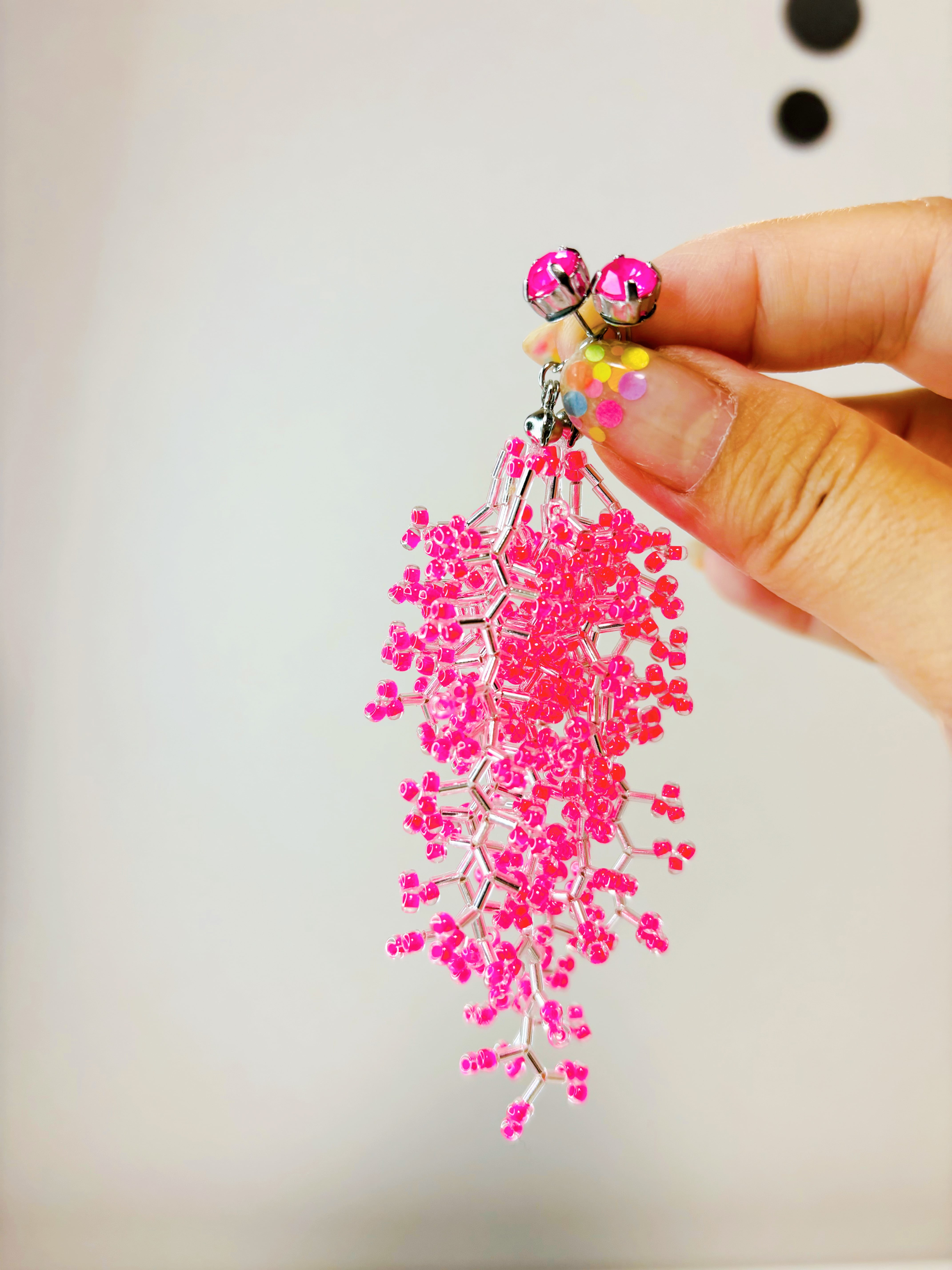 クリスタルとビーズのじゃらじゃらピアス(PINK×PINK)