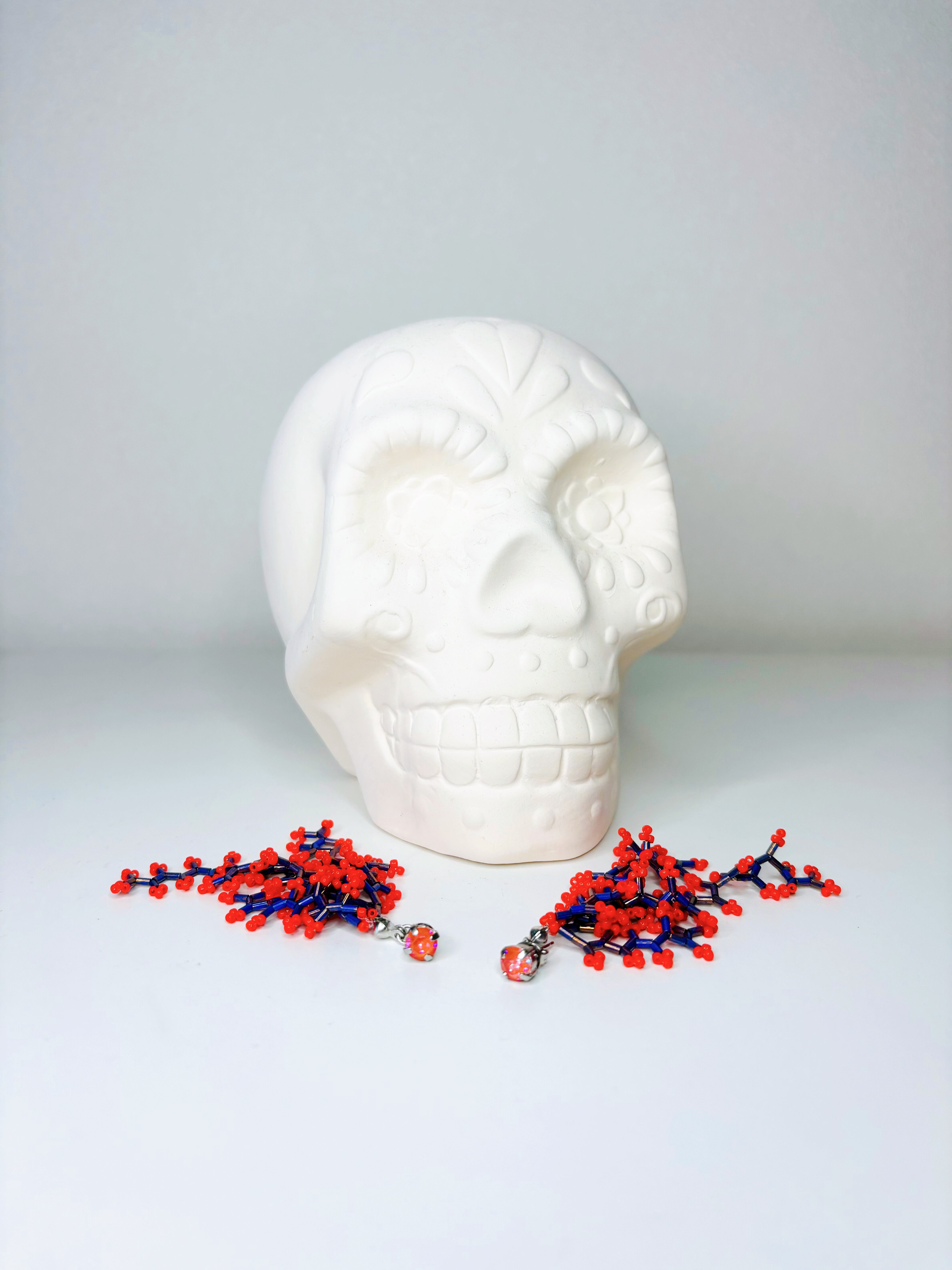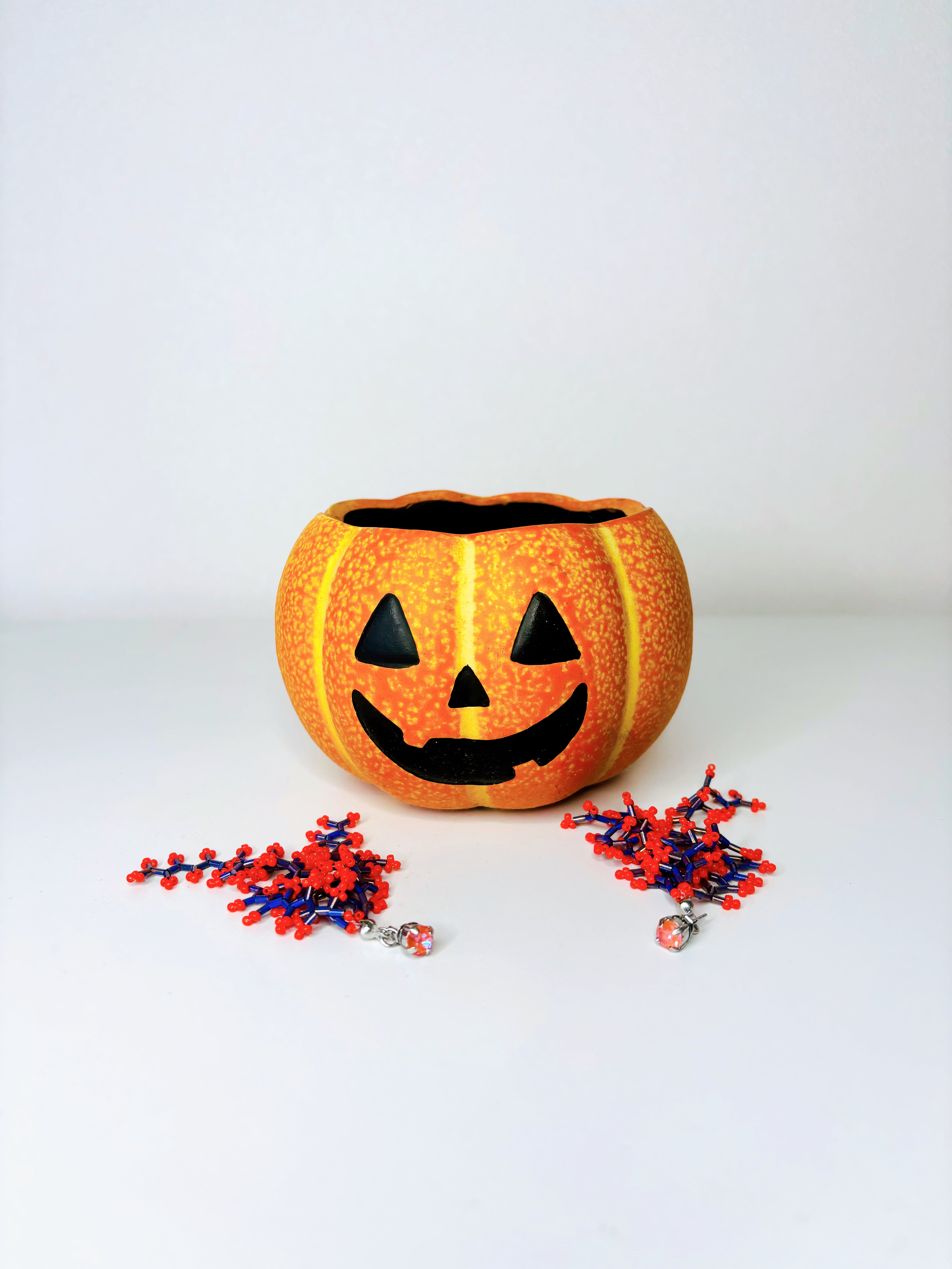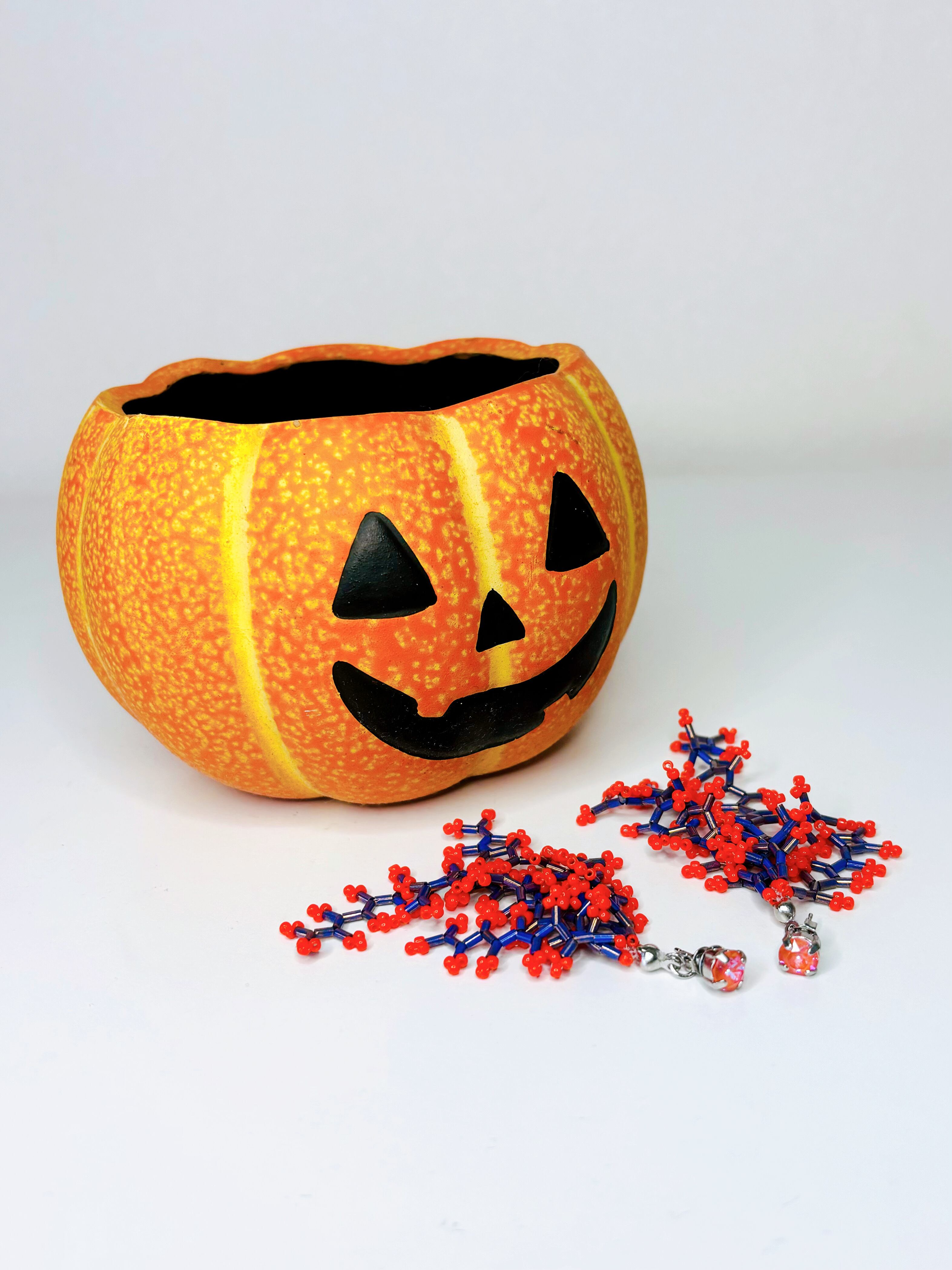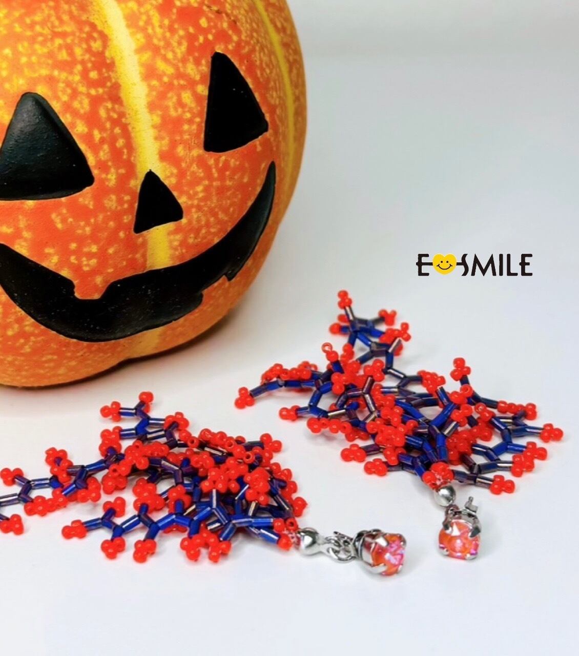 クリスタルとビーズのじゃらじゃらピアス(Halloween)
