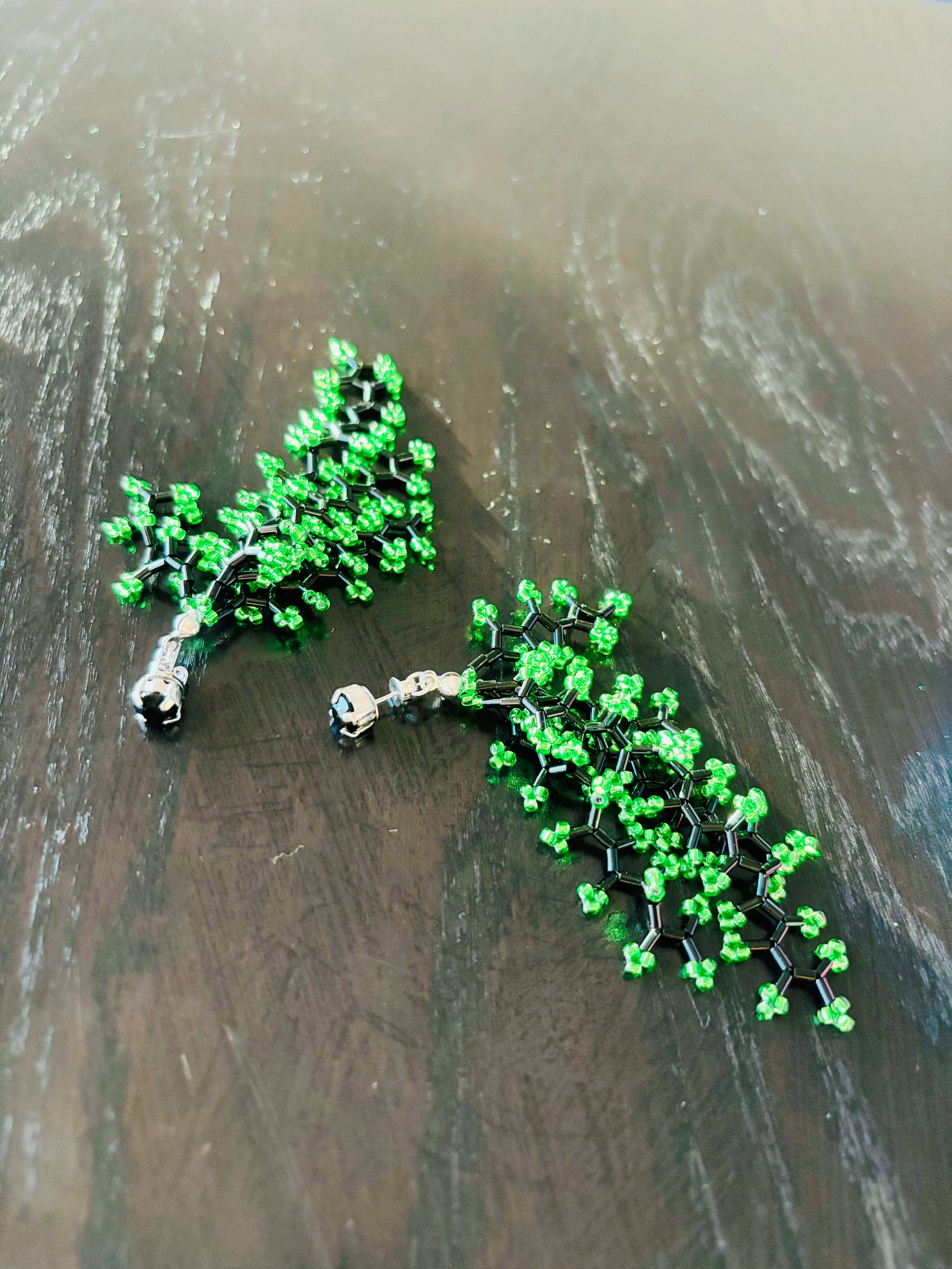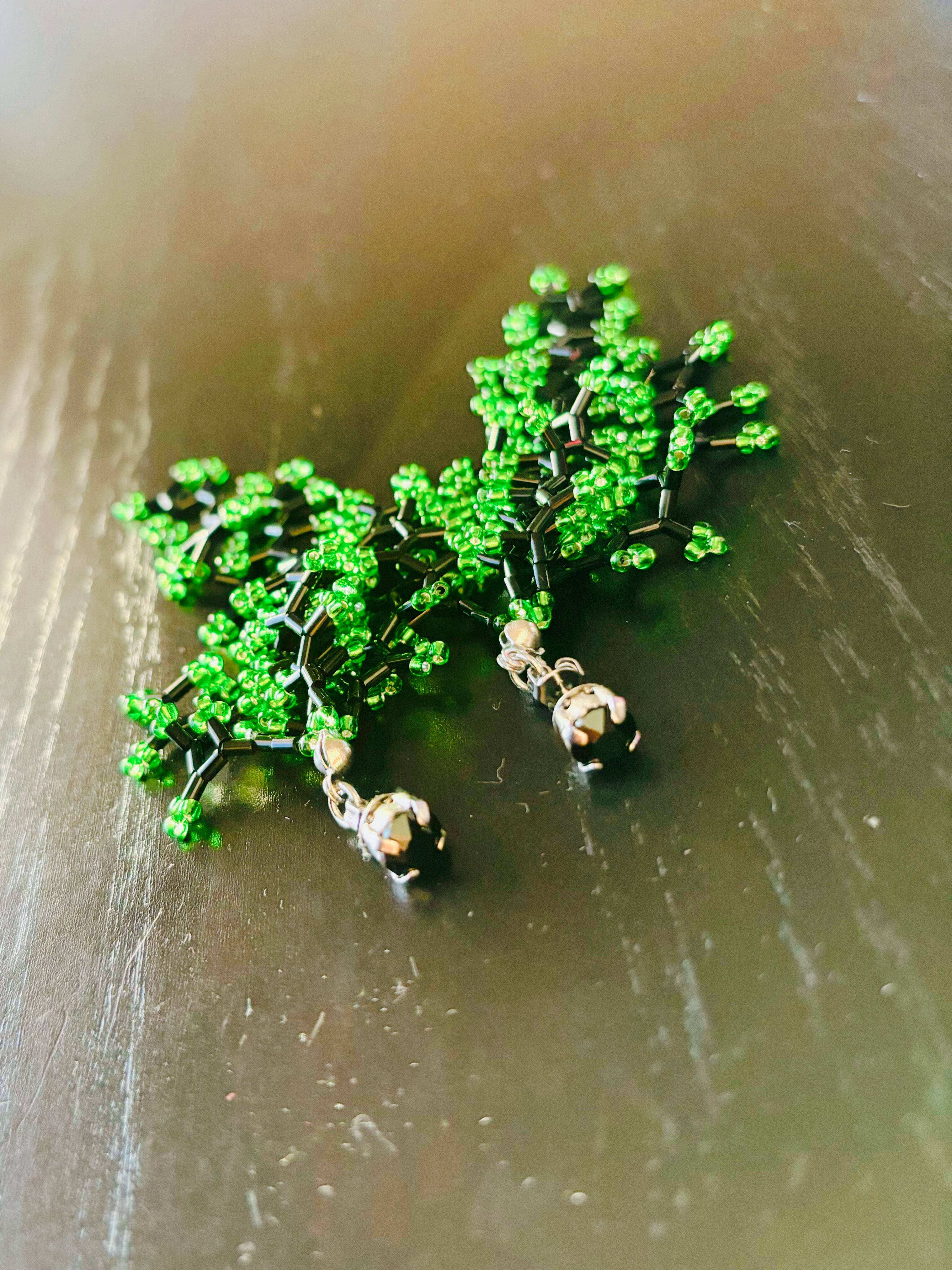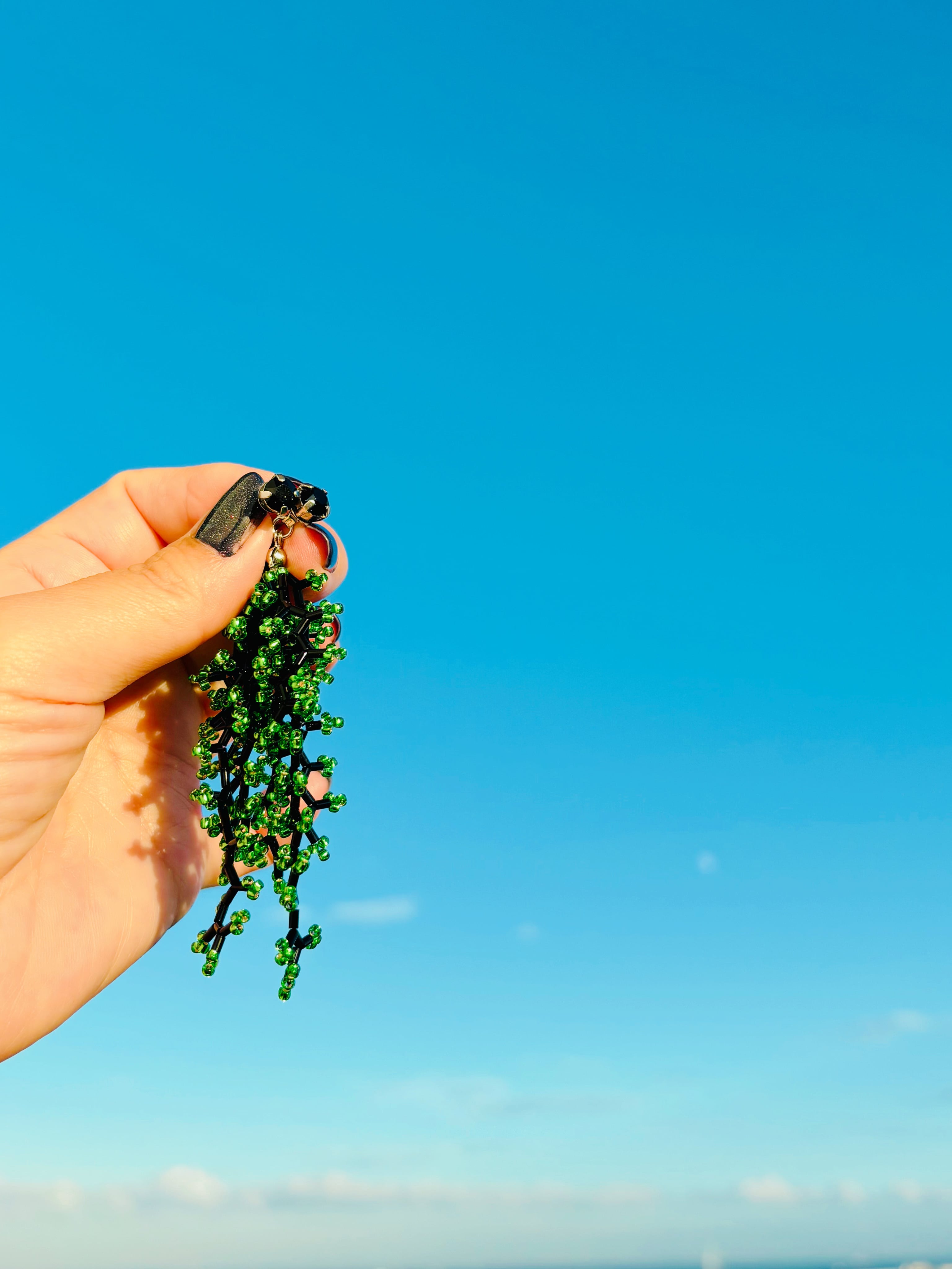クリスタルとビーズのじゃらじゃらピアス(BLACK×GREEN)