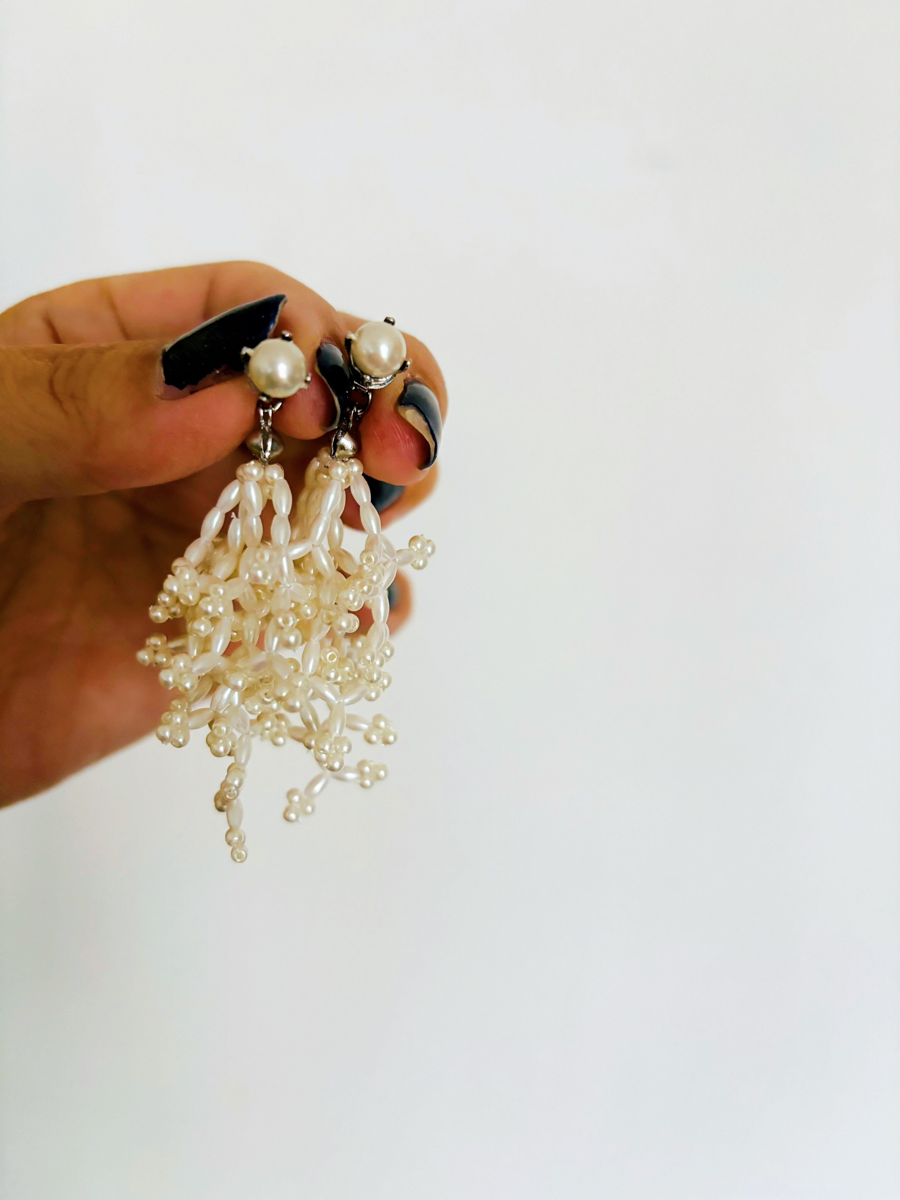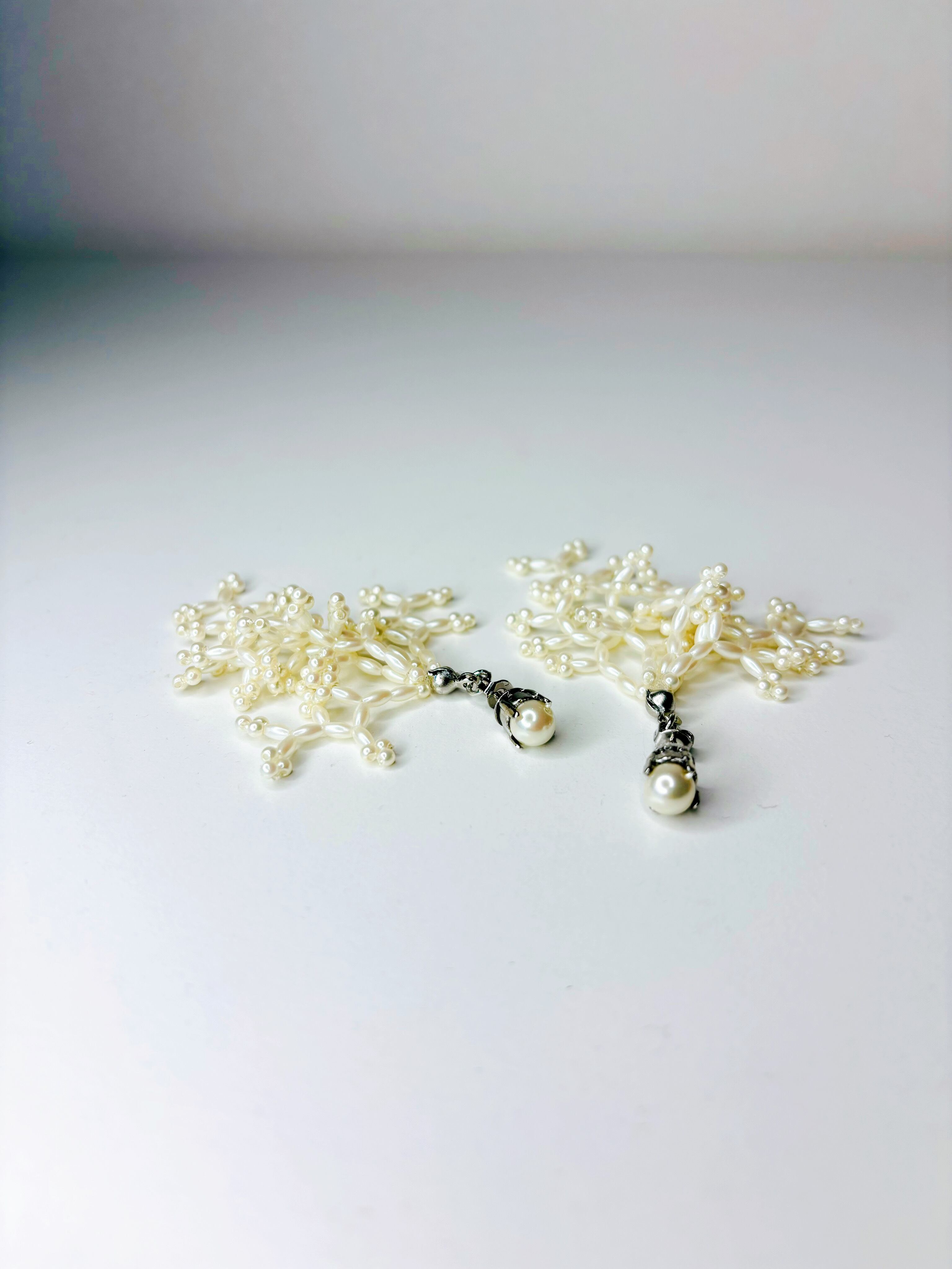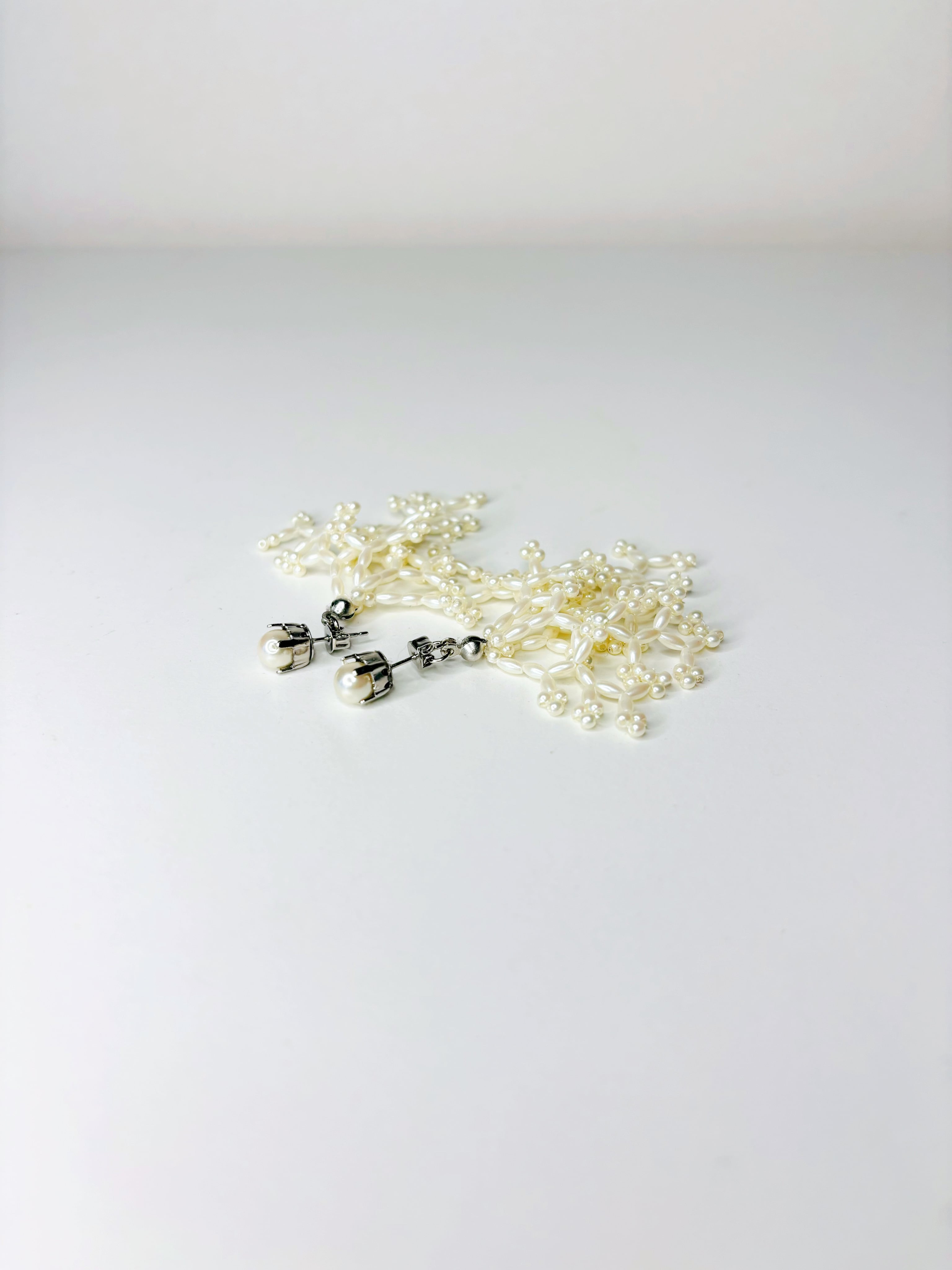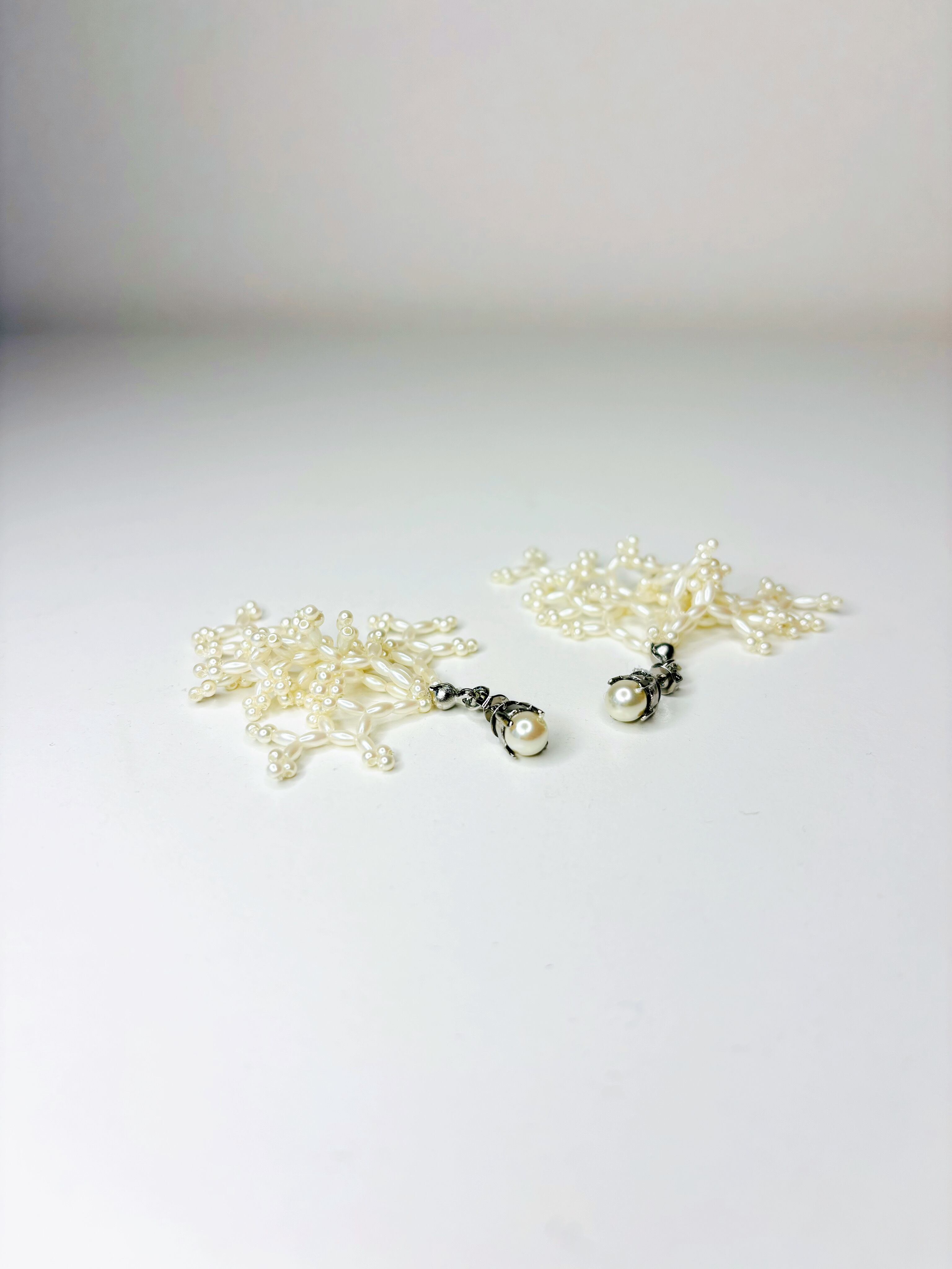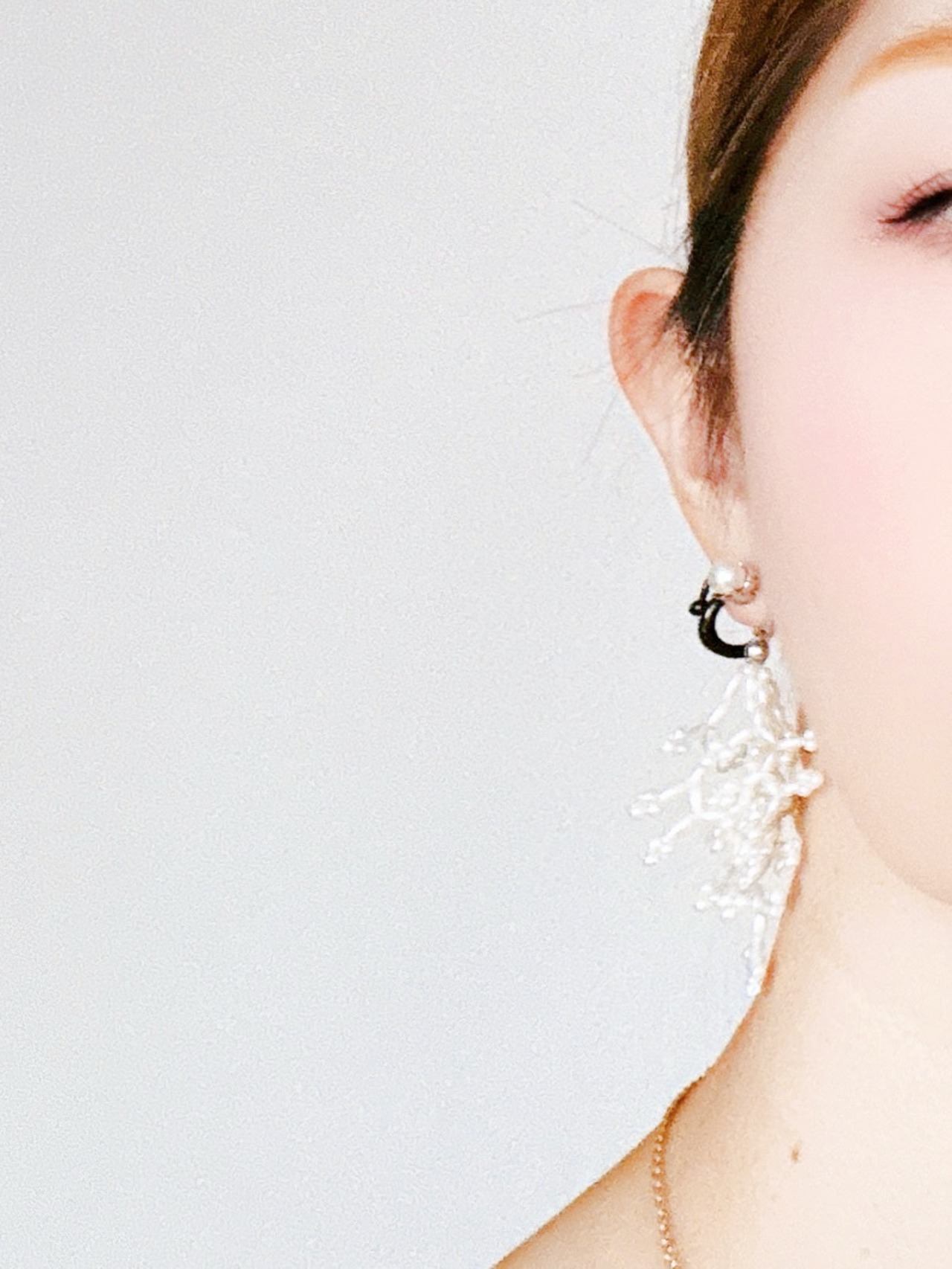 ピアスのキャッチには、パールビーズをじゃらじゃらさせました。