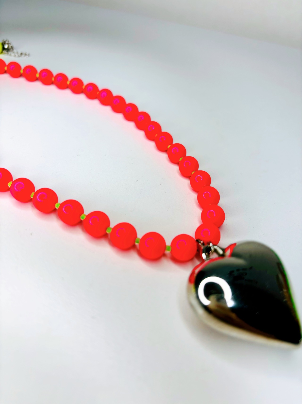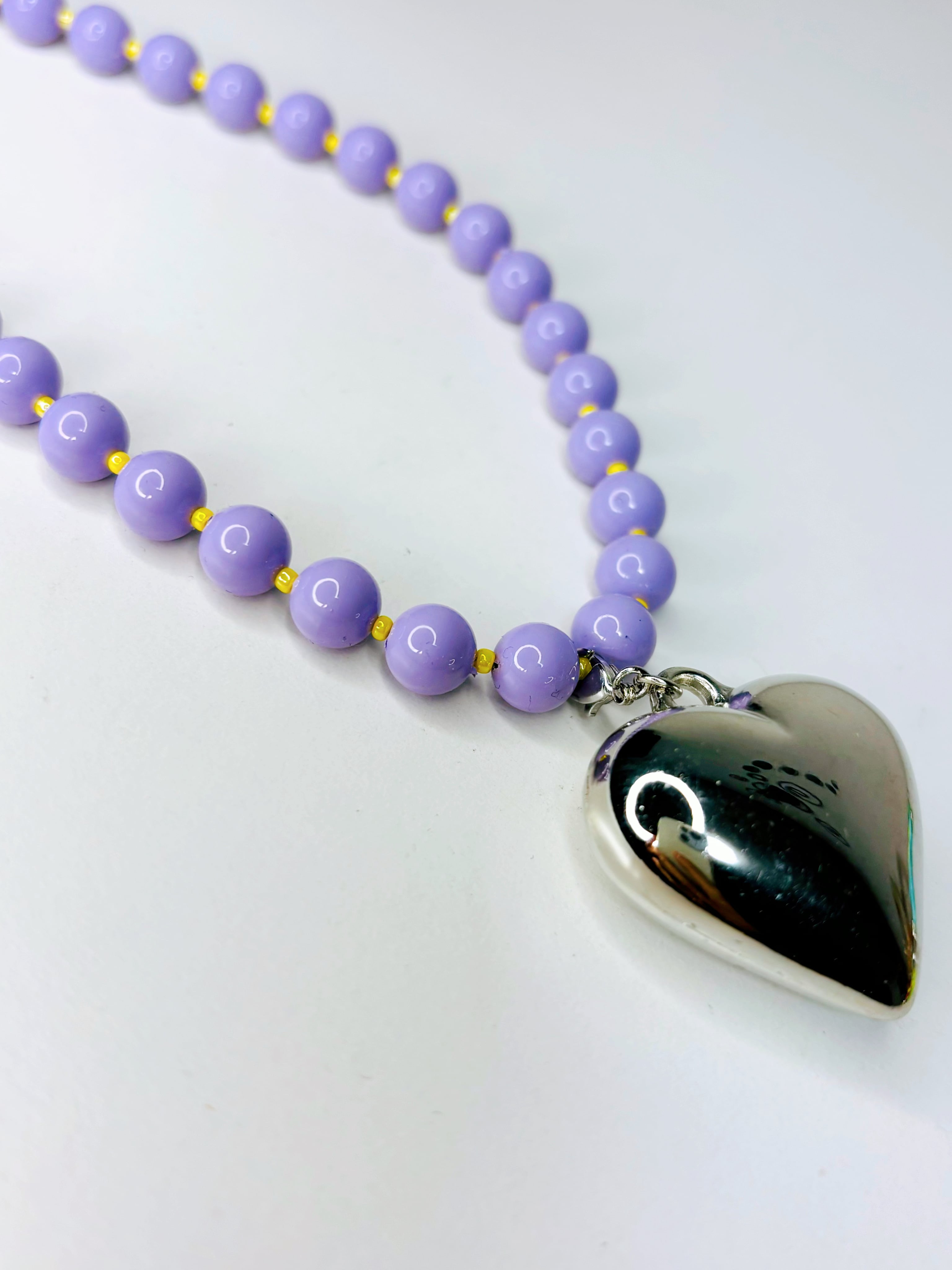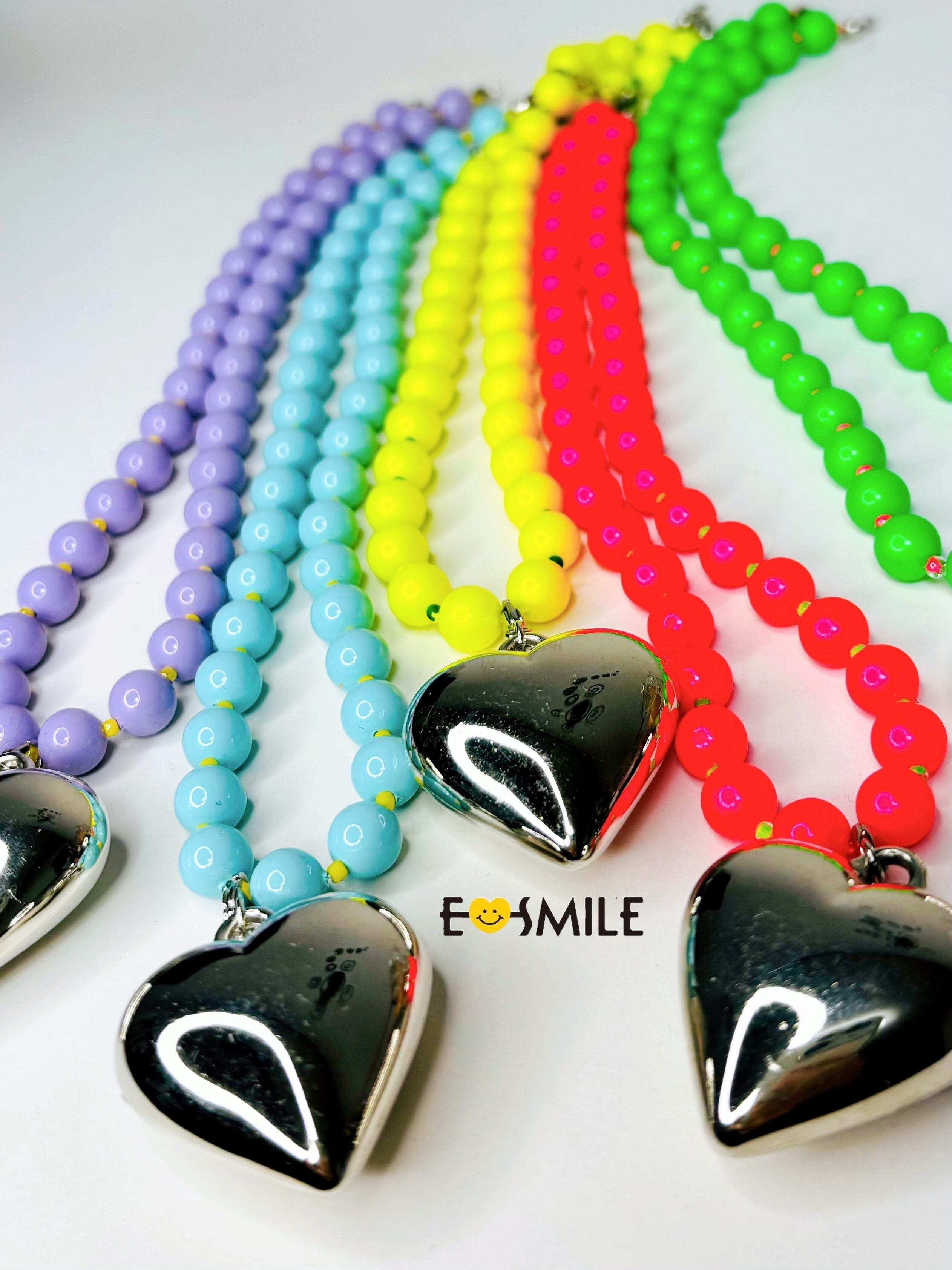 カラーボールにシルバーハートのチャームがとってもキュートなネックレスです
