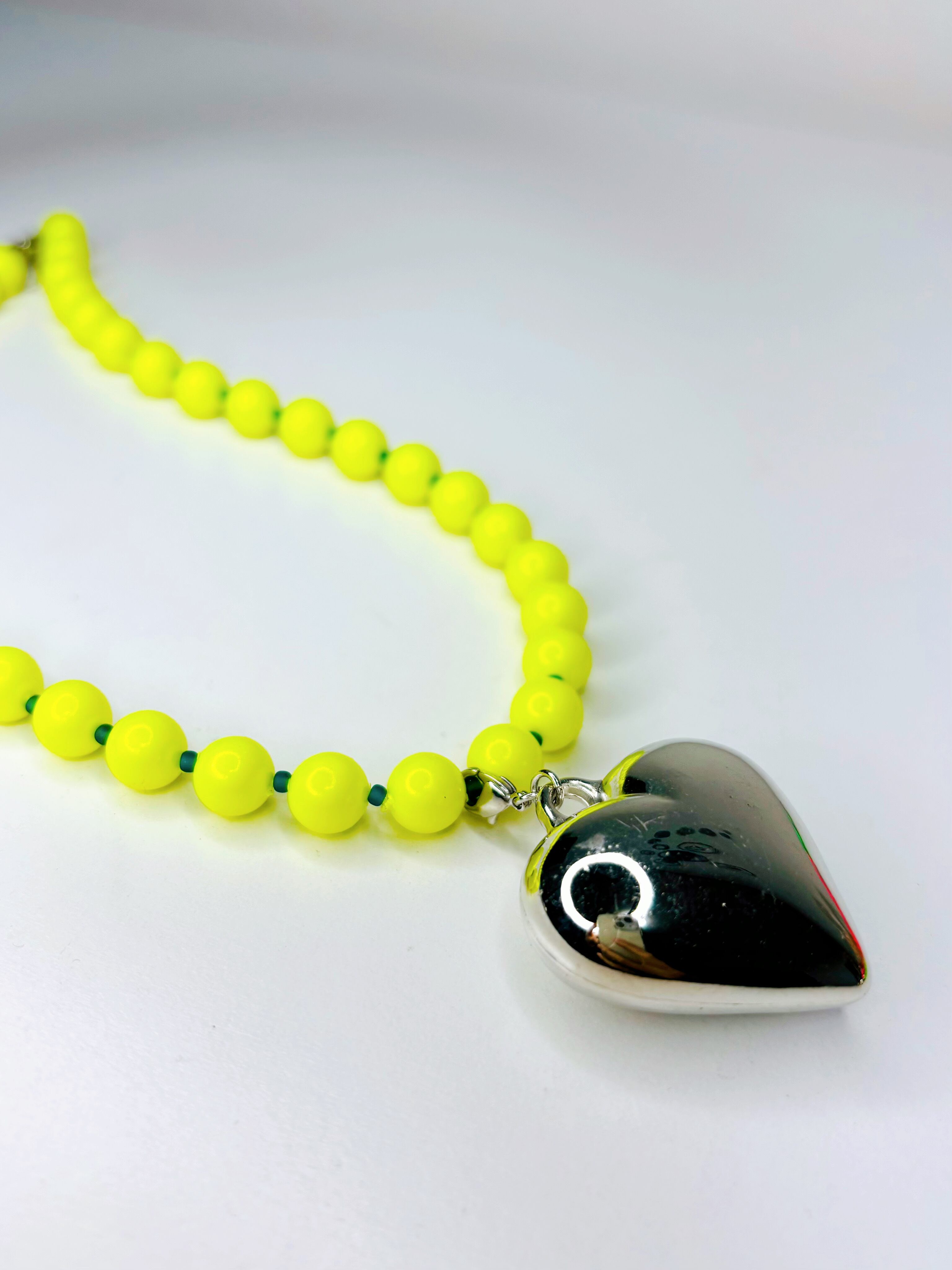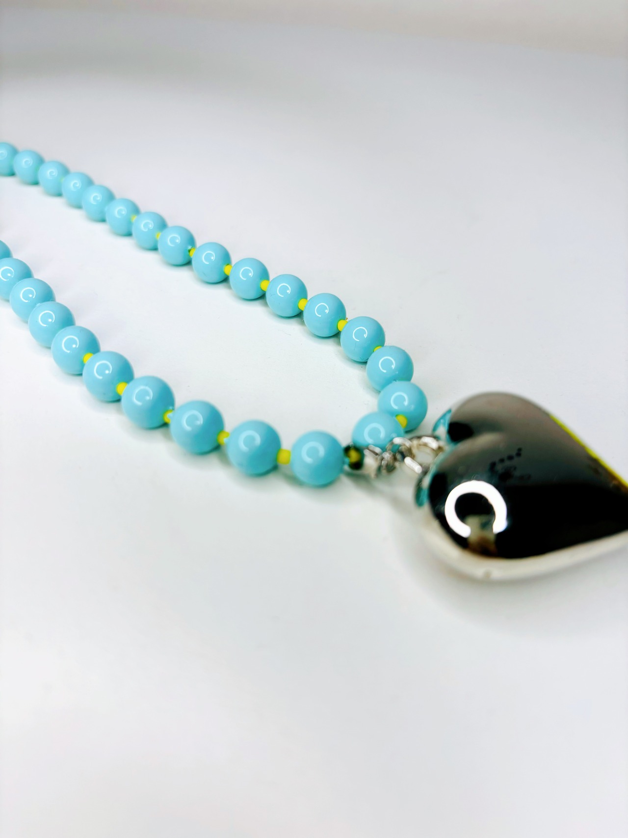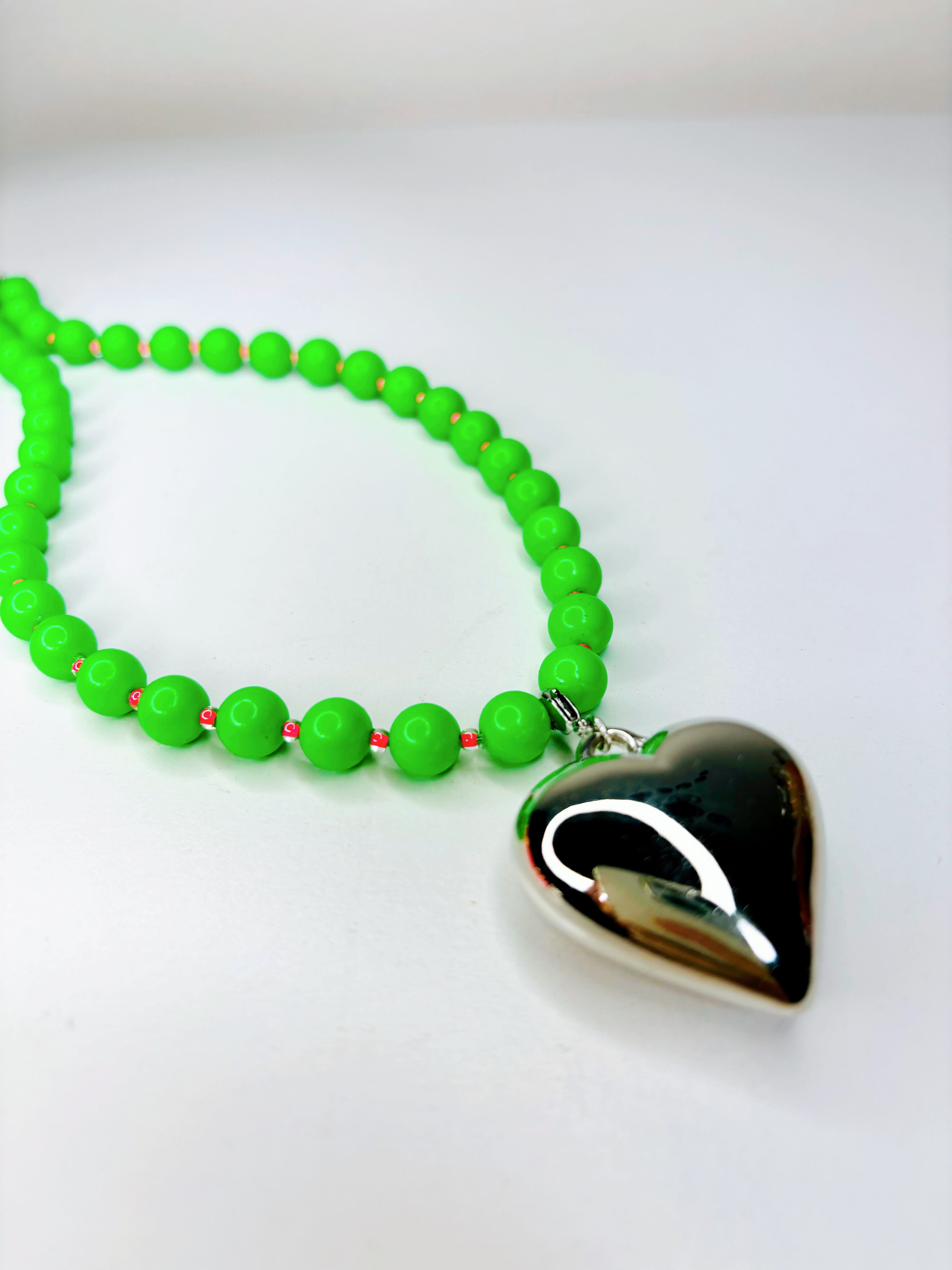 カラーボールにシルバーハートのチャームがとってもキュートなネックレスです