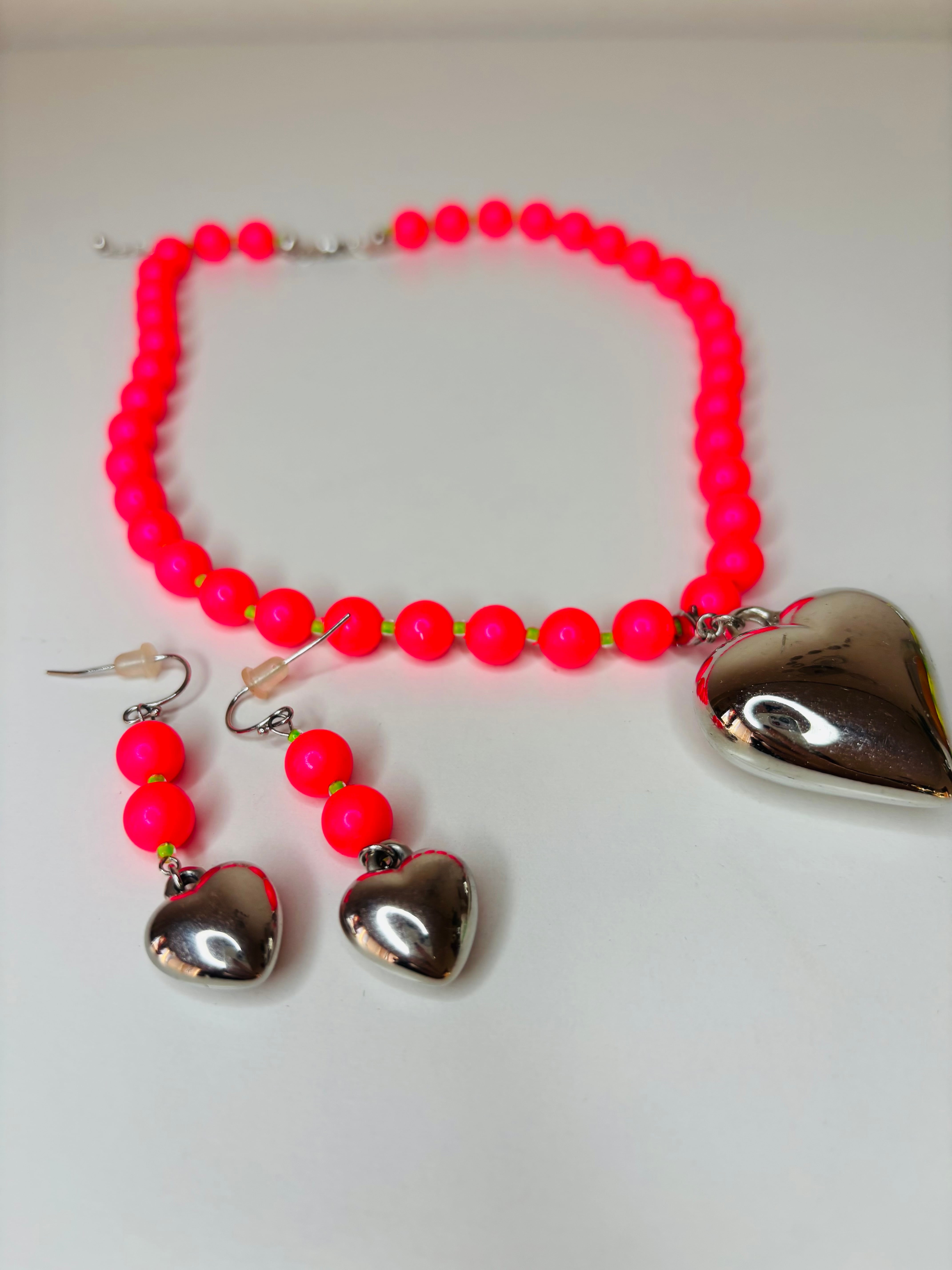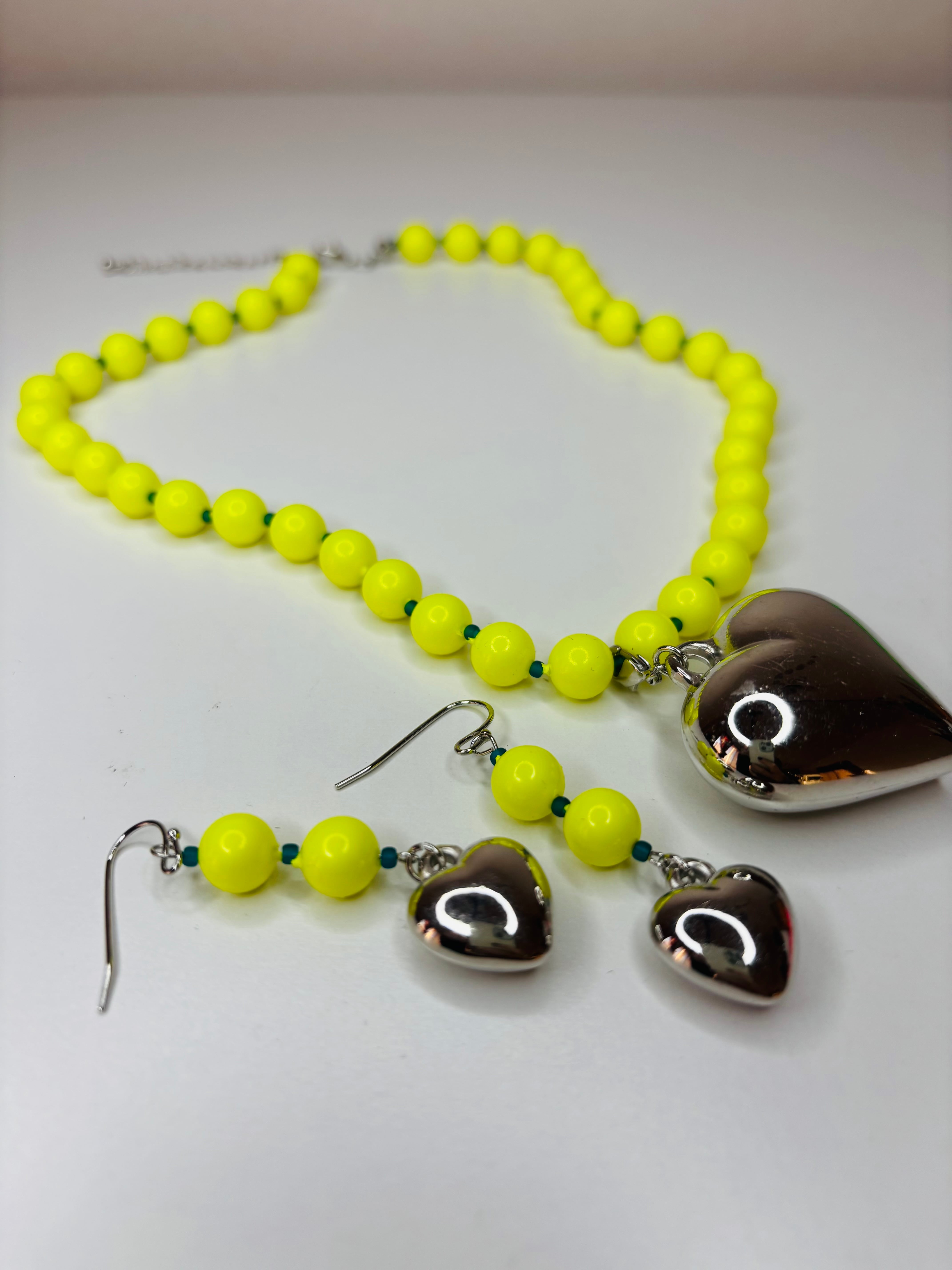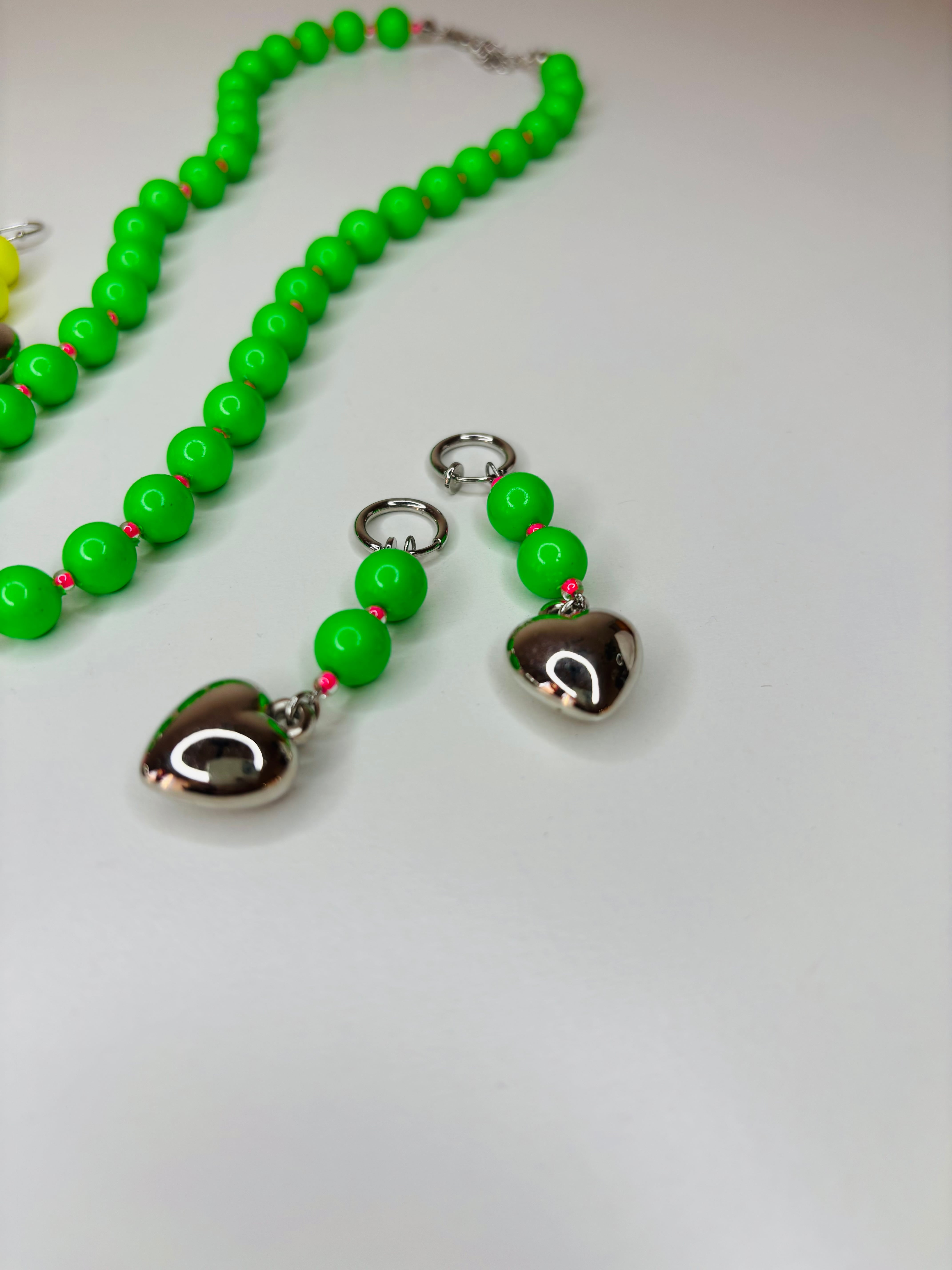 カラーボールにハートのチャームがとってもキュートなピアスです